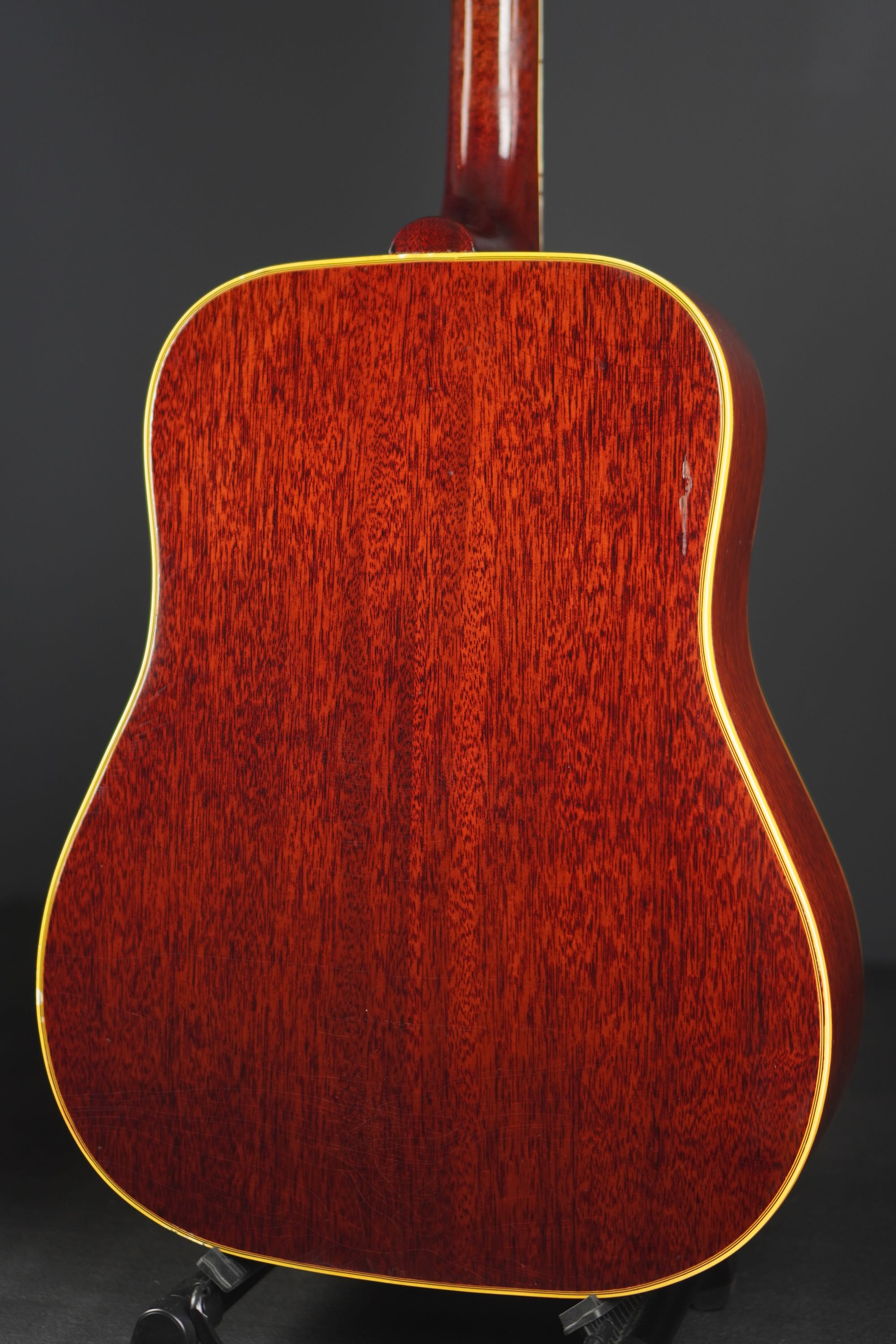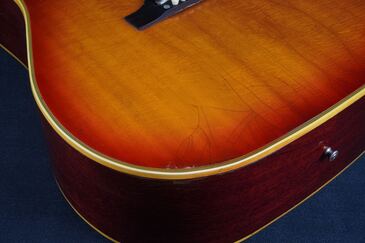 キズや塗装の痩せ、ウェザーチェックなど、経年でのヴィンテージらしさはあり、ボディトップのボトムの両端バインディングあたりや、バックのくびれ近くには、やや目立つ傷もあります。