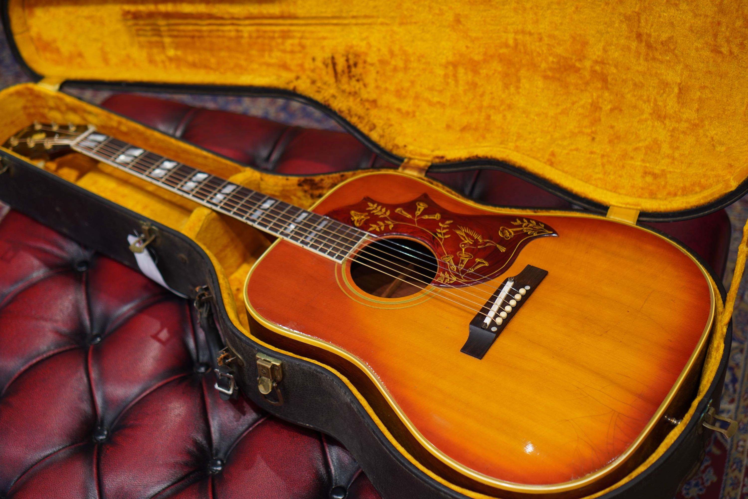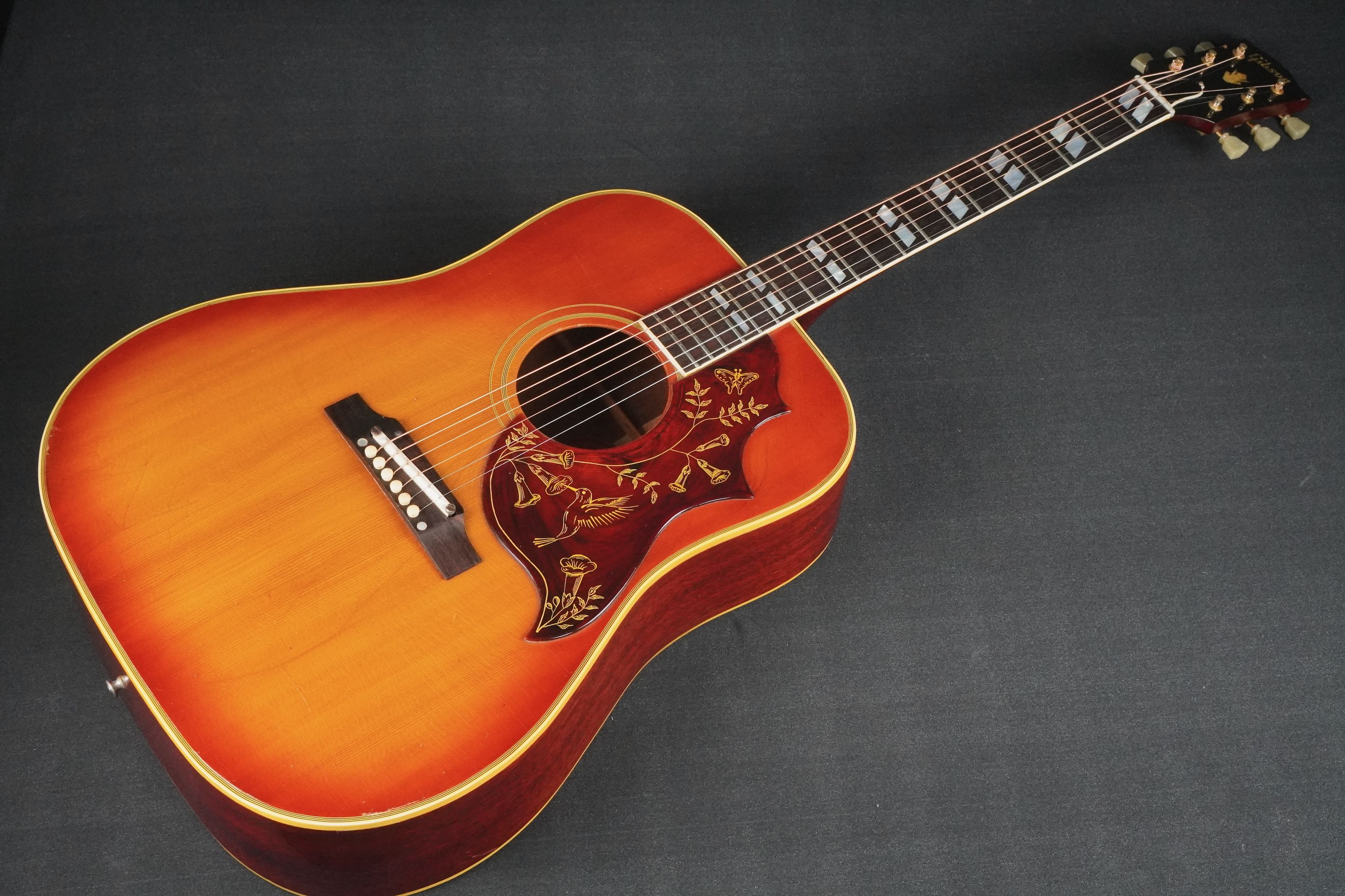 程良く使い込まれ、軽くフェードしたチェリーサンバーストも良い味を醸し出す、1964年製のハミングバード!