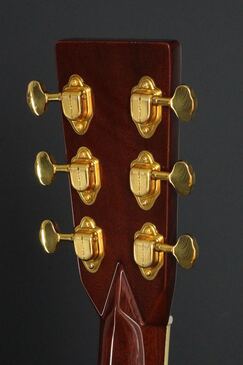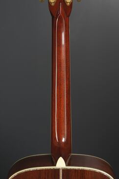アイヴォロイドのバインディングが入った指板にはアヴァロンのヘキサゴンインレイと、45スタイルらしい存在感の強いスタイルで、Genuine Mahogany指定のネックは、ナット幅42.9mmの1939スタイルのネックシェイプを採用しておりますので、この握り易いネックグリップも魅力です。