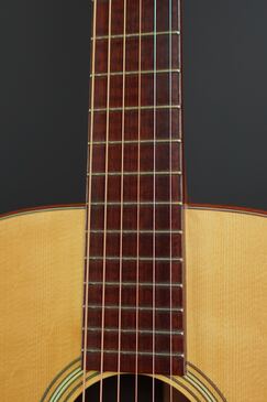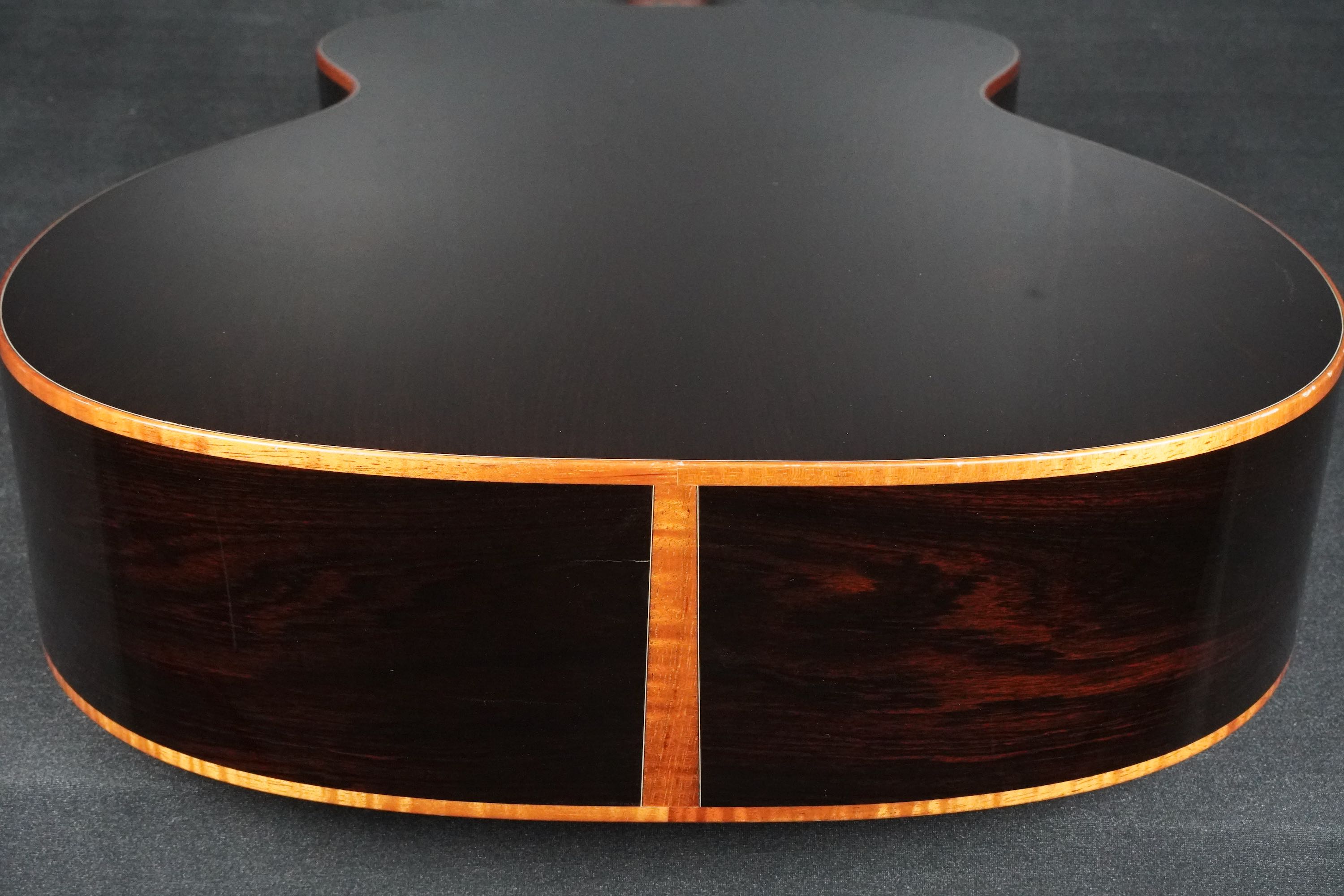 基本的には演奏性とサウンドバランスの優れたOMスタイルですが、このモデルではあえてボディ厚を薄めにして製作されております。