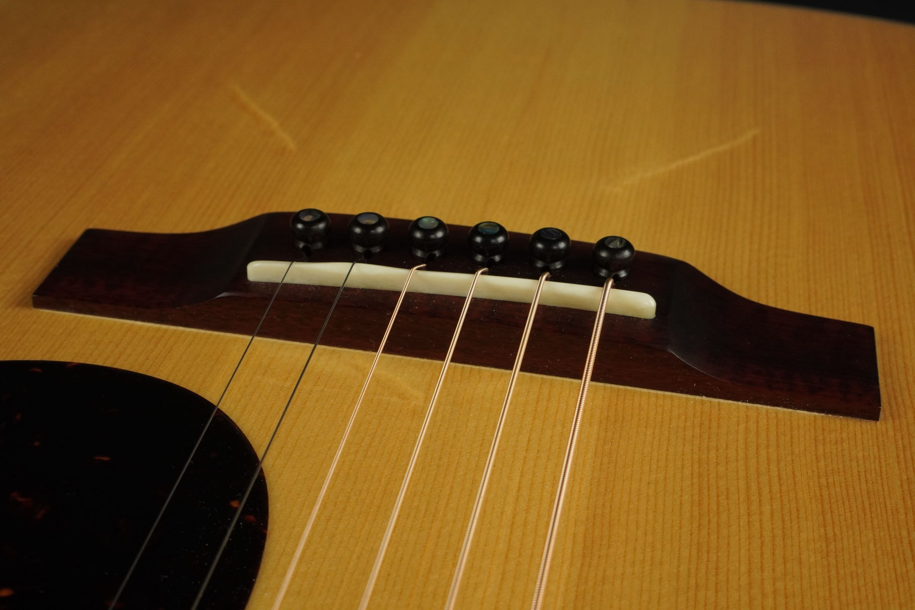 製造は2019年製の中古品で製造から年月を経ておりますので、表板には経年変化による色焼けが僅かに見られますが、大事に扱われていたようで目立つような傷や割れなどの大きなダーメージは特に無く、フレット及びサドルの高さにも十分余裕があり、ネック・コンディションも良好です。
