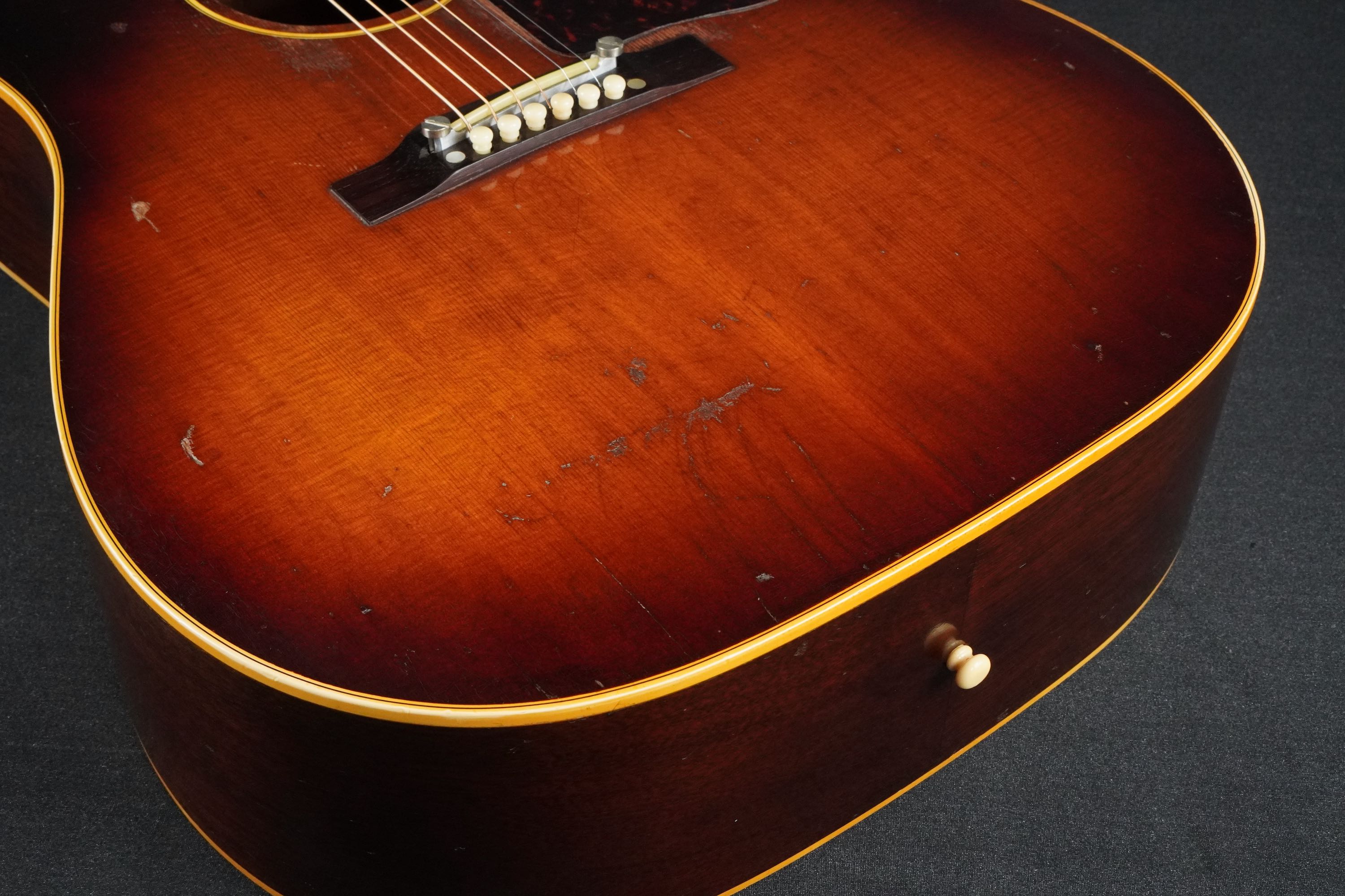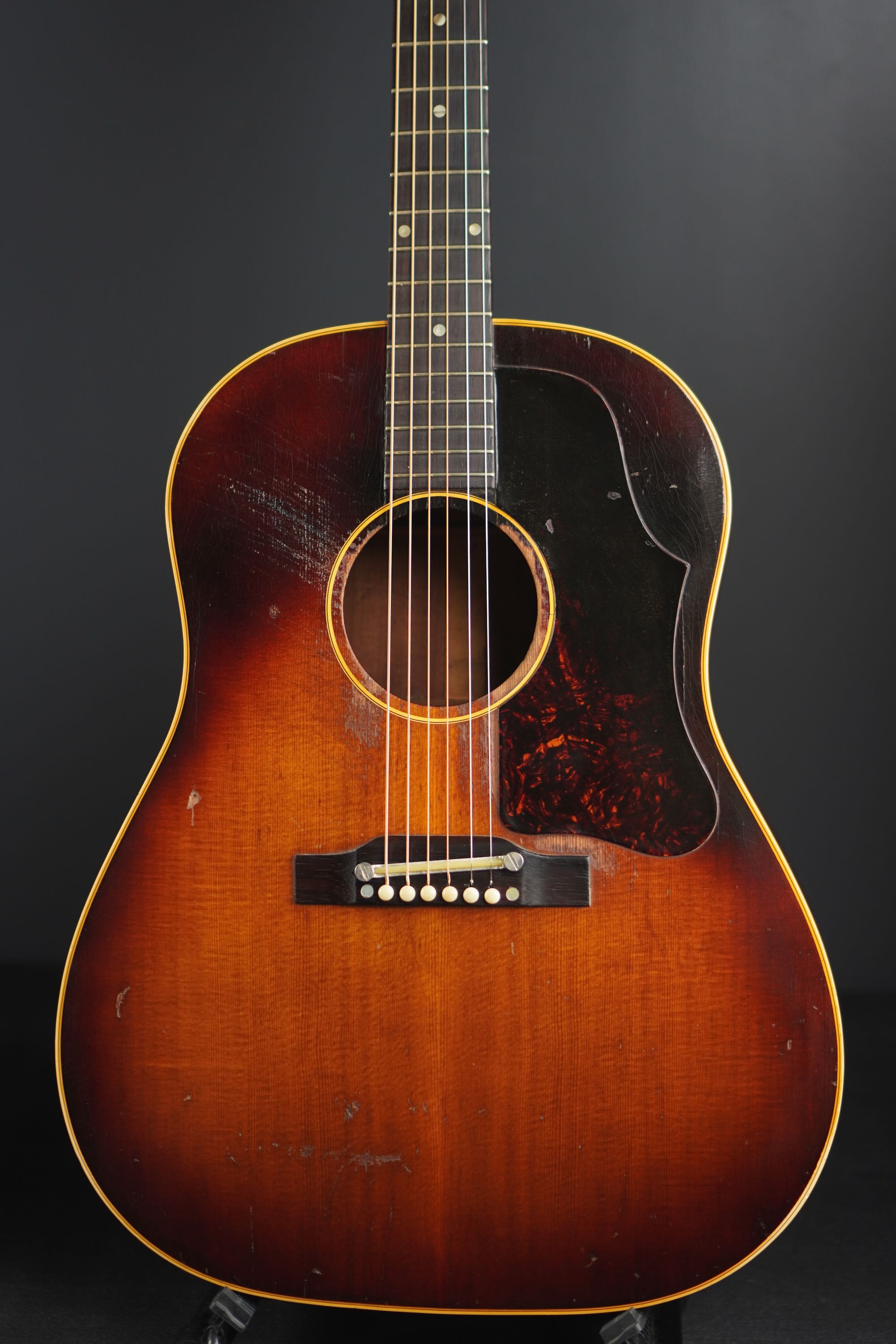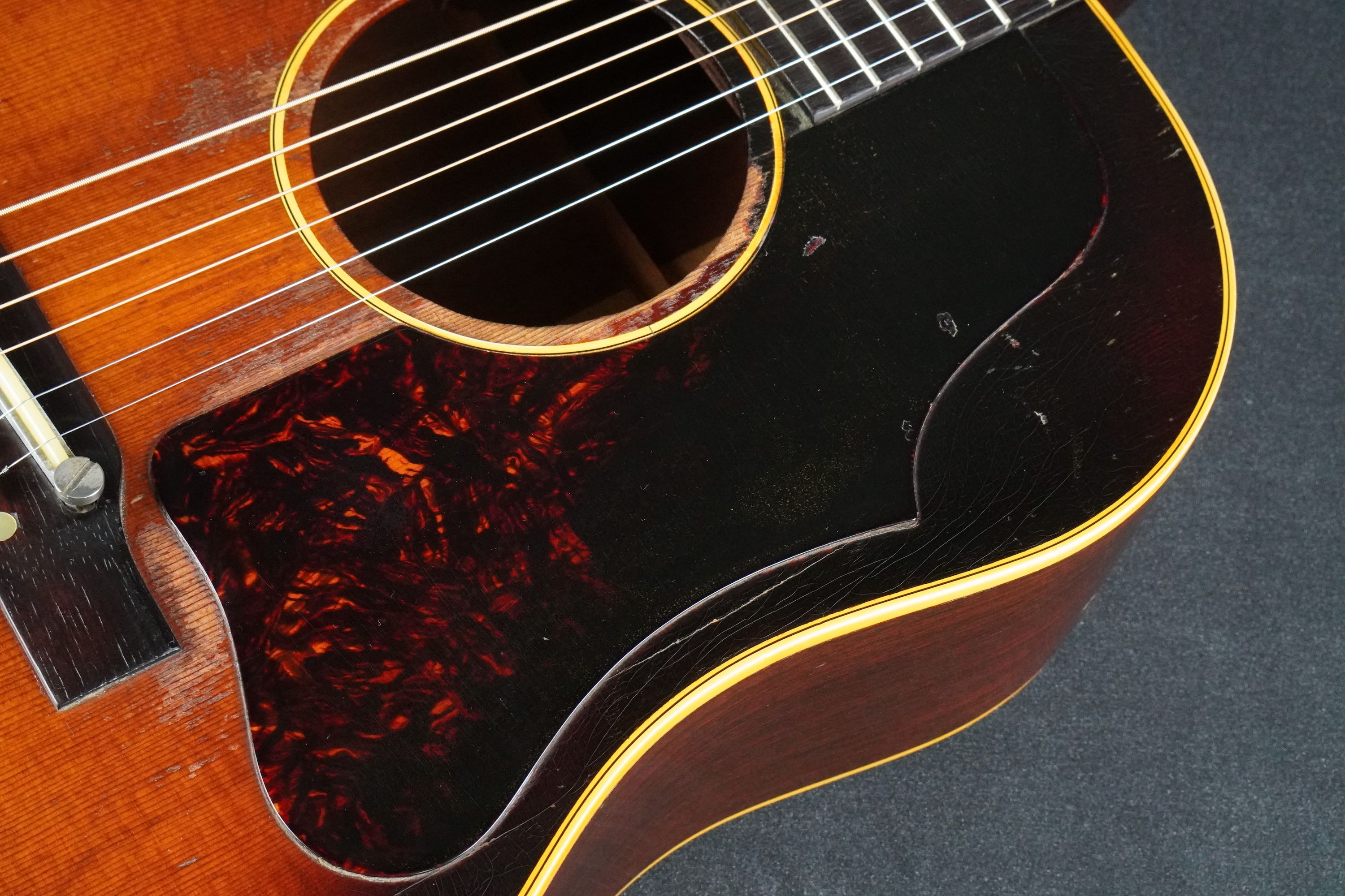弾き込まれ、精悍なルックスとなった、ワンリング&ラージガード期の50年代後期J-45!