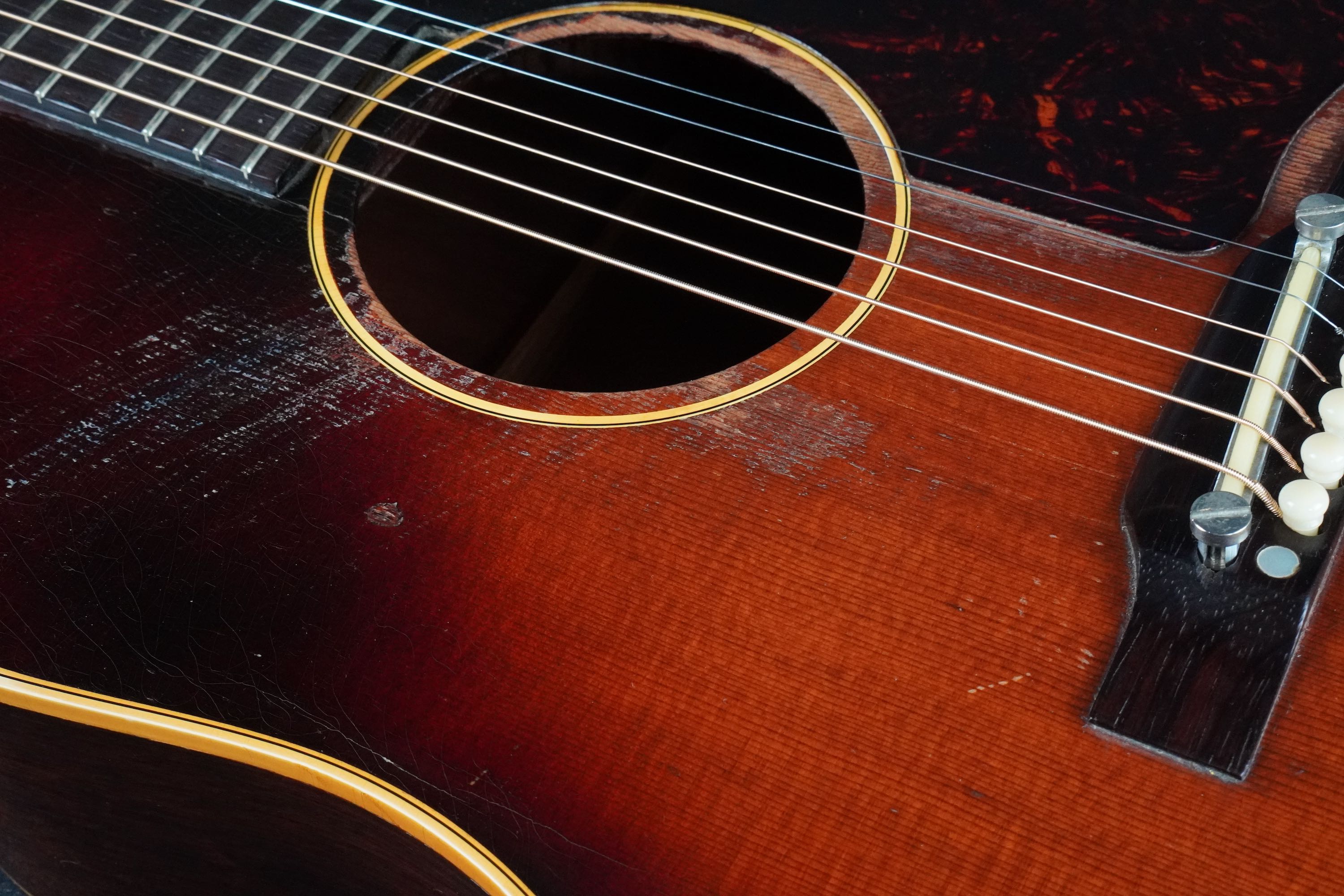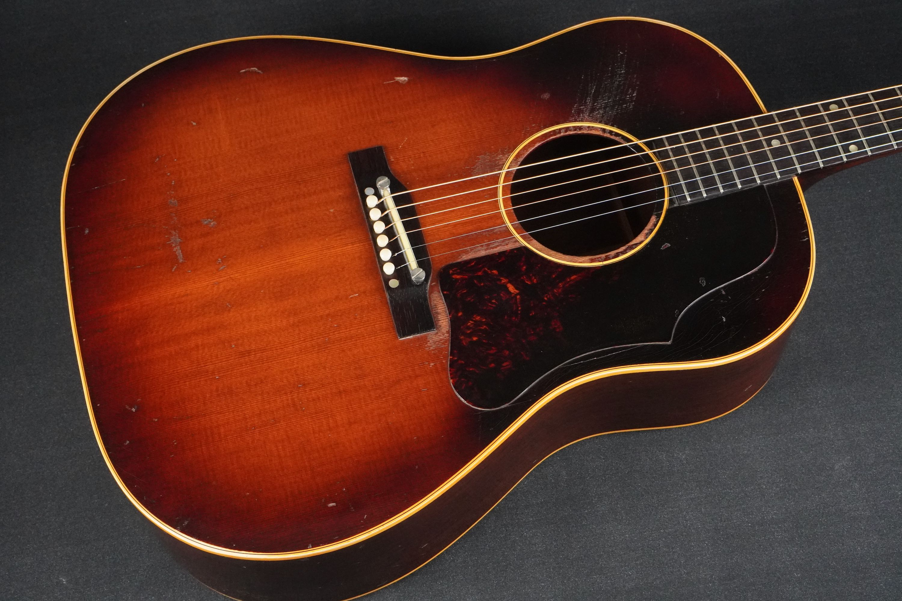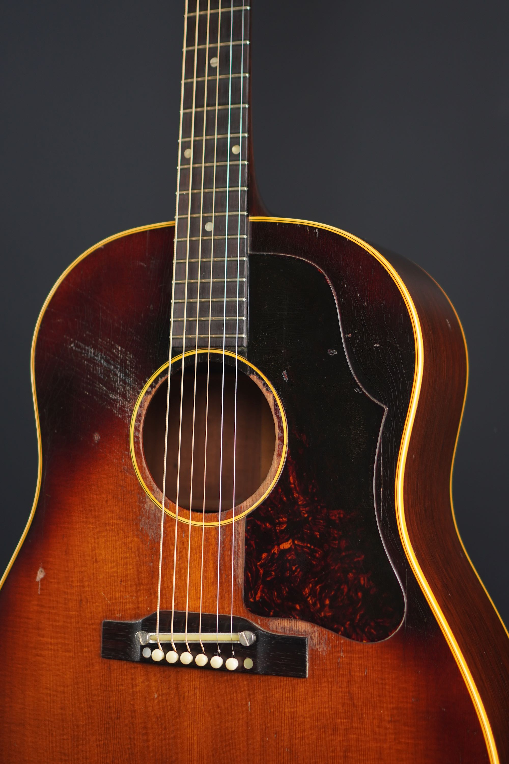 弾き込まれ、精悍なルックスとなった、ワンリング&ラージガード期の50年代後期J-45!