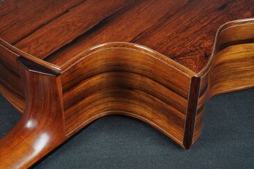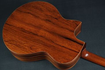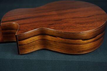 サイドバックのマダガスカルローズウッドの澄んだ残響感と、共鳴して重なっていく深い倍音が美しい、とても魅力的な響きです!
