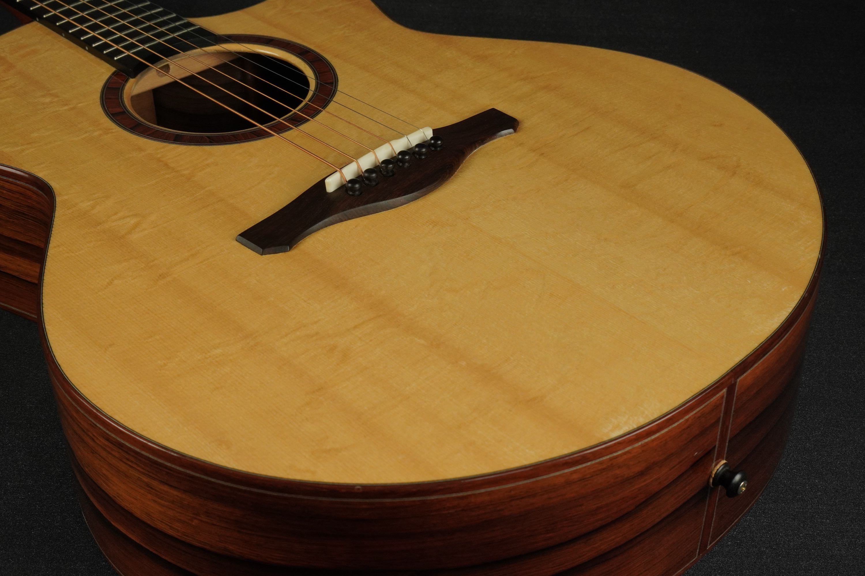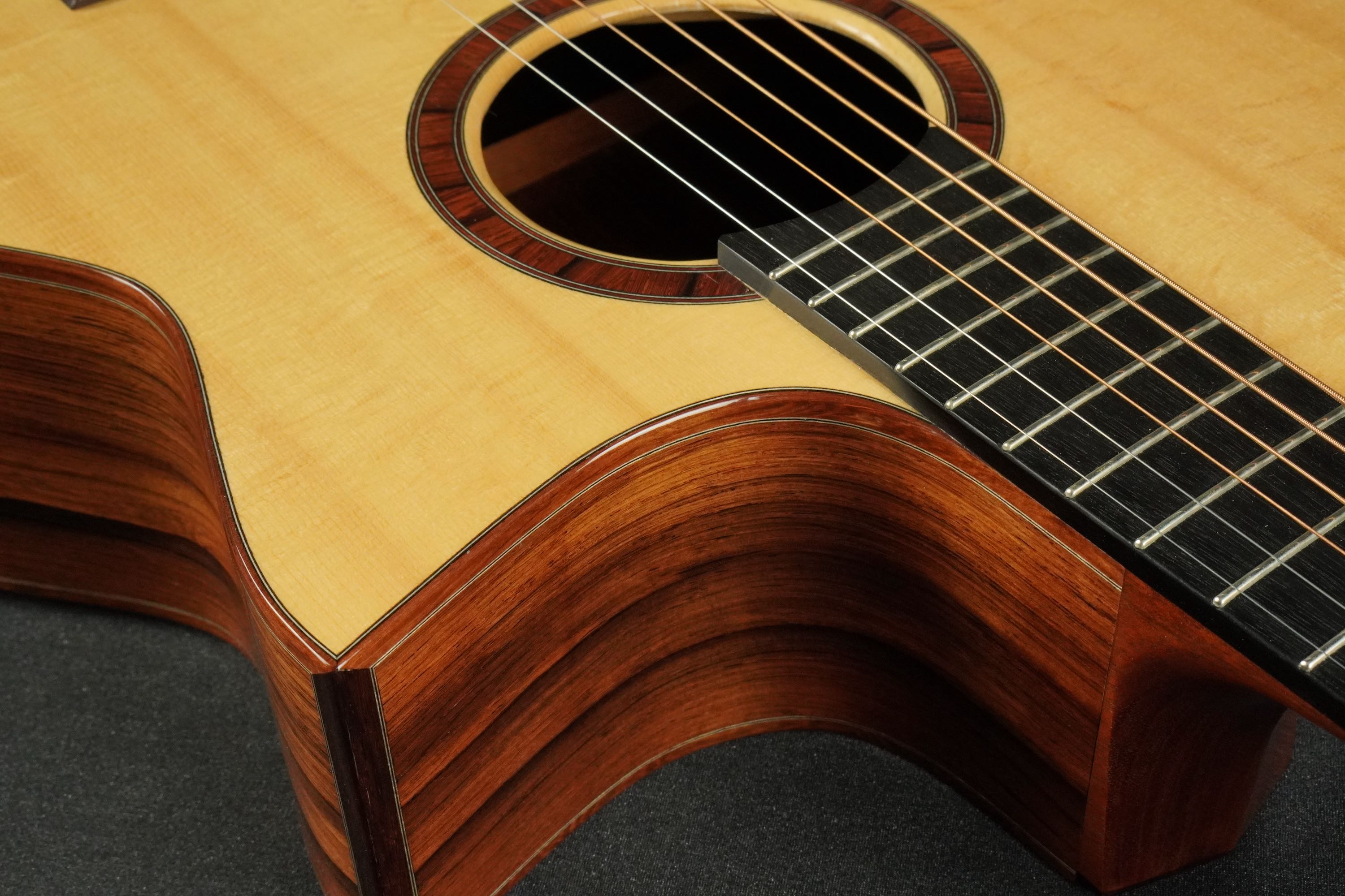 魅力的なスイスムーンスプルースとマダガスカルローズウッドを使い、シンプルながらも木の温もりを感じさせてくれる、美しいSJモデル!