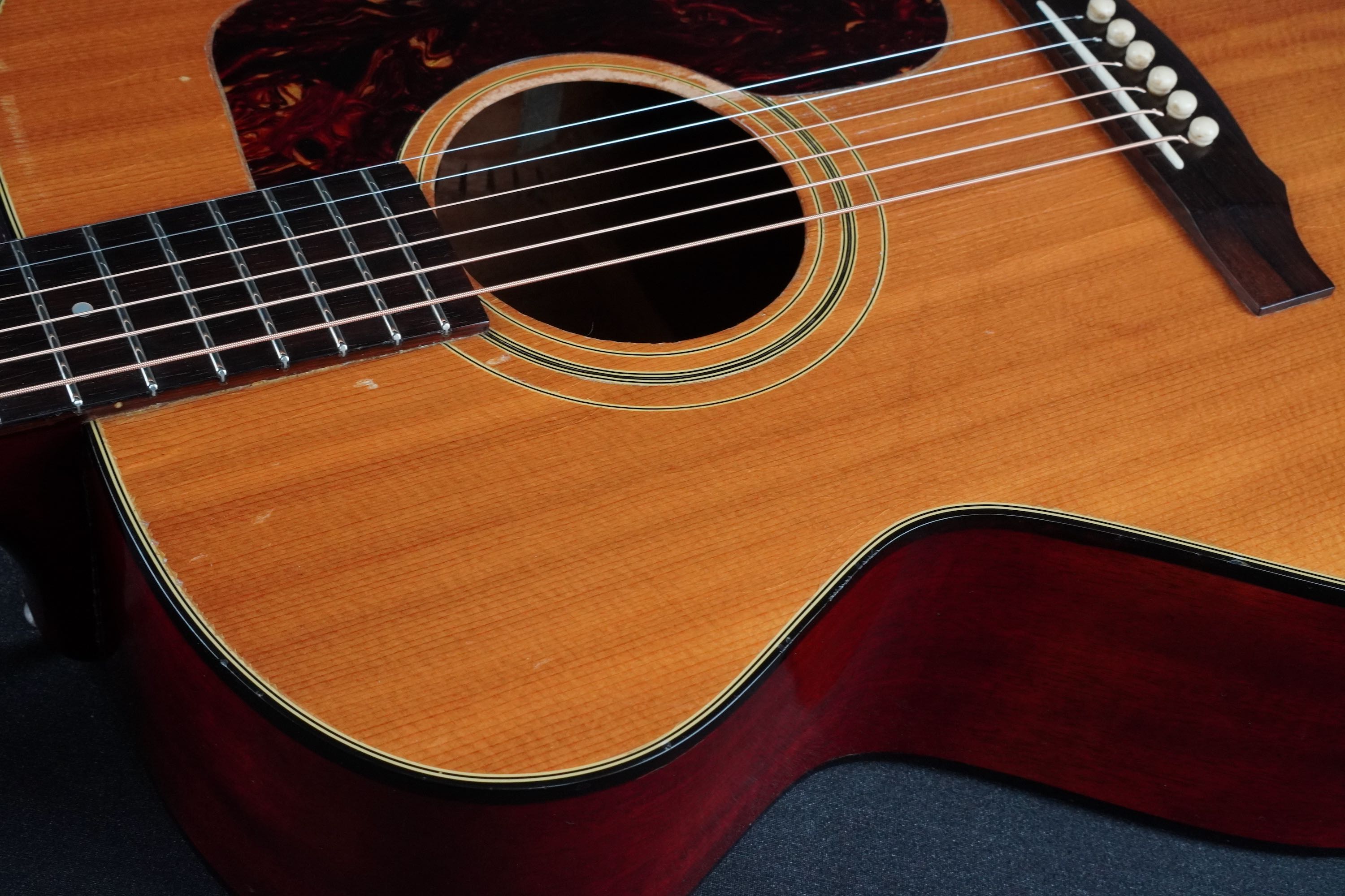 トップはソリッドのスプルース。すっきり詰まった美しい材で、経年の焼けにより、渋く枯れた表情をしています。
