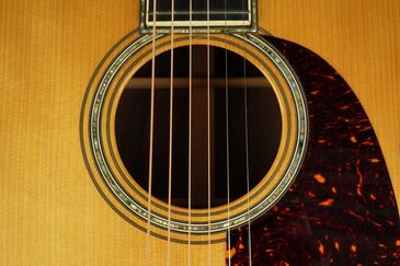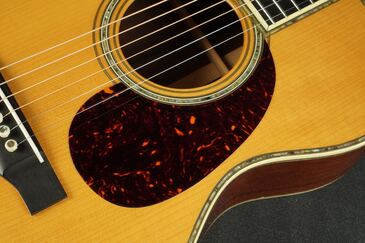 1933年スタイルのネックシェイプにTバーロッド、ニカワ接着やトップのヴィンテージトーンシステム等、製作当時のMARTINの新しい技術を駆使し、OM-45GEをよりヴィンテージライクに進化させたギターに仕上がっており、ピックガードも000-45タイプの大きいサイズなので、より1933年のオリジナルに近いイメージになりました。