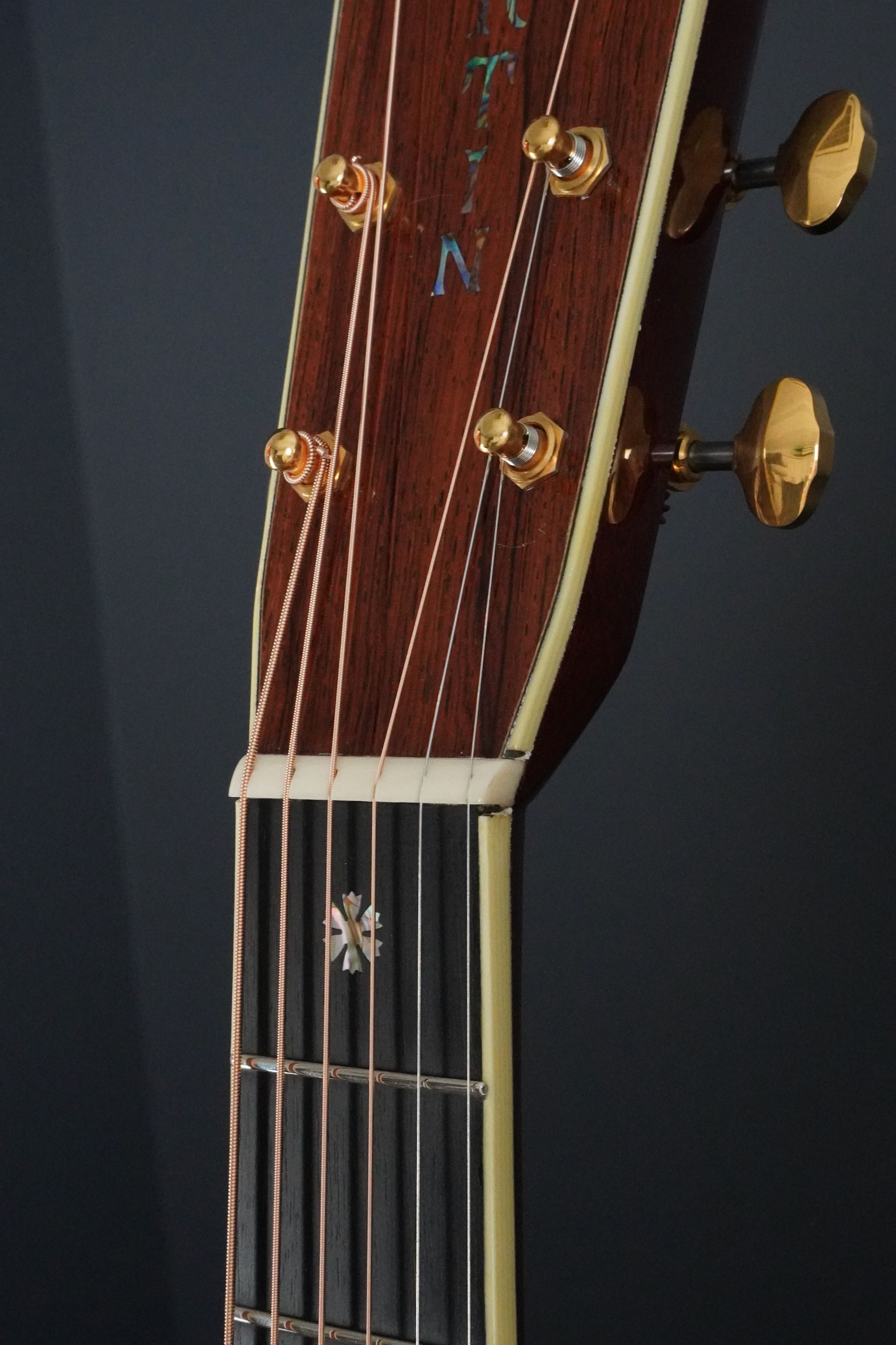 戦前スタイルのスマートなヘッド形状に、ダークなマダガスカルローズのヘッドプレート。