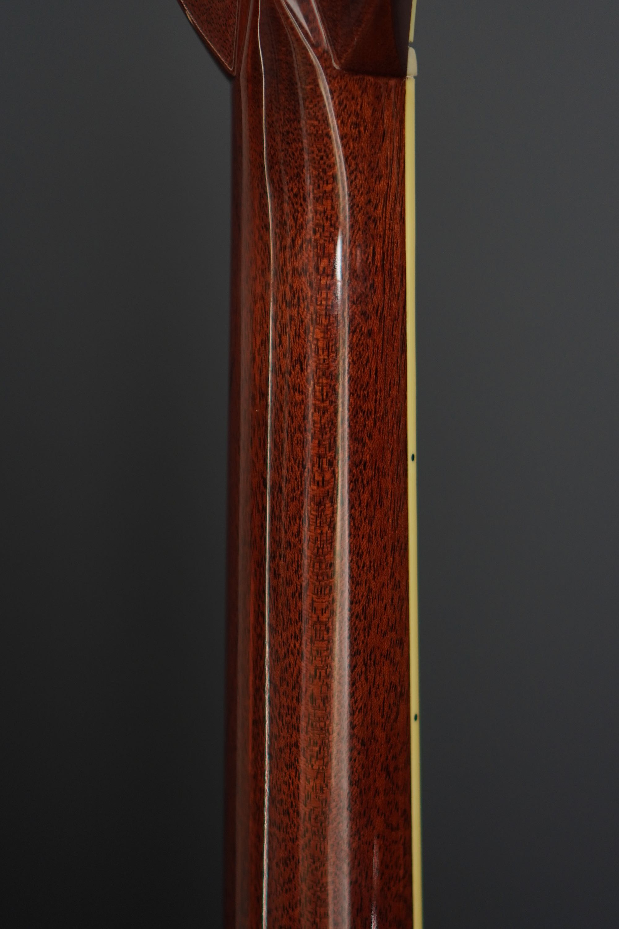 オーセンティックシリーズで再現している1933年スタイルの優しいVシェイプを採用し、適度な厚みで、ハイポジションまで押さえ易い絶妙のマホガニーネックです。