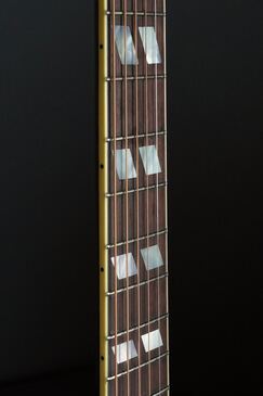 ソリッドのマザーオブパールを使った、印象的な指板に仕上がりました。