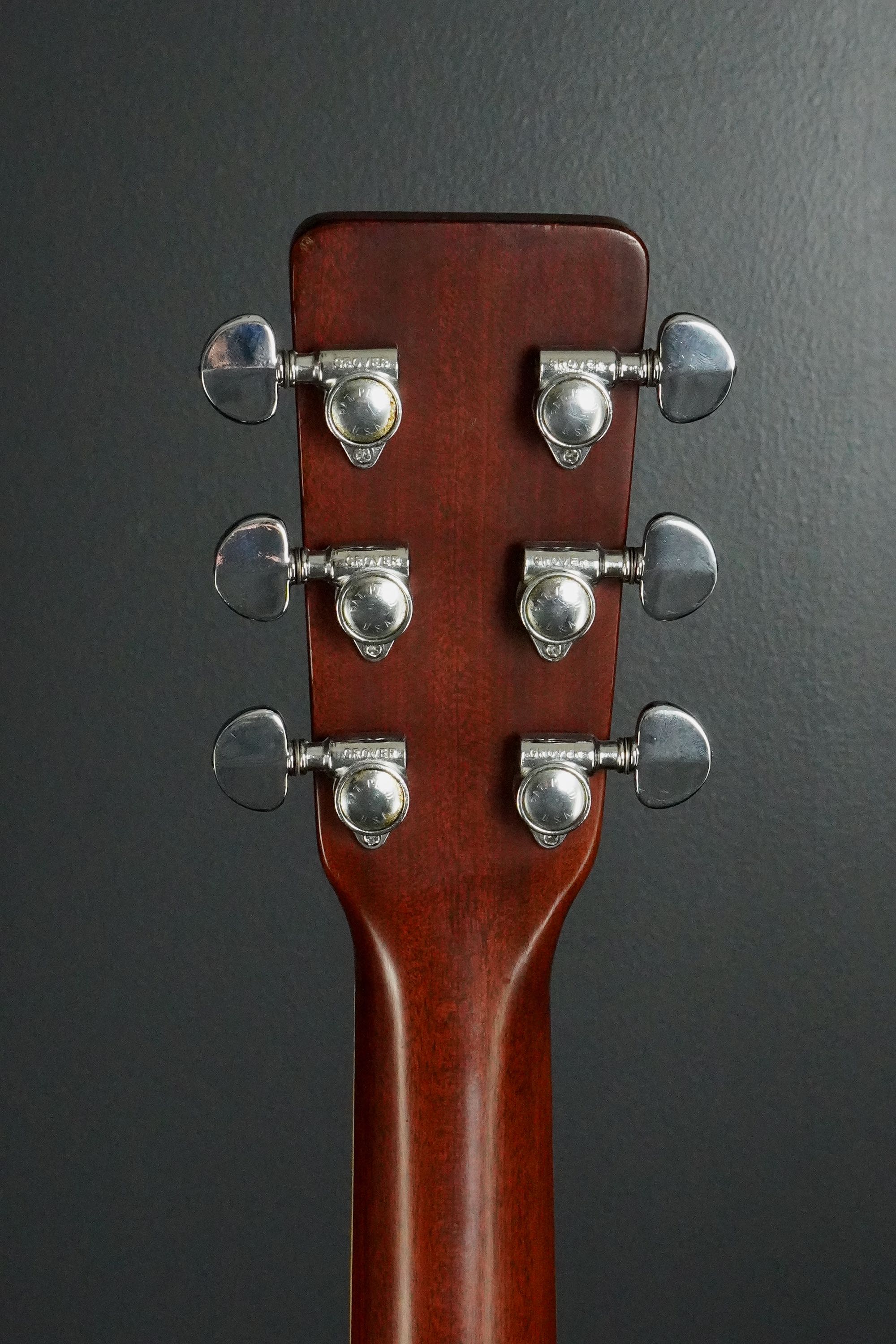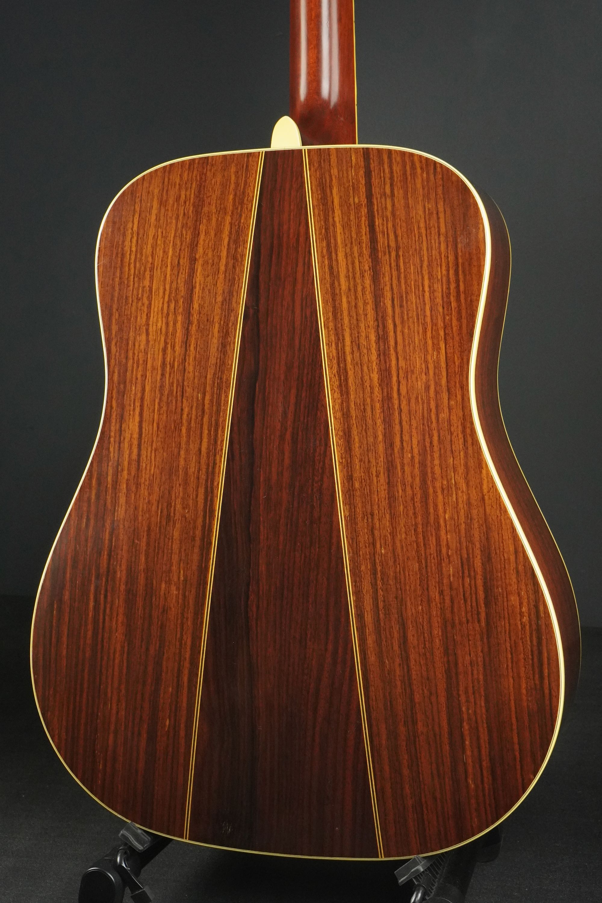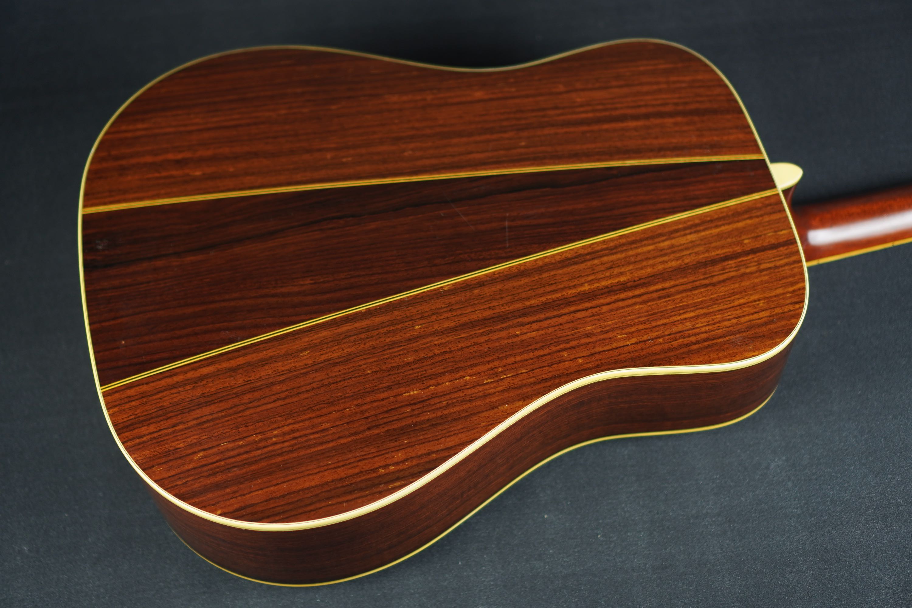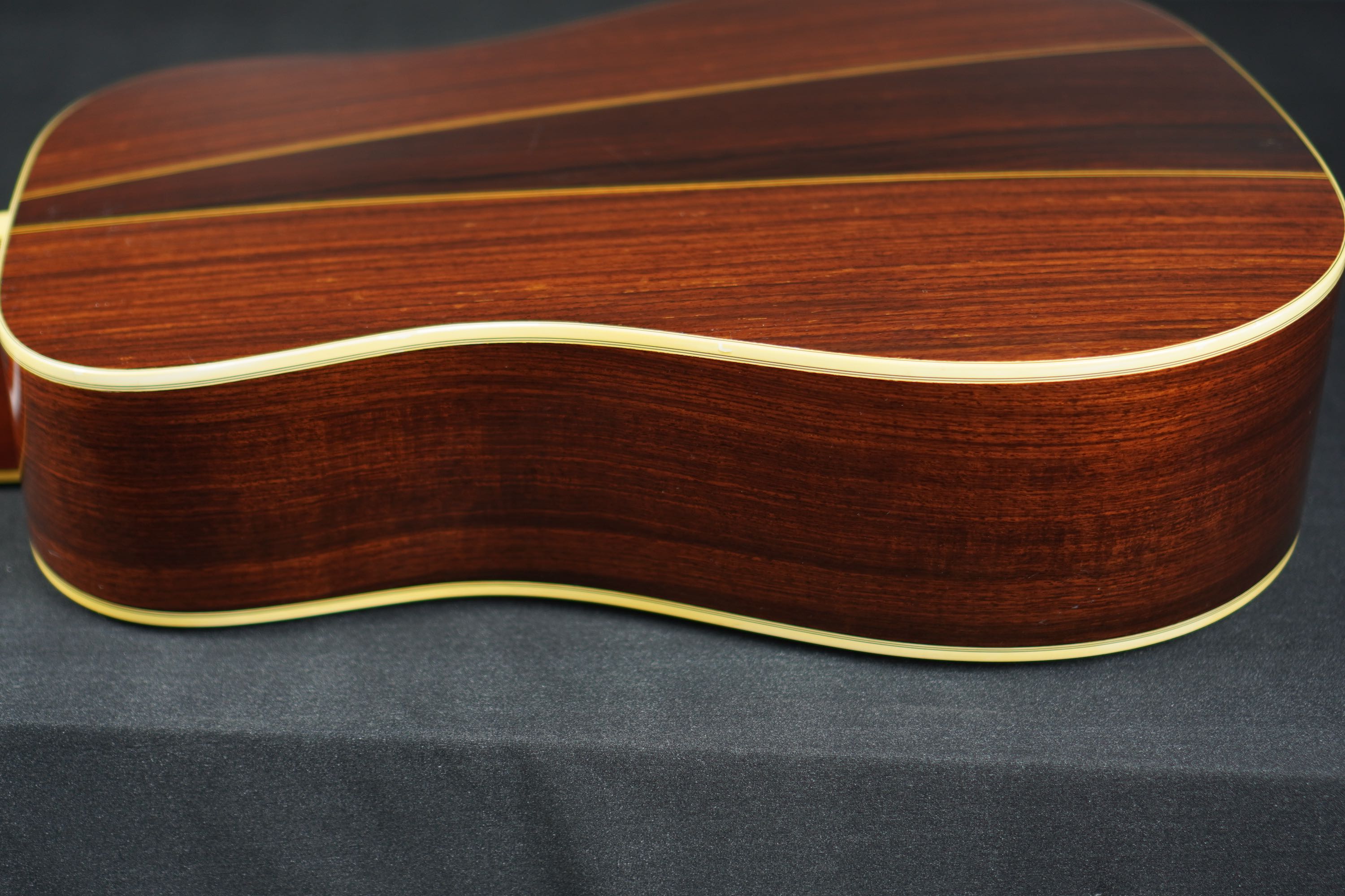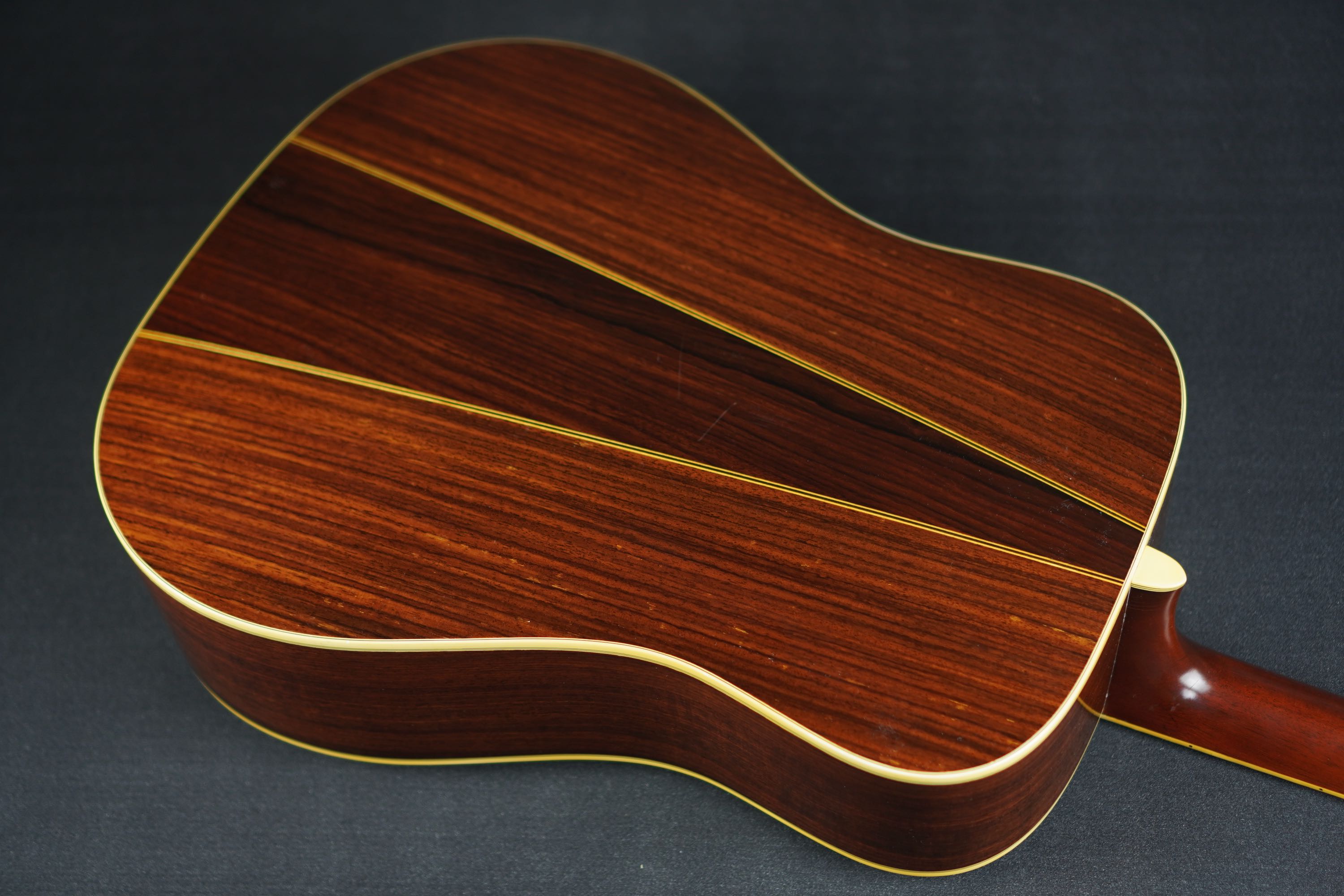 トップのピックガードやサウンドホール周辺に若干のピックウェアー、トップのボトム近くに打痕がいくつかありますが、ネック裏は綺麗な状態で、サイドバックも傷は少なめ、全体に塗装の光沢感も残り、年式を考えると状態の良いコンディションです。