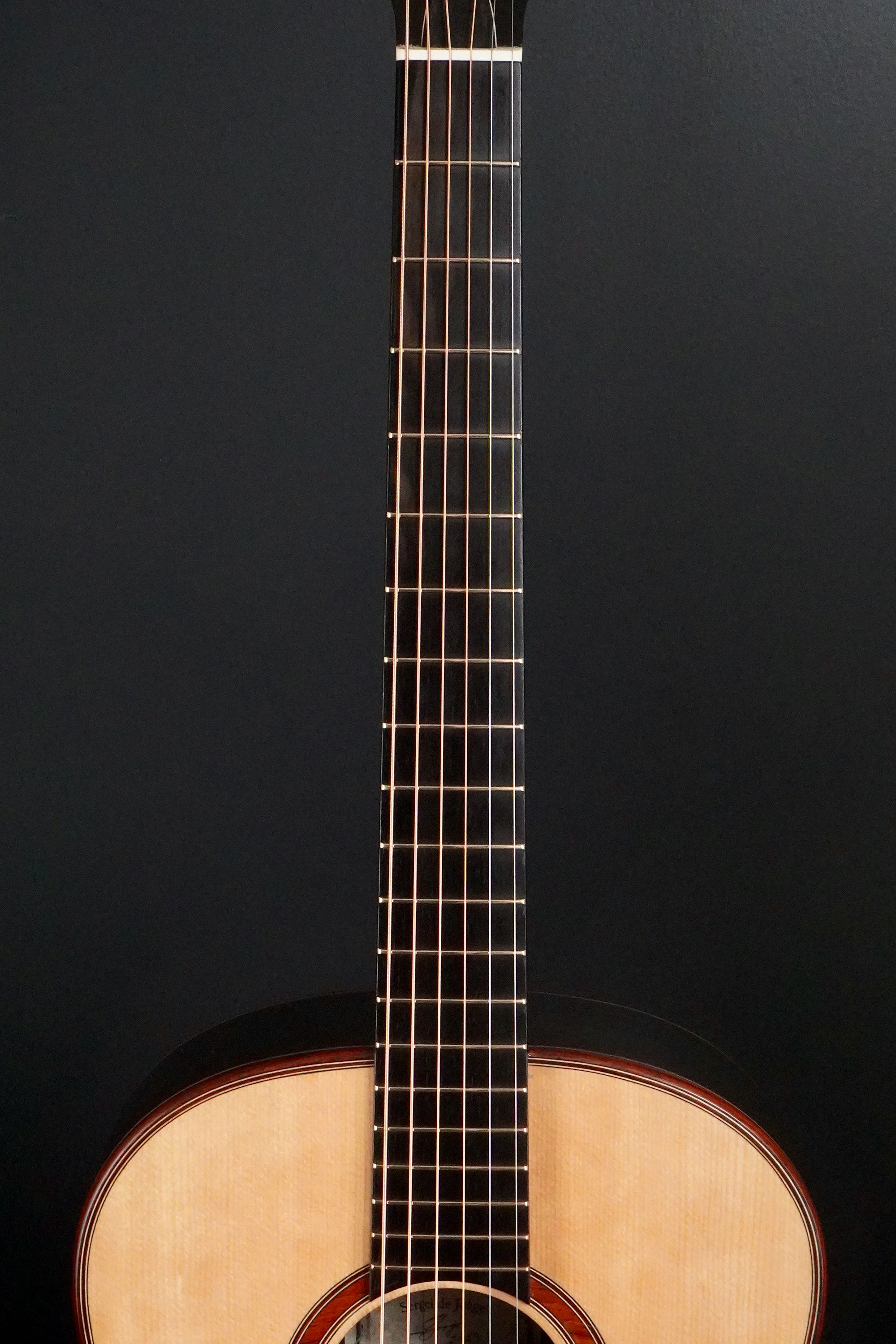 色の配置が的確で、全体のバランスが整った、とても美しいギターです。