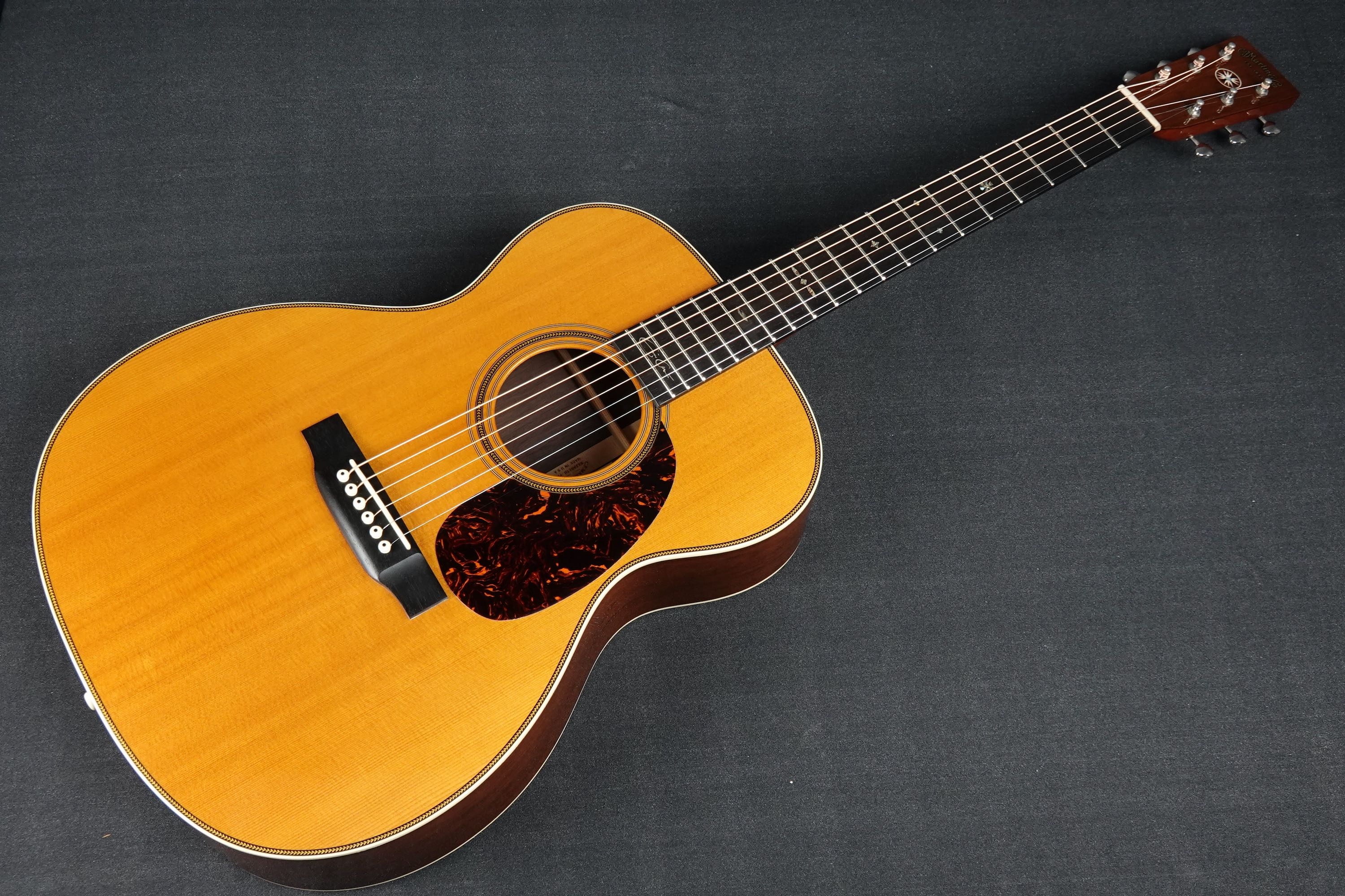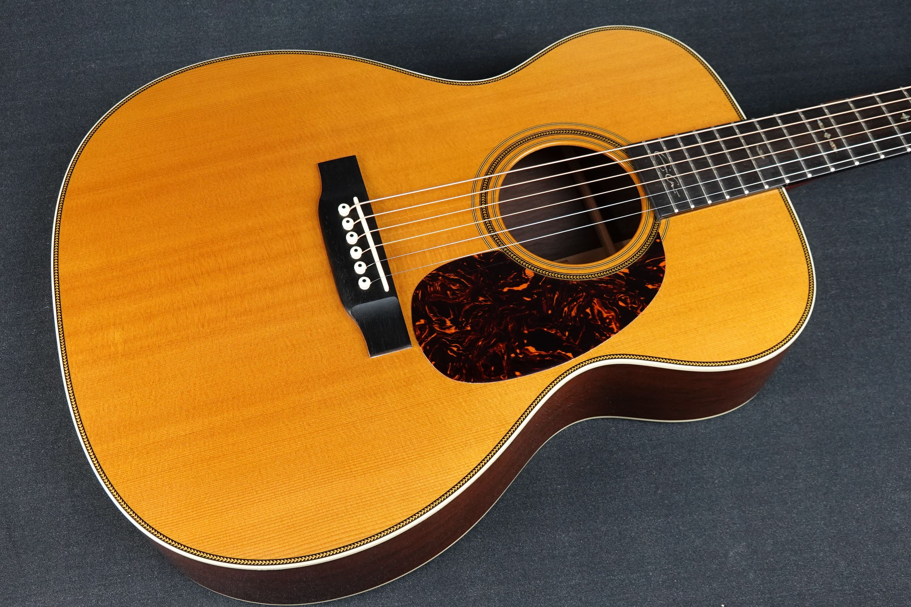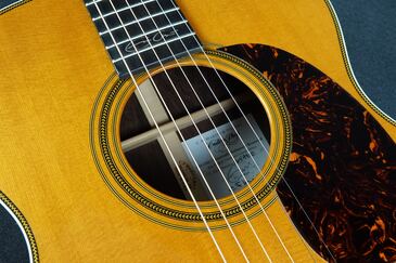 通常のDやOMモデルよりスケールが短くテンションが緩い為に弾き易い000-28ですが、サウンドに張りが有りながらも、これだけ太い28サウンドが出るモデルは他にないと思います。