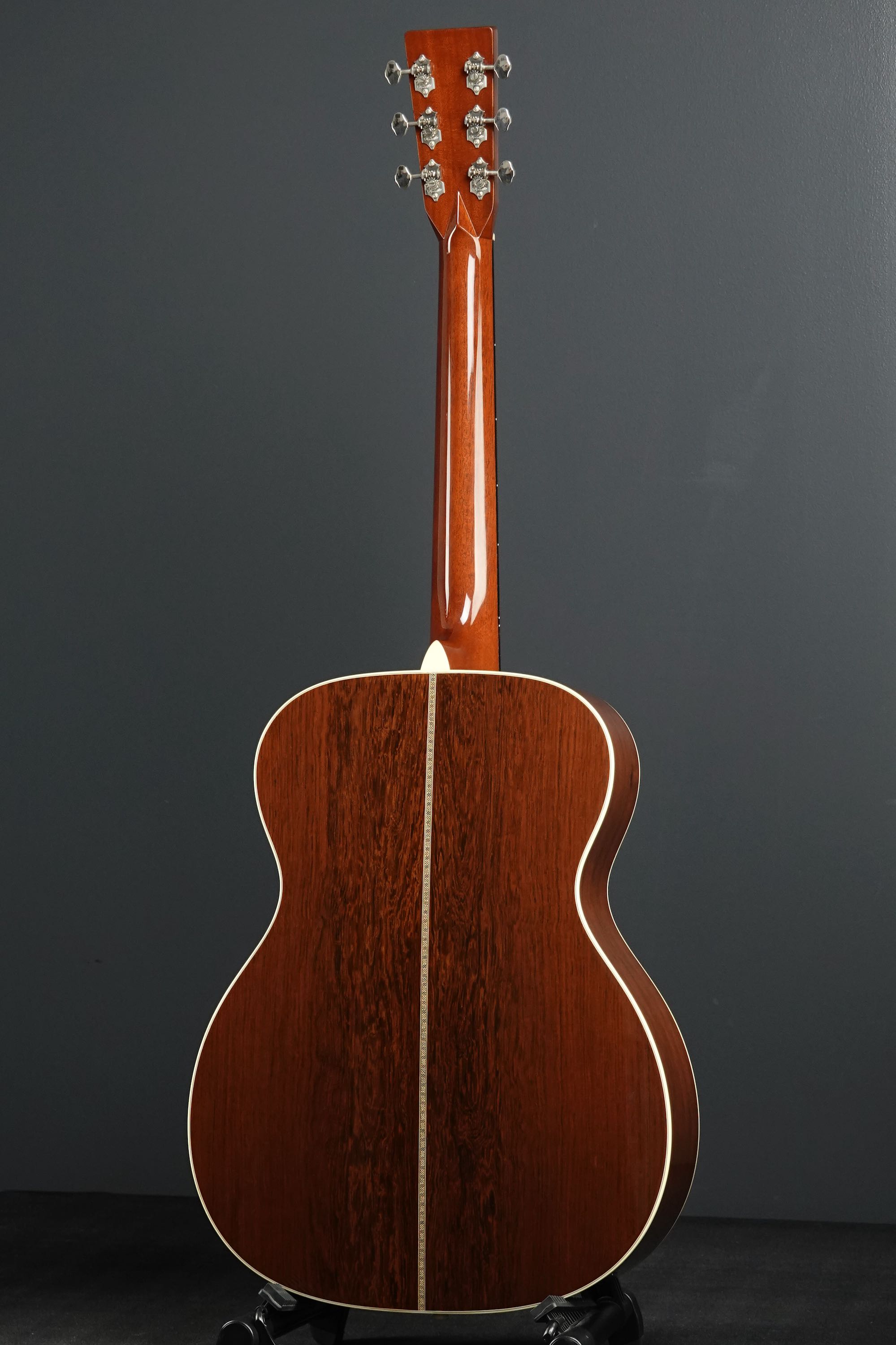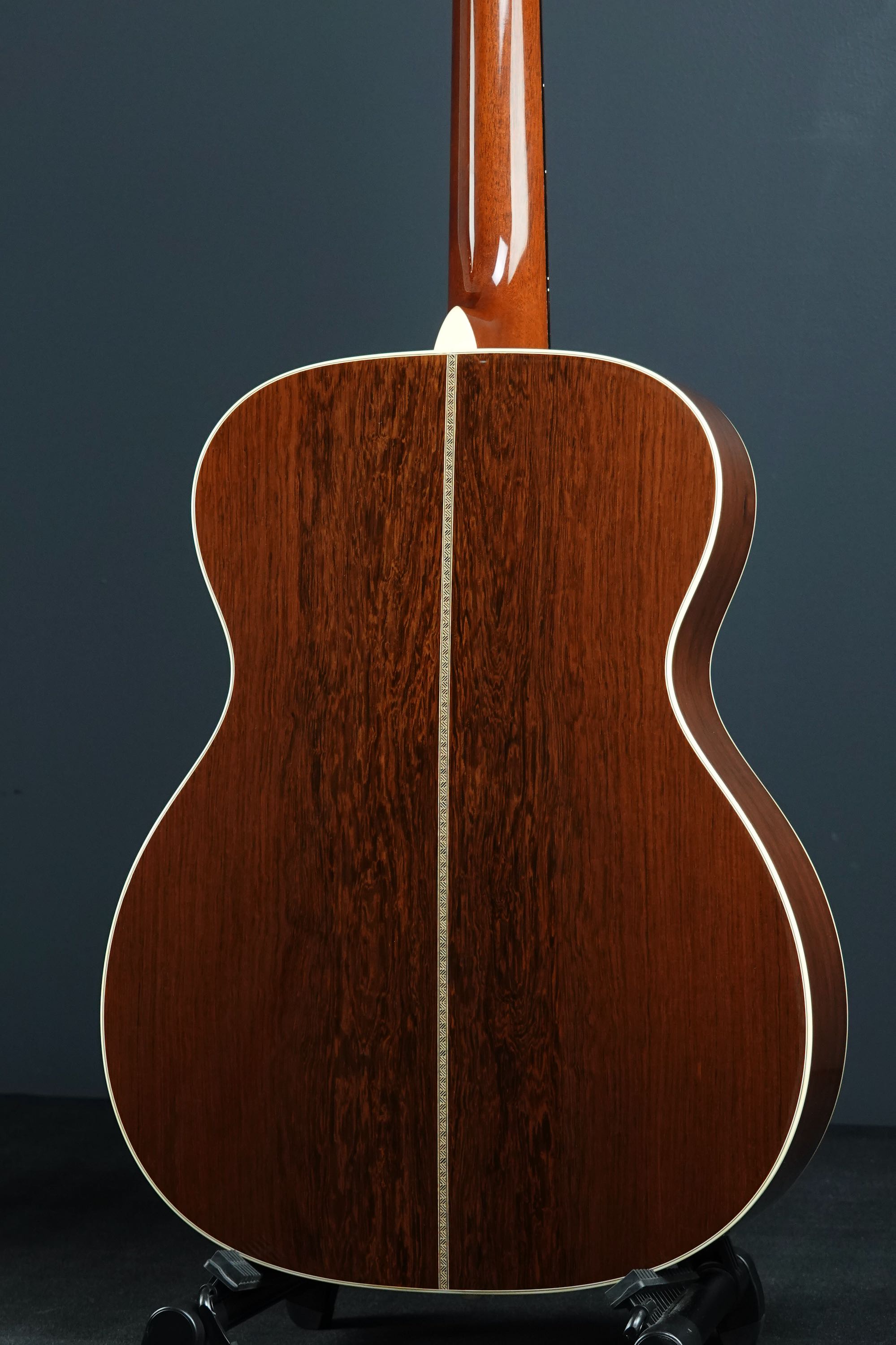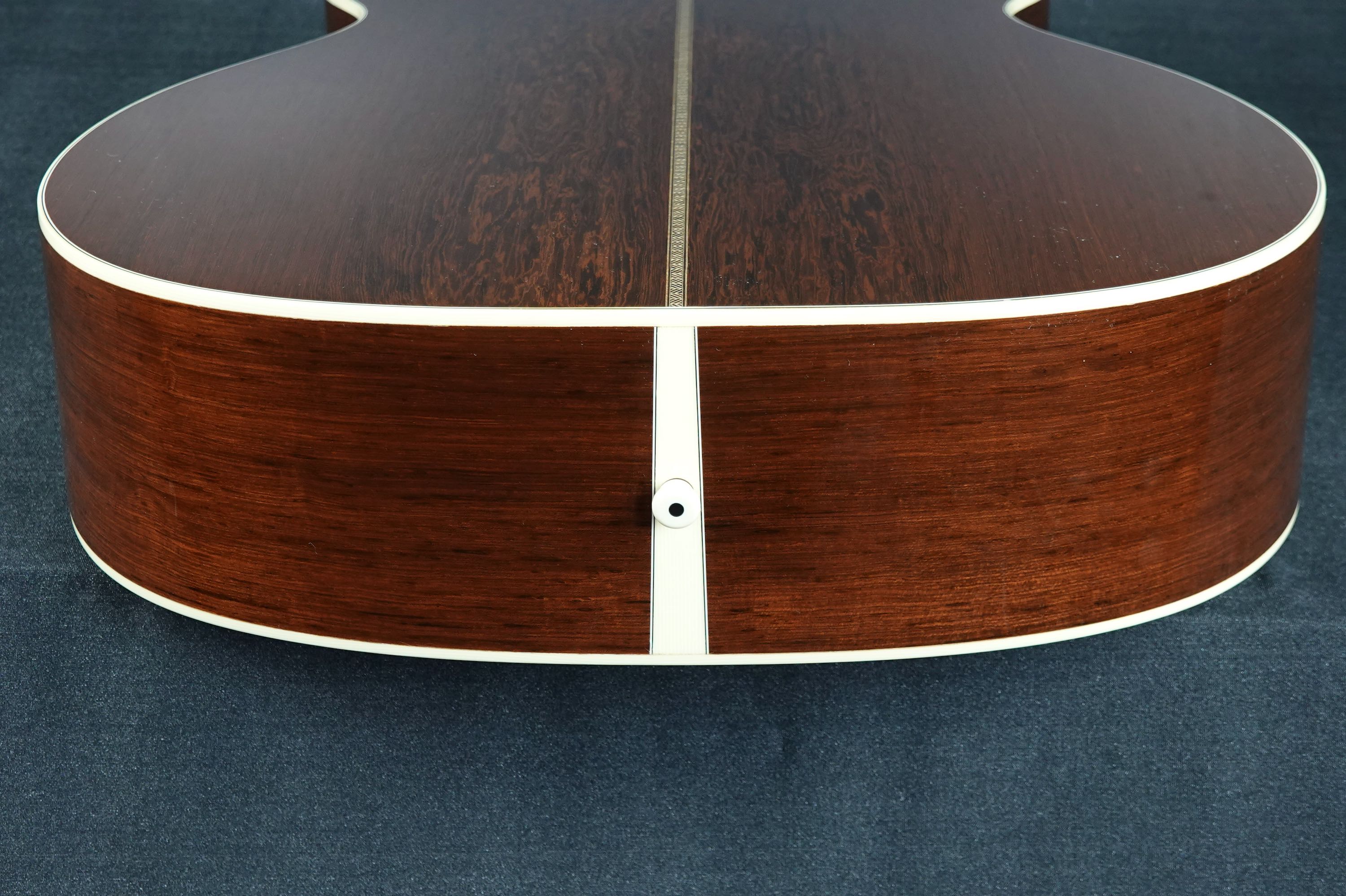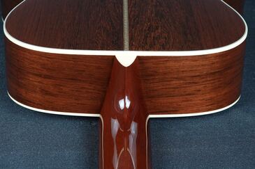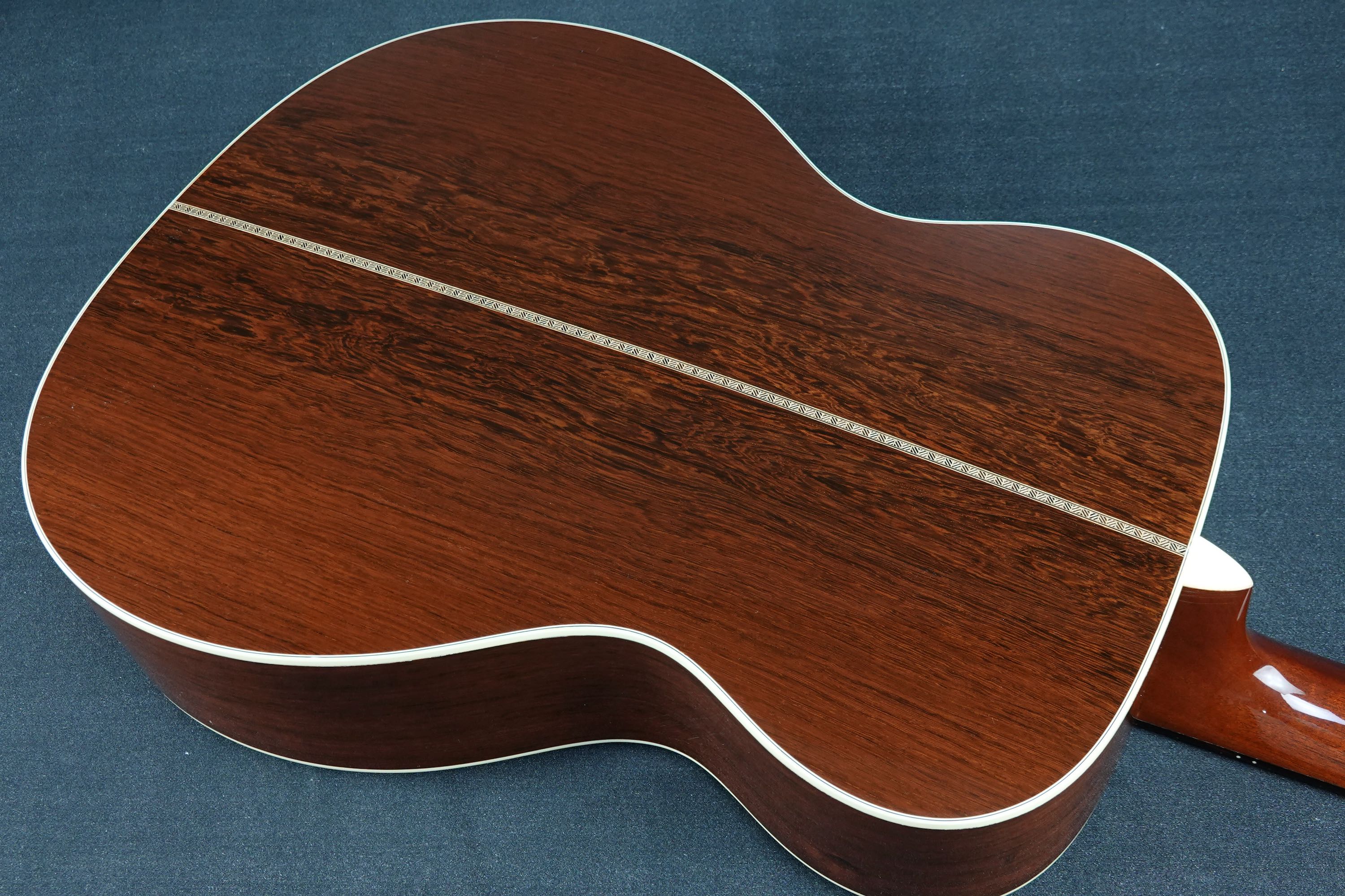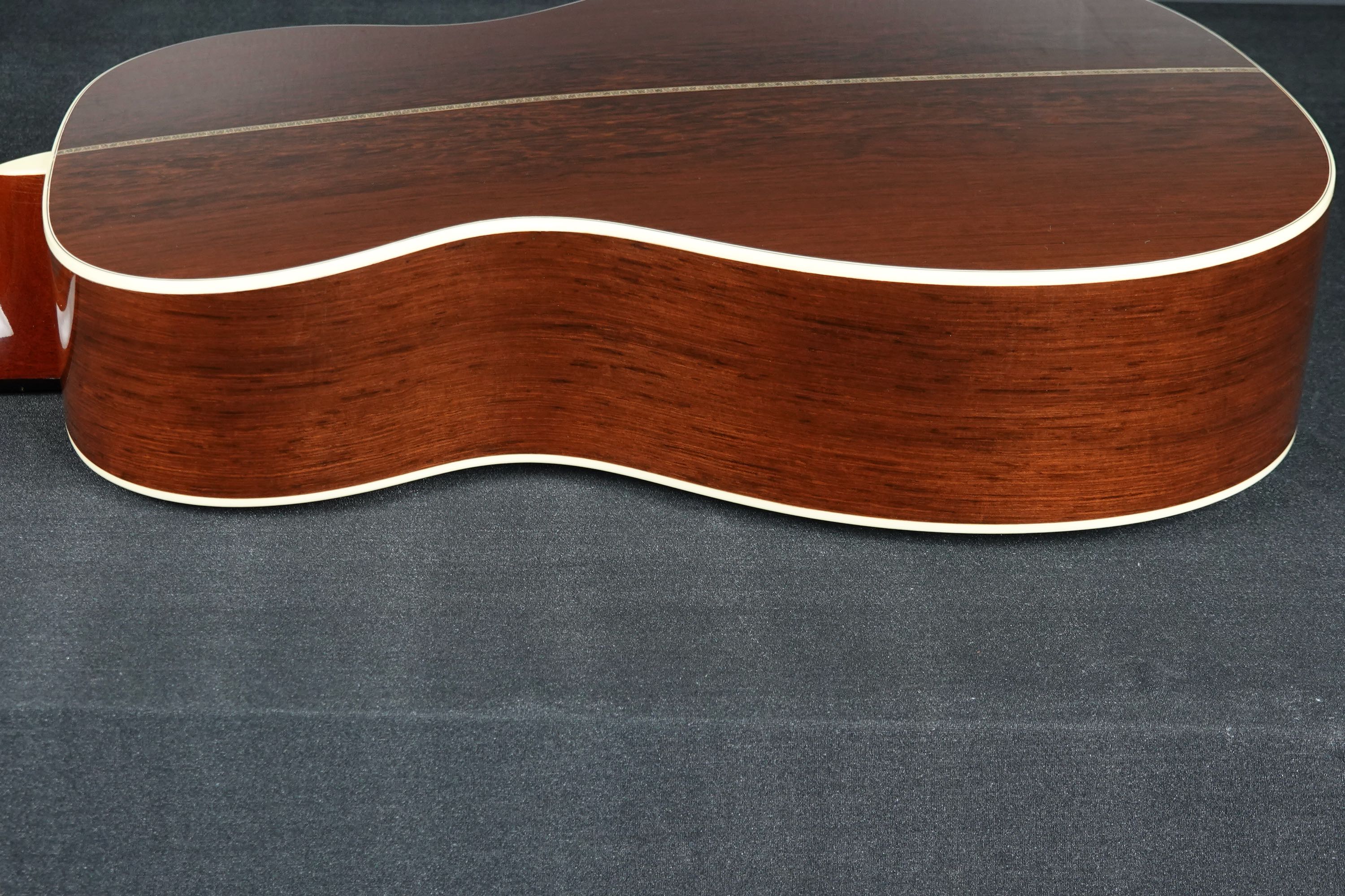 こちらは000-28ECスタイルが基本となりますが、細部まで見ていくとなかなか拘った仕様を持っており、トップのシトカスプルースはとても細かな木目の美しく良質なスプルース材が用いられ、サイド&バックに用いられたマダガスカルローズウッドも、バックのセンターが独特な杢目を持つエキゾティックで綺麗な良材で、限定モデルらしく厳選されたウッドマテリアルが用いられております。