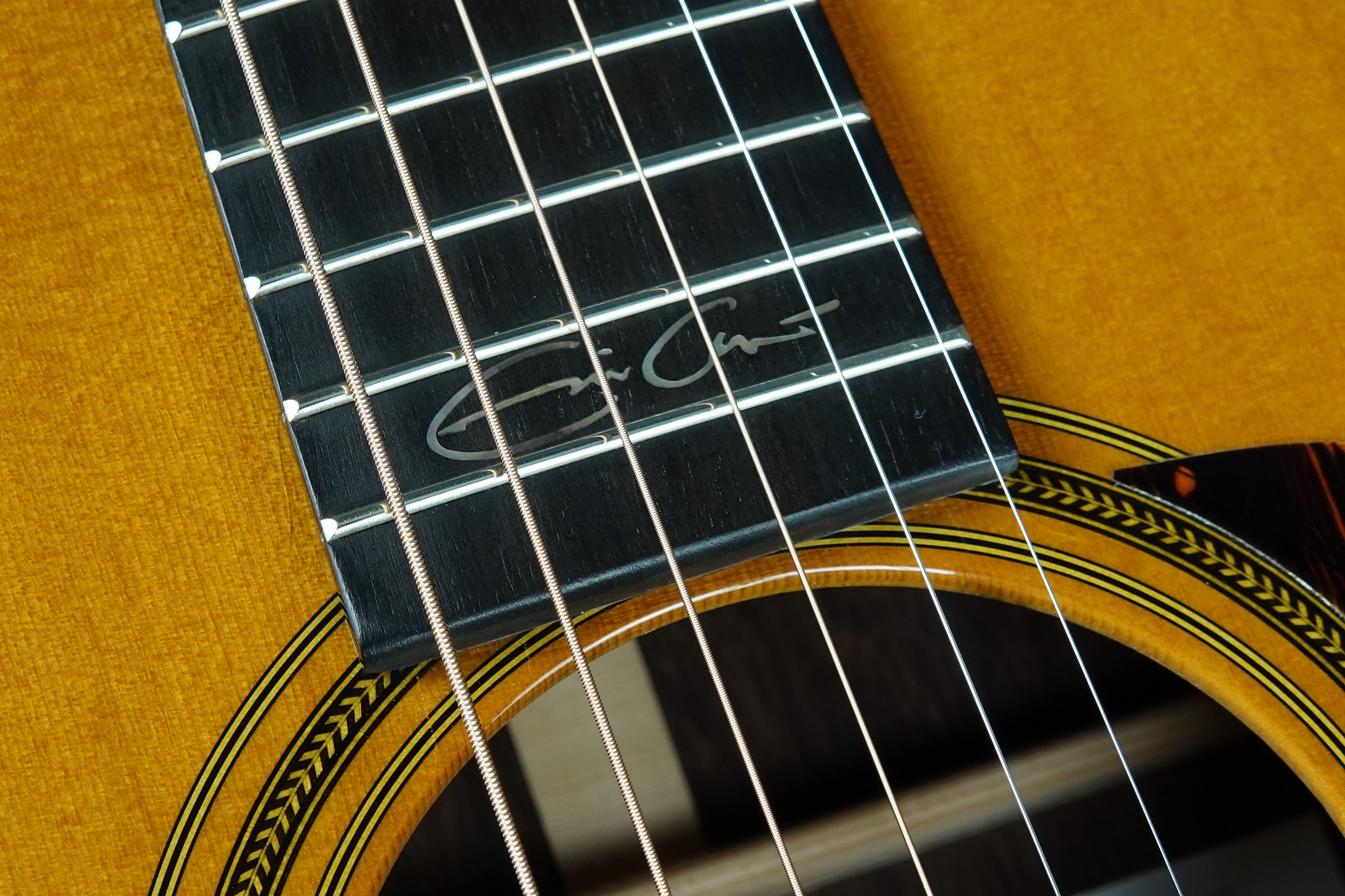 14フレットジョイントの000-28としては初年度である1934年製のスタイルをベースに、トーンウッドとしても評価の高いマダガスカル・ローズウッドを用い、カスタムショップにて製作された良質な限定生産モデルで、サウンドホール内の特別なラベルにもクラプトンとマーティン社CEOのクリスマーティン2人の直筆サインが入っており、中古でも人気が高く、あまり見かけない貴重なモデルです!