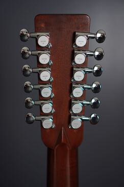このMartinの12フレットジョイントモデルは存在感の強さも特徴ですが、やはり扱うにはクセが強かったのかもしれません、1970年には14フレットジョイントで、一般的なフラットヘッドのD-12-28が登場し、その少し後の1973年にはマホガニーのD-12-18が登場します。