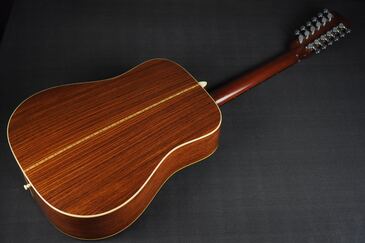 マーチンの12弦モデルは意外と登場時期が遅く、スロテッドヘッドと12フレットジョイントのレトロなルックスを持つD-12-20が1964年に登場したのが最初となり、その翌年の1965年には、ローズウッド3PバックのD-12-35が登場します。