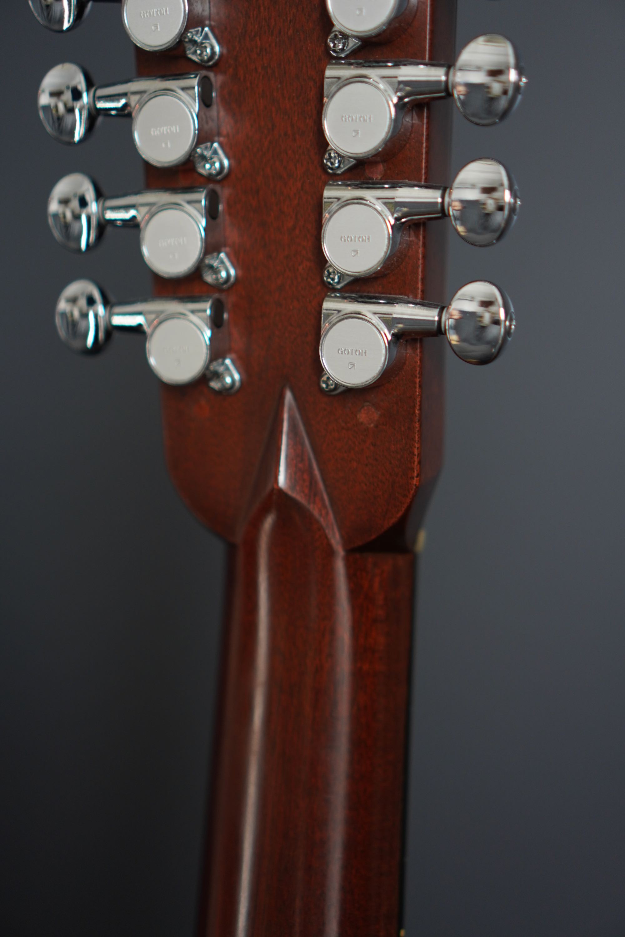 オリジナルですと特徴的なペグは交換され、近年のGotohのロトマチックタイプに交換されておりますが、動作も滑らかですので、古いながらも使用感は良い12弦ギターです。