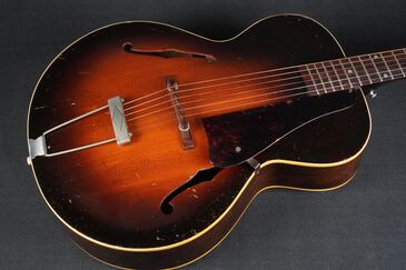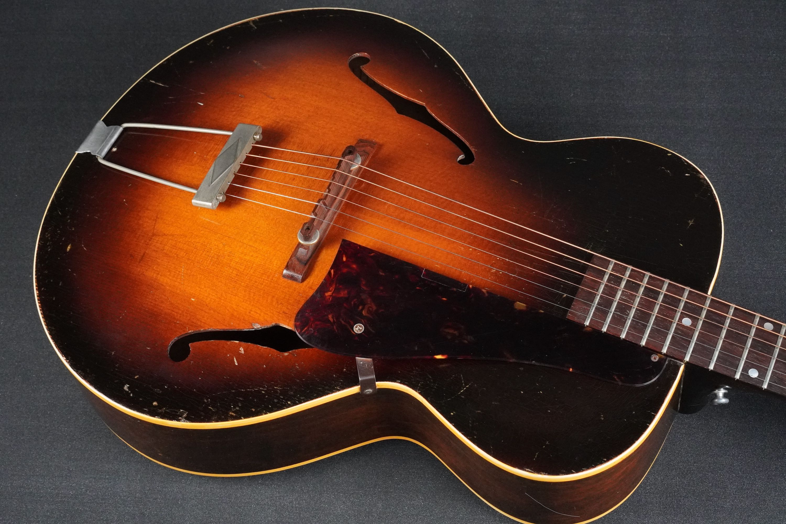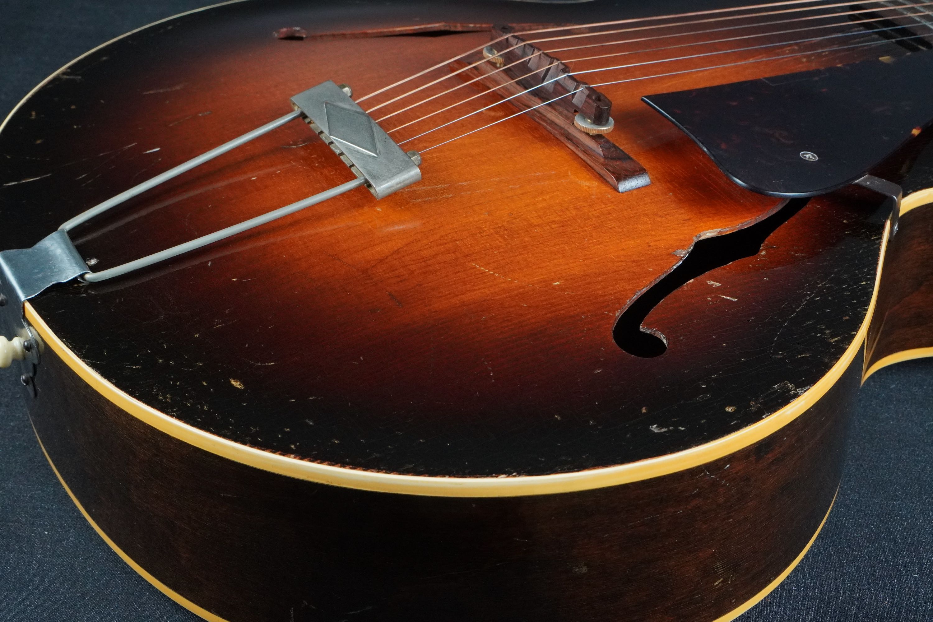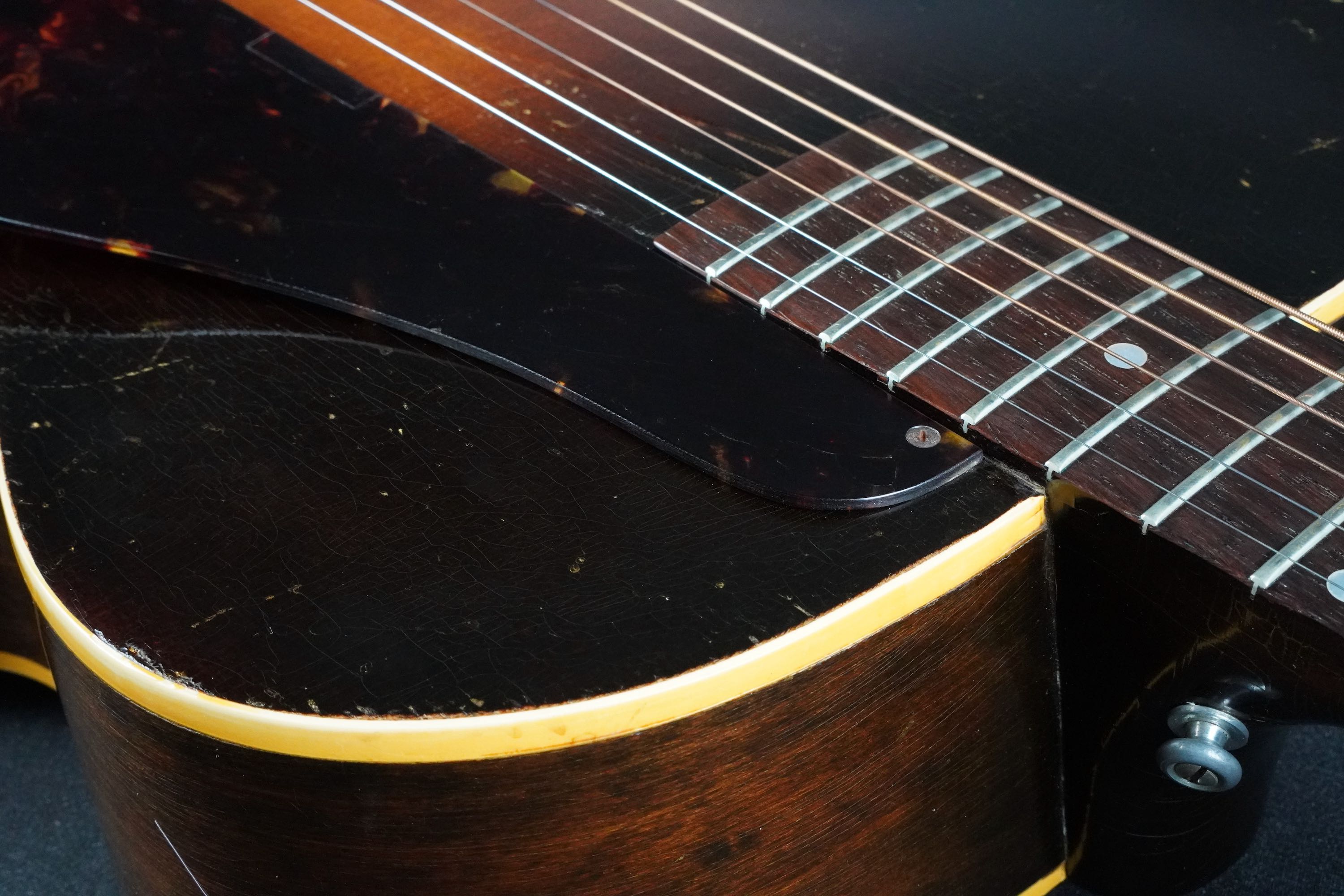 俗にピックギターとも呼ばれる、fホールのアーチトップでピックアップの搭載が無いギターは、フラットトップのアコースティックギターとはまた違う鳴りを持ち、ピックアップが無くノンカッタウェイのスタイルから、現代的なJAZZでも扱い辛く、なかなか独特なスタイルの為、ヴィンテージGibsonの中ではお手頃なのですが、そのレトロなルックスや他では無いサウンドから、近年では人気が高まっております。