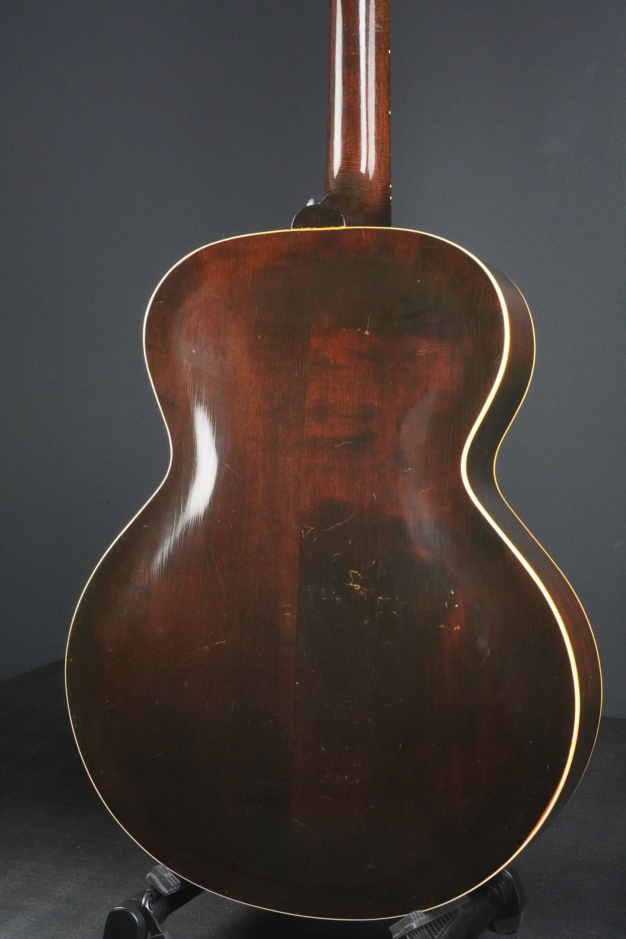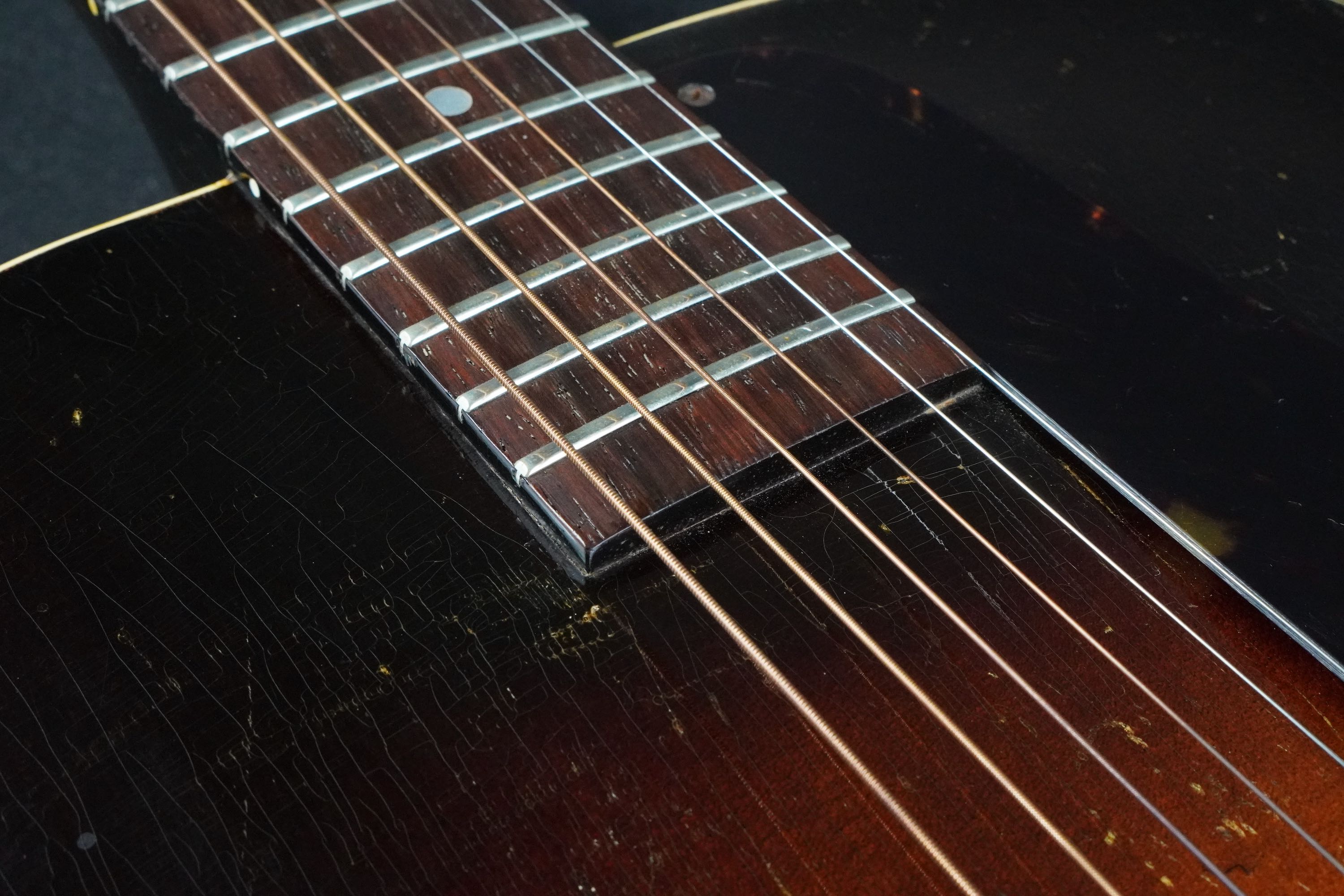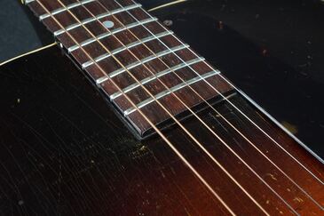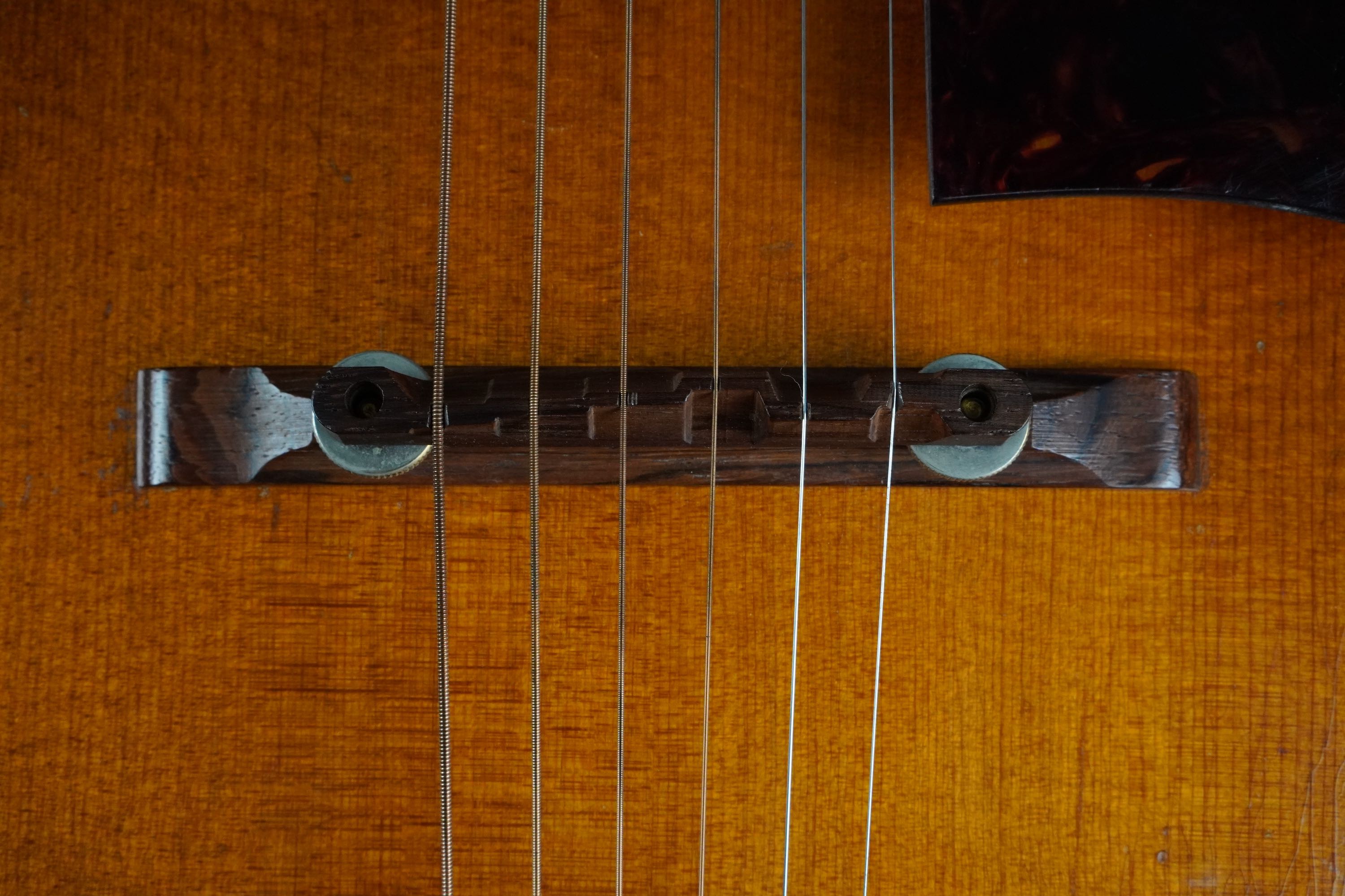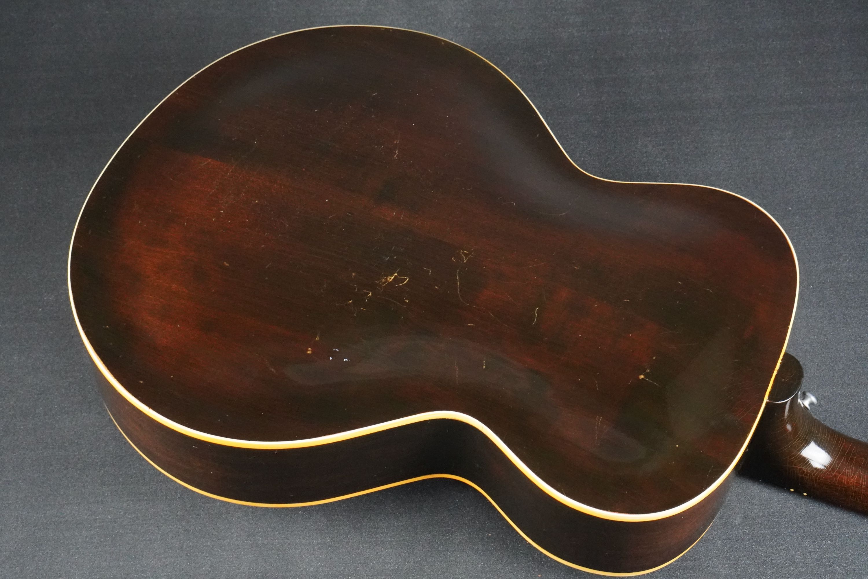 俗にピックギターとも呼ばれる、fホールのアーチトップでピックアップの搭載が無いギターは、フラットトップのアコースティックギターとはまた違う鳴りを持ち、ピックアップが無くノンカッタウェイのスタイルから、現代的なJAZZでも扱い辛く、なかなか独特なスタイルの為、ヴィンテージGibsonの中ではお手頃なのですが、そのレトロなルックスや他では無いサウンドから、近年では人気が高まっております。