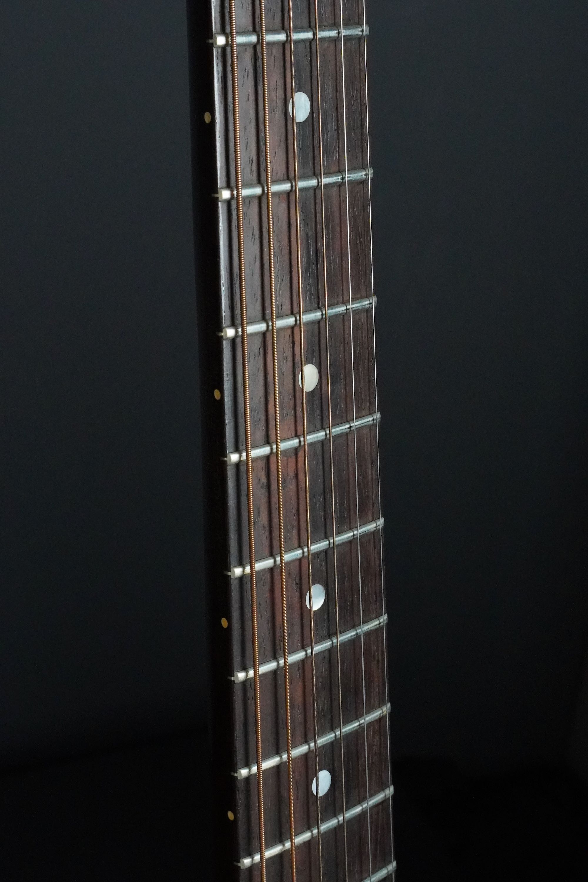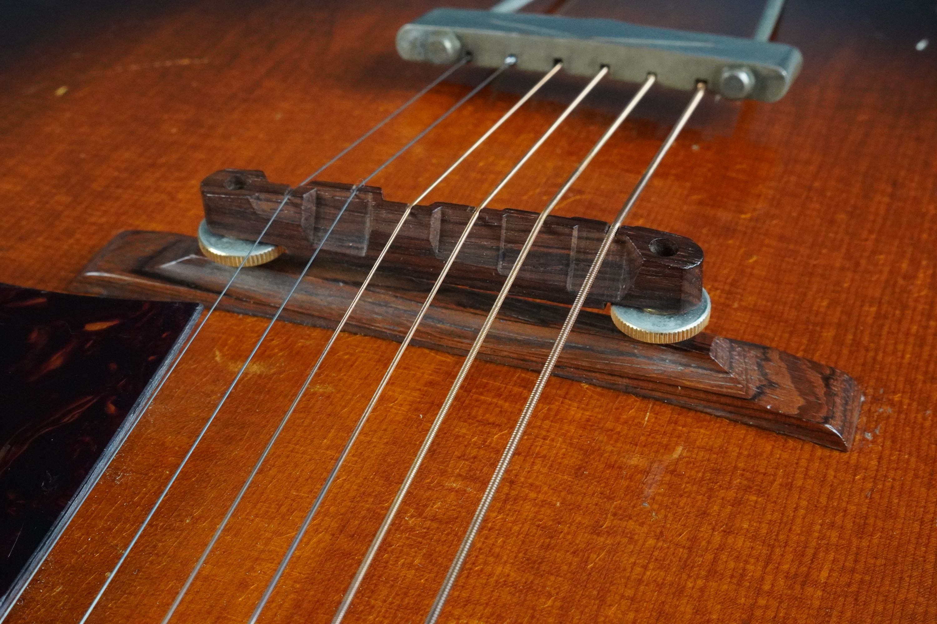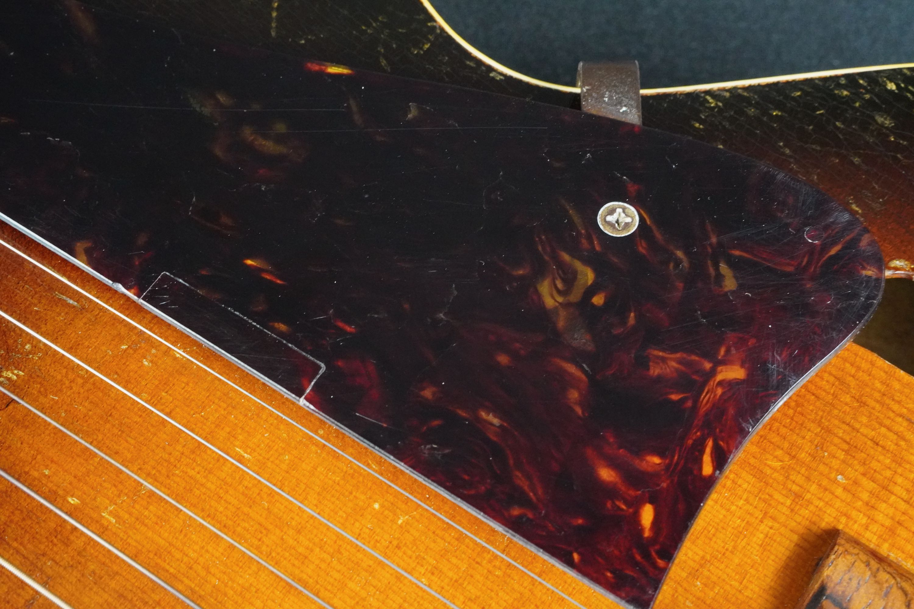 フレットは太めなタイプでリフレットされ、ナットの交換、ネックヒールにストラップピンの取付、ピックガードはオリジナルですが、以前にピックアップを取り付けたような加工跡も有ります。