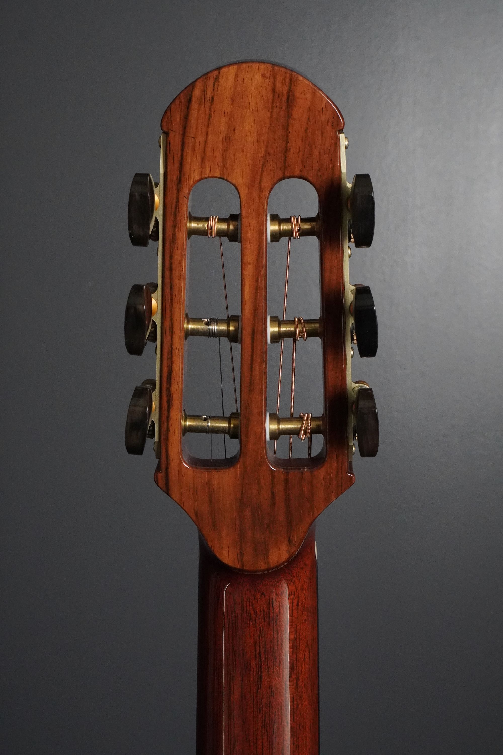 こちらもレトロなスロッテッドヘッドには表と裏に化粧板が入り、モダンなデザインのブランドロゴのインレイがヘッドトップに収まり、こちらも品の良いオリジナルのペグもデザインもモダンで、抜群のルックスです!