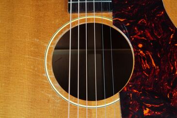 また、年式の割には状態も良い個体で、トップは素晴らしいシトカスプルースが使われていて、木目が美しく、細かく繊維が走っており、レモン色に焼けた明るい顔で、とても貫禄のあるのJ-50です。