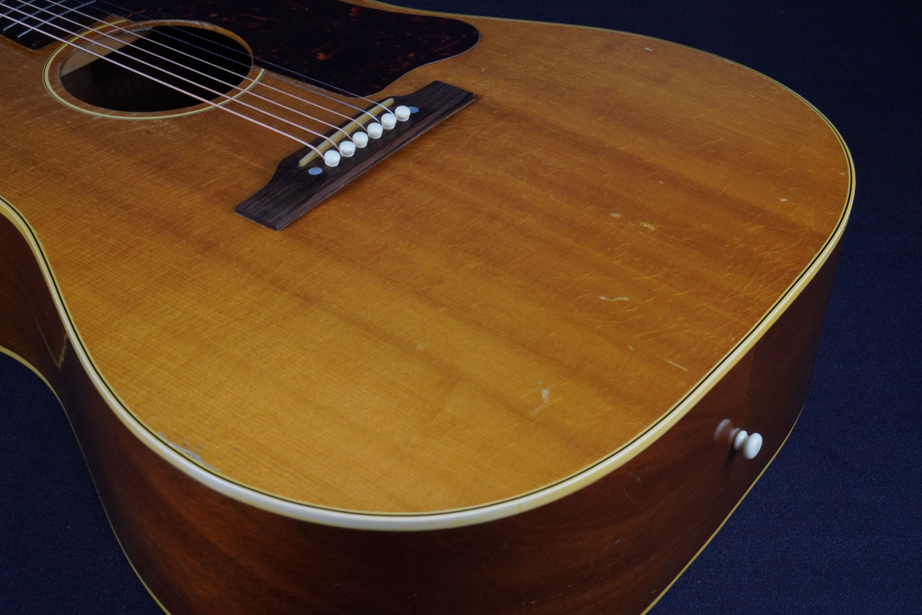 トップに薄い塗装のチェッキング、多少の打ちキズ、弾きキズは有りますが、この年代のJ-50としては抜群にコンディションの良い個体です。