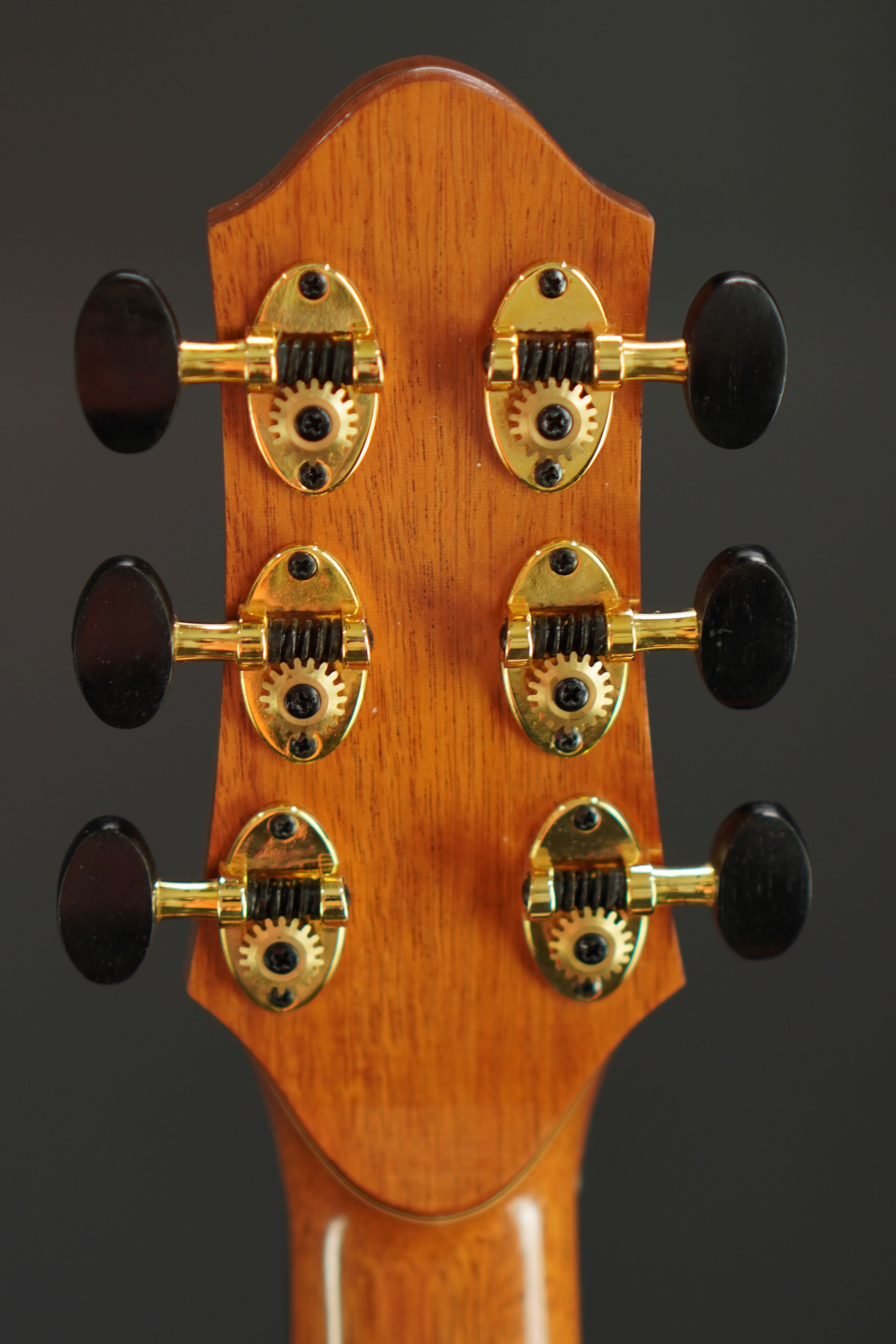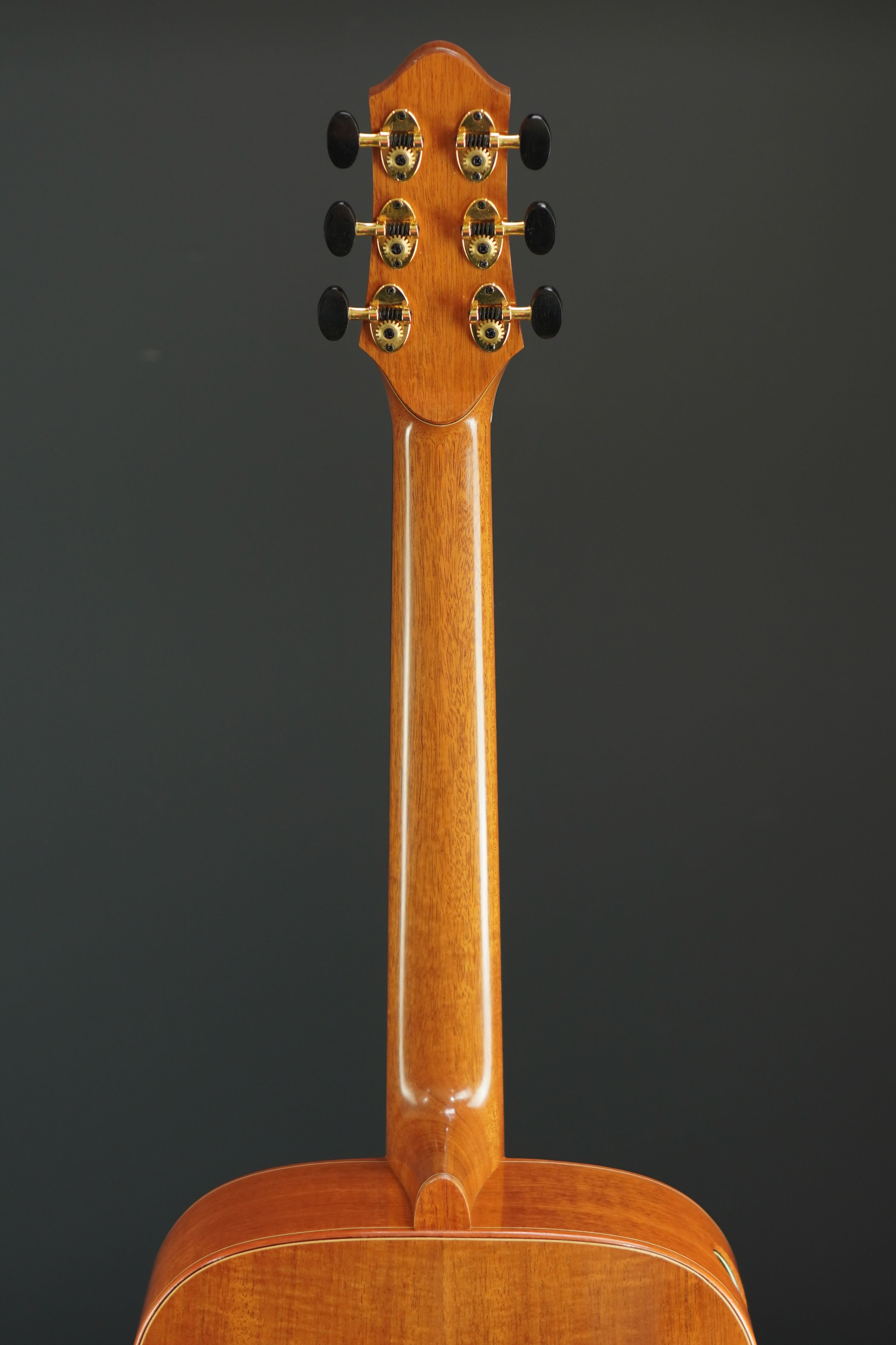 ヘッドプレートにも、同じログのマホガニーを使って、綺麗な杢が出ています。