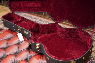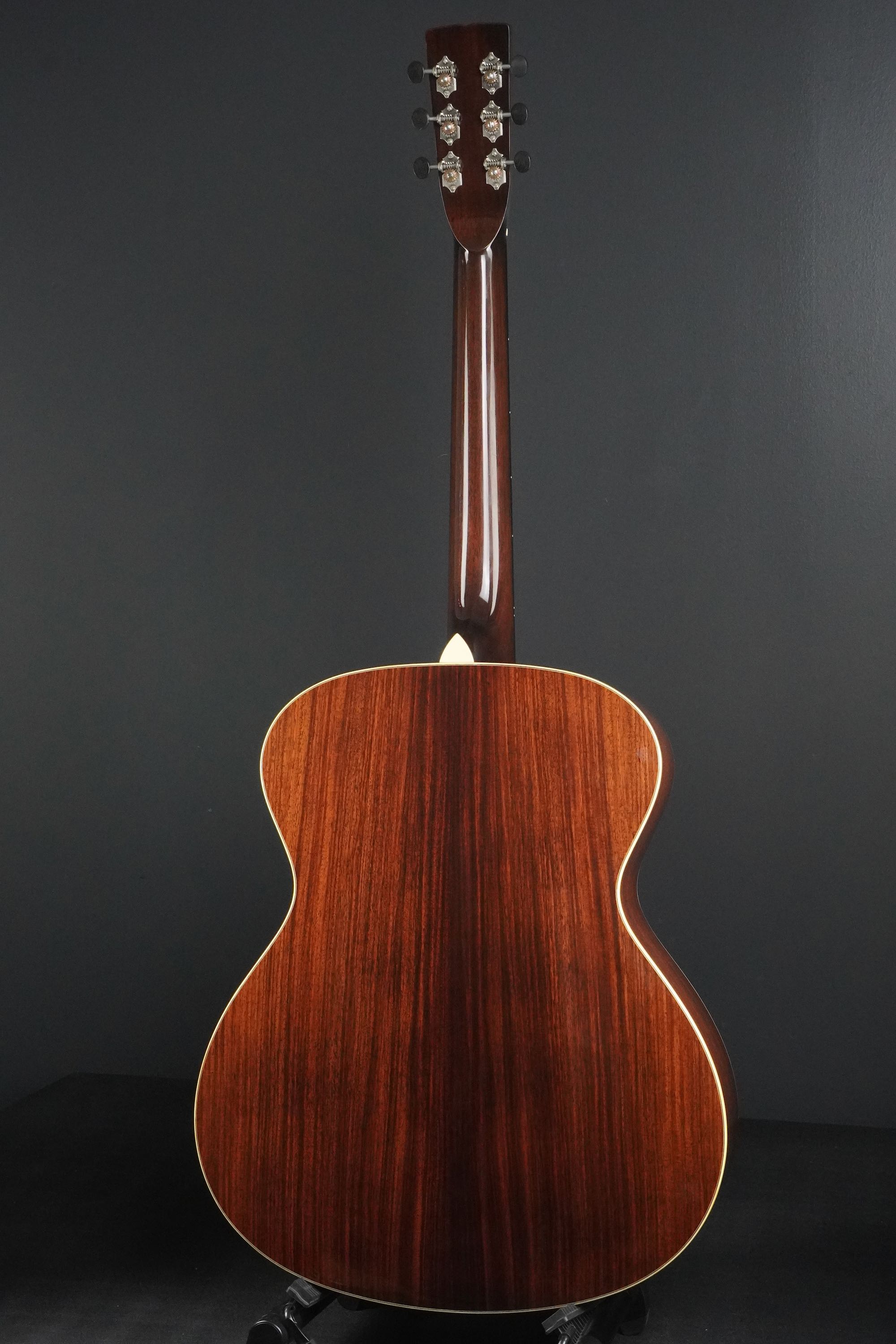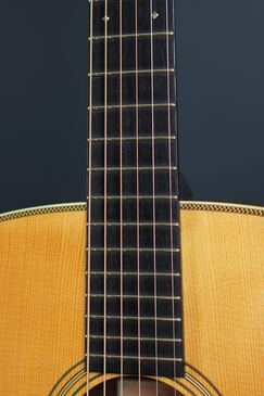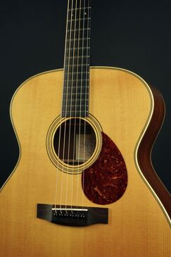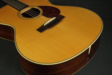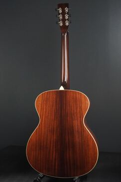 この特徴的なルックスのジャンボモデルは、伝説的なラーソン・ブラザーズの中でも有名な、プレーリーステートの一つのスタイルをモチーフにデザインされており、ボディサイズが16.77インチと大柄なサイズのギターです。