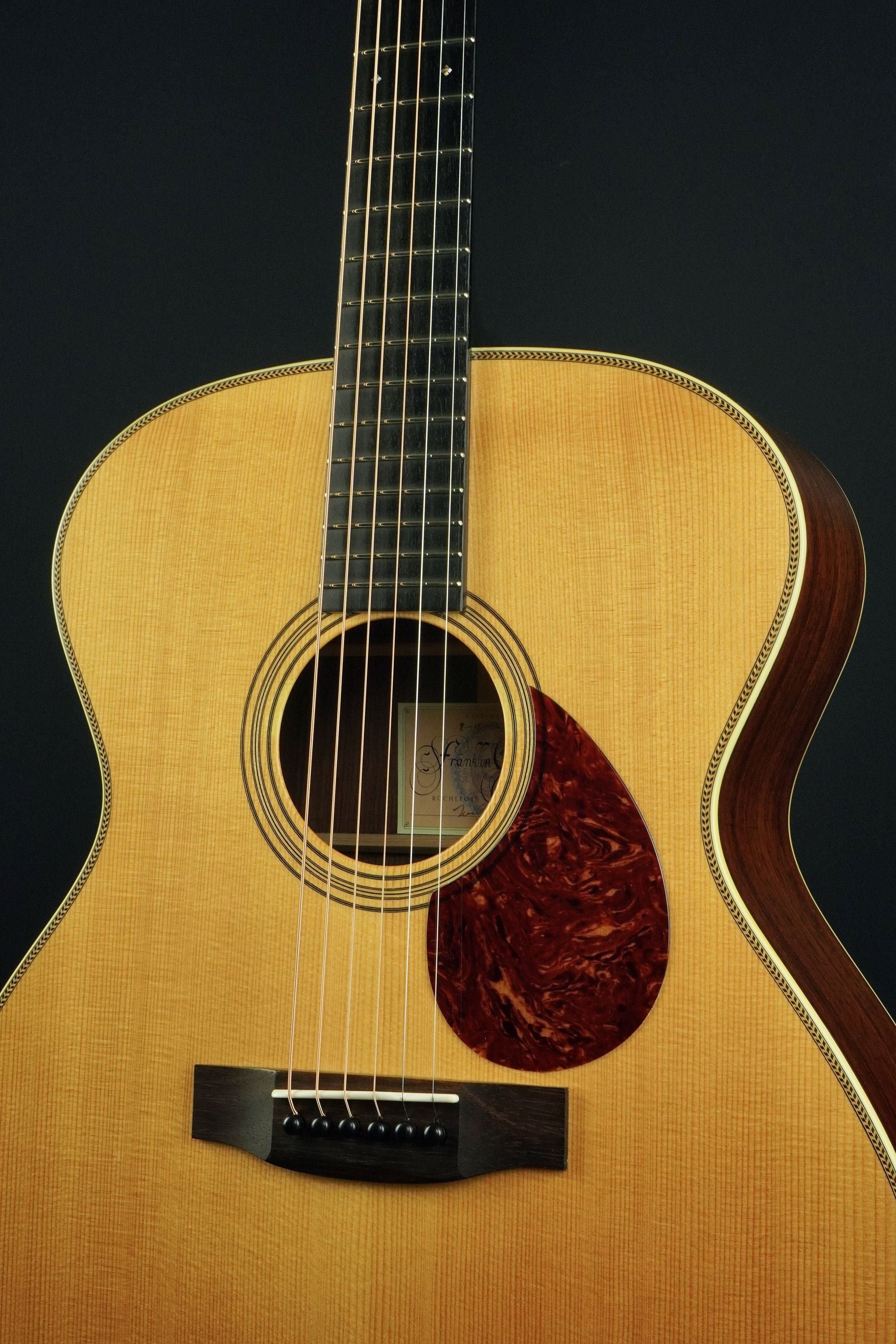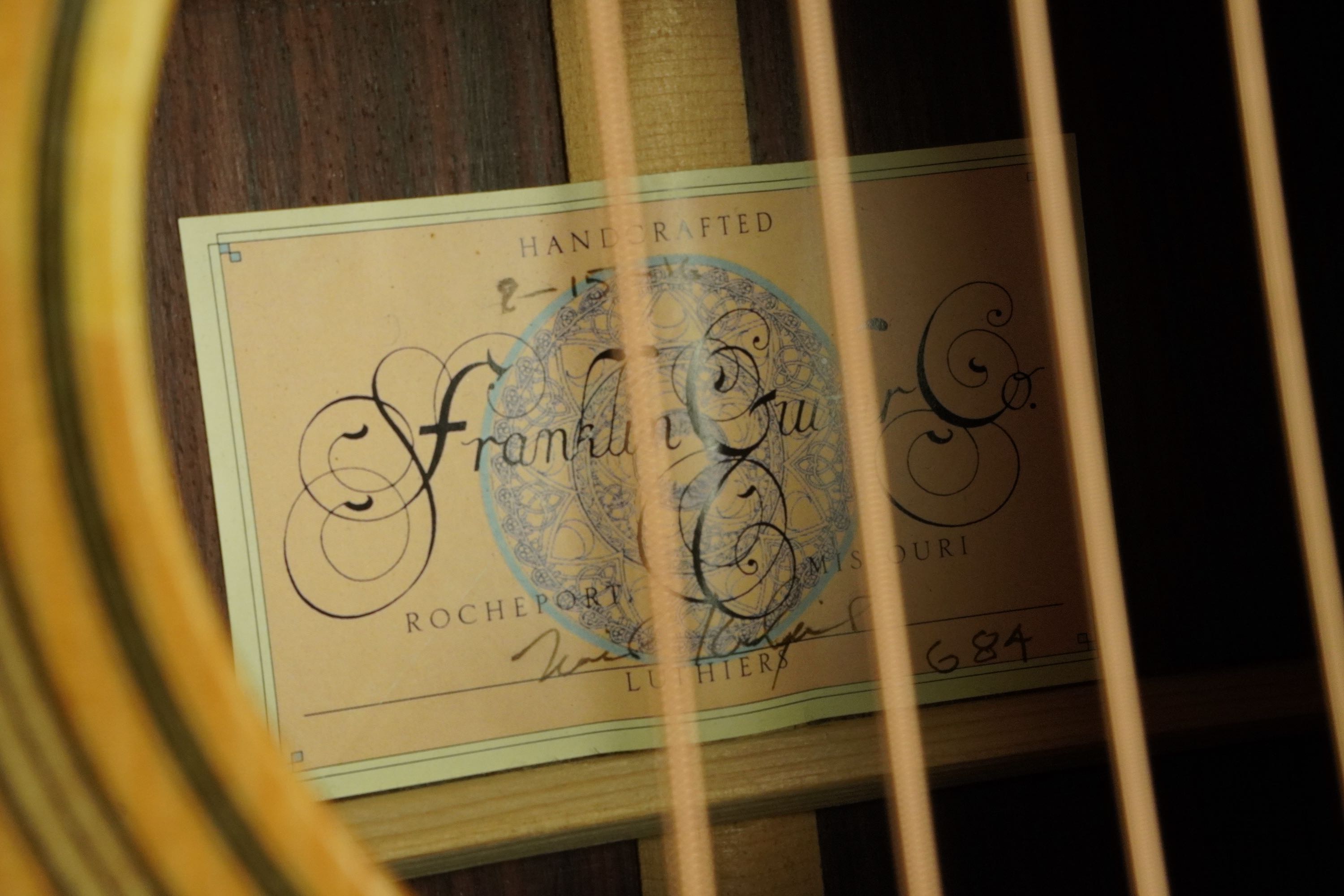 フランクリン・ギターと言えば、まだルシアーという言葉が知られていない80年代から90年代初めに、ステファン・グロスマンやジョン・レンボーンが使用して一躍有名になった伝説のギターで、特に伝説のプレーリーステートタイプをモチーフとしたジャンボモデルの人気が高く、その独特なスタイルやルシアーメイドらしい造りの良さ、そしてサウンドクウォリティーの高さも魅力です。