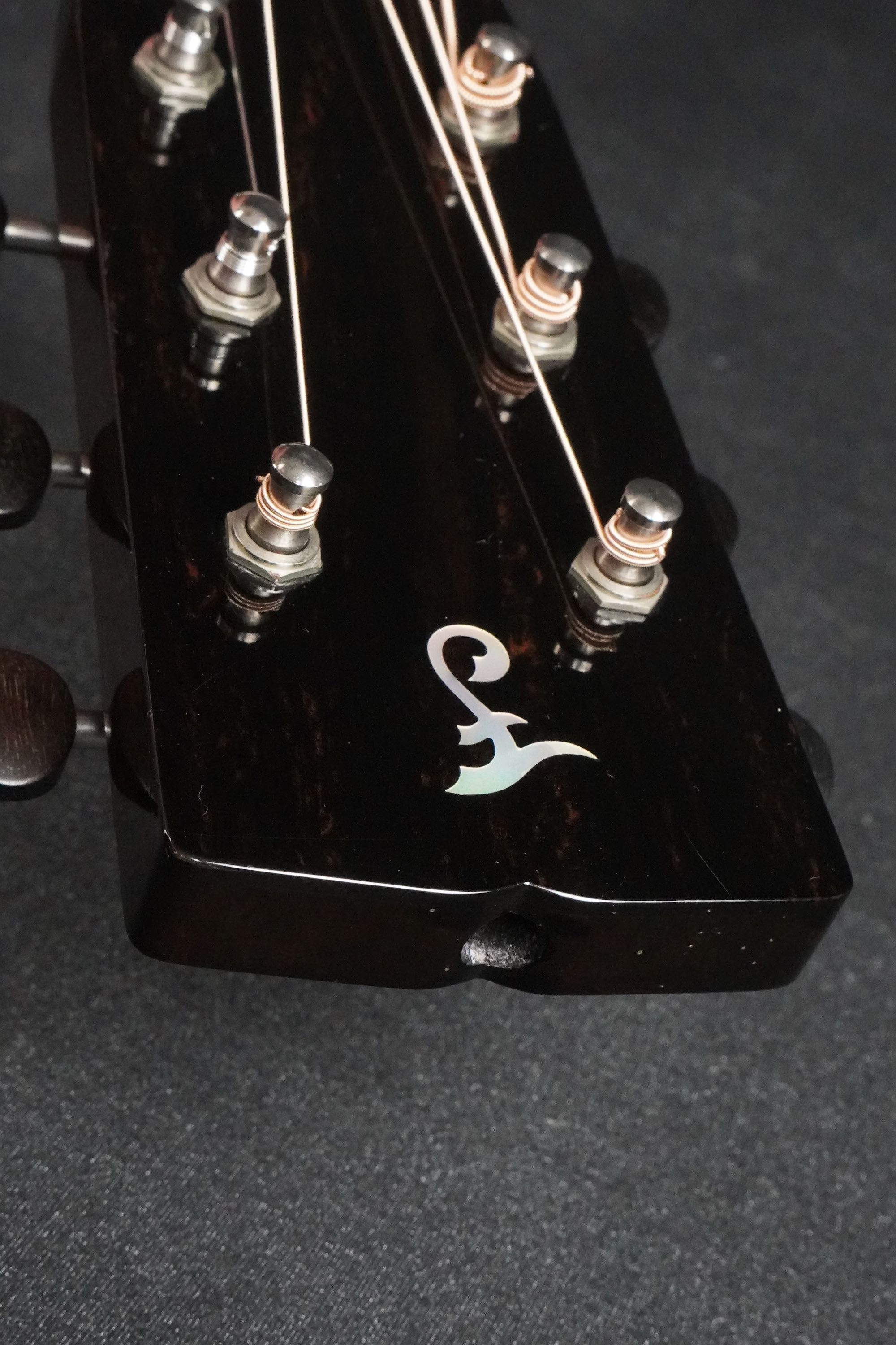 ヘッドの付き板はエボニーで、細身の面長なヘッドが引き締まった印象になり、シンプルなヘッドのブランドロゴと共に、非常にシャープでエレガントな印象です。