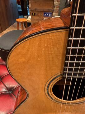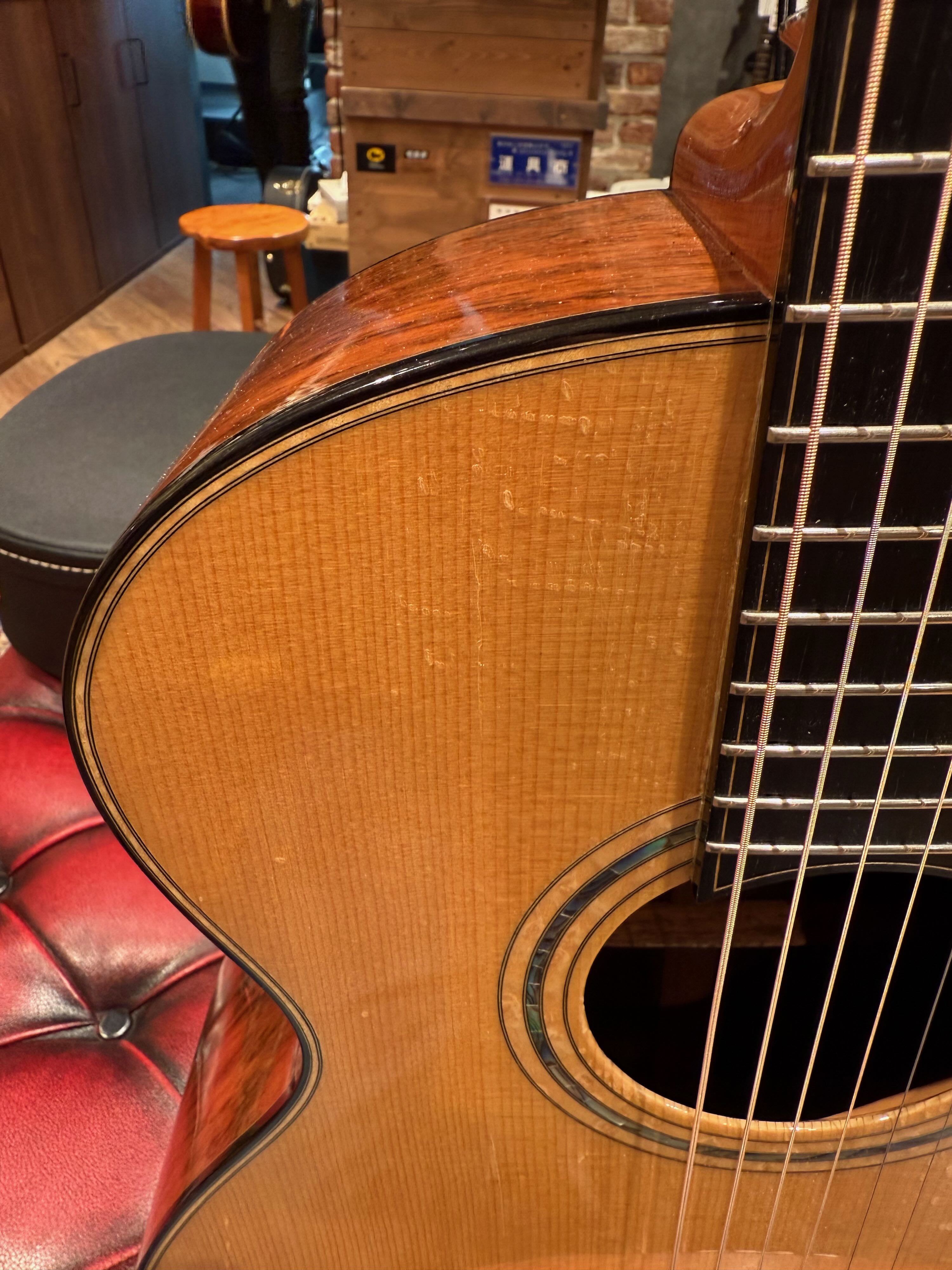 2002年製の本機は、SJタイプと共に人気の高いStudio(OM)タイプでカッタウェイ、ウッドマテリアルにもジャーマンスプルースのトップにハカランダのサイド&バックという、トーンウッドとして評価の高い組み合わせとなっております。