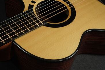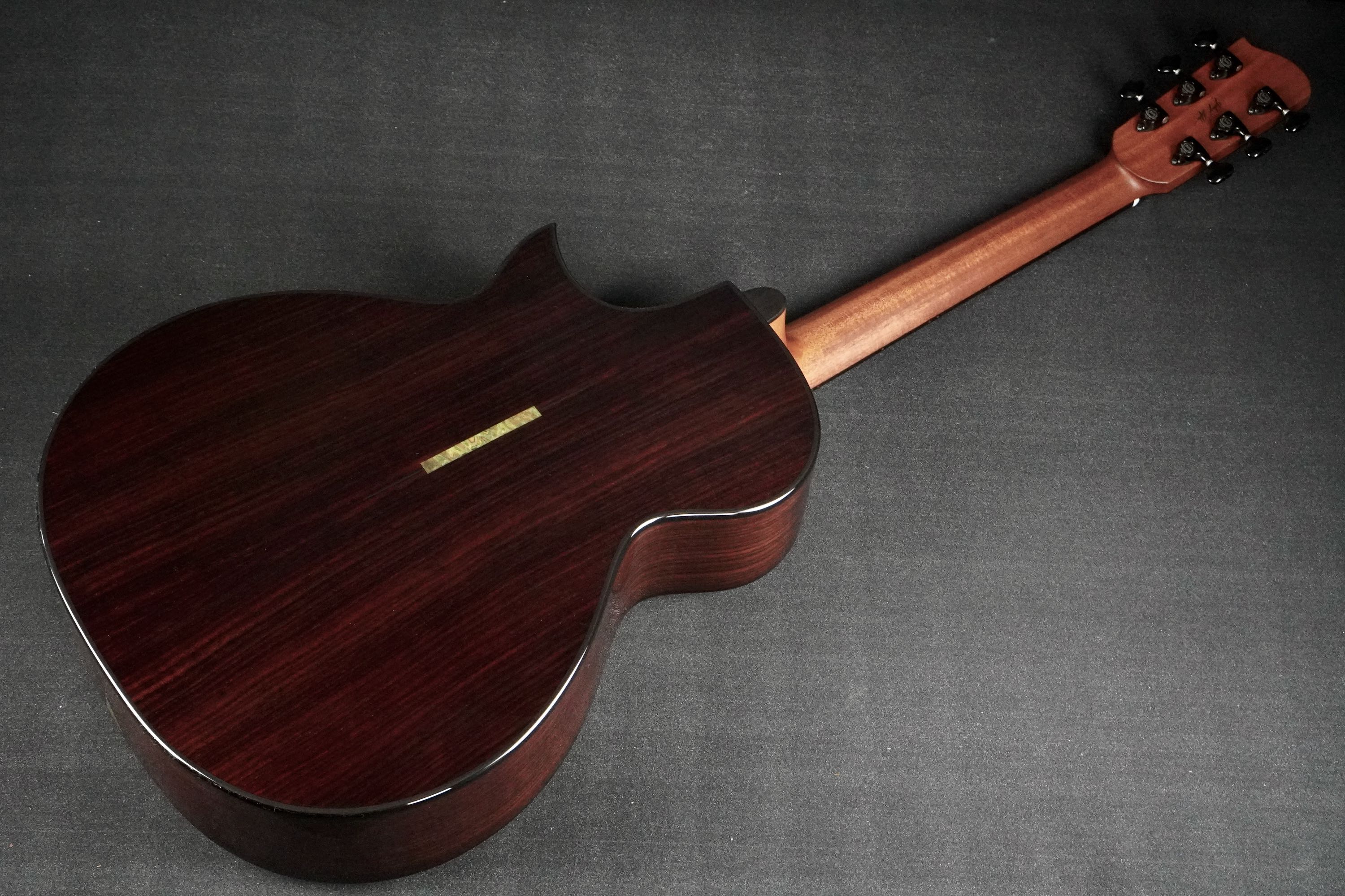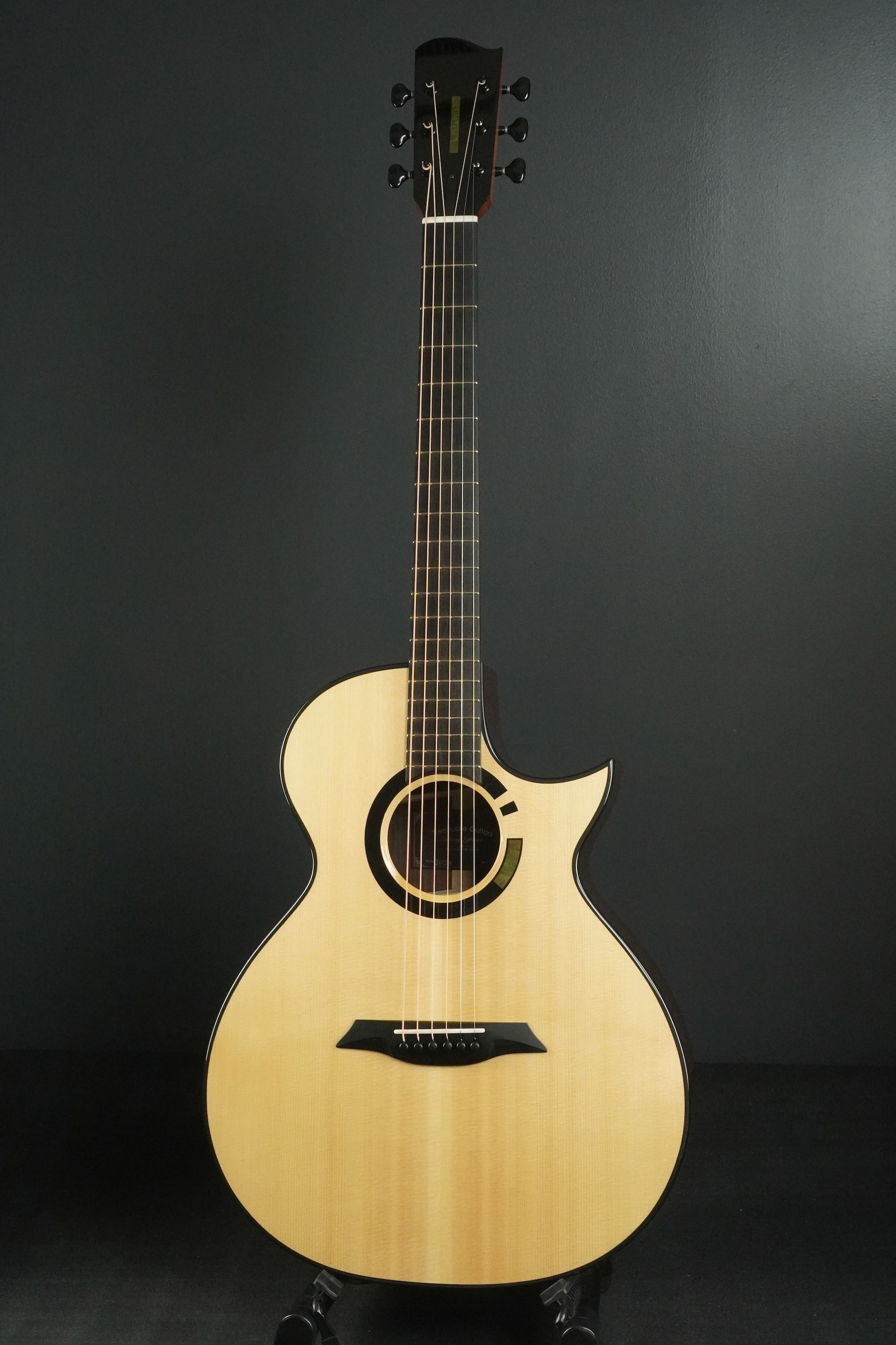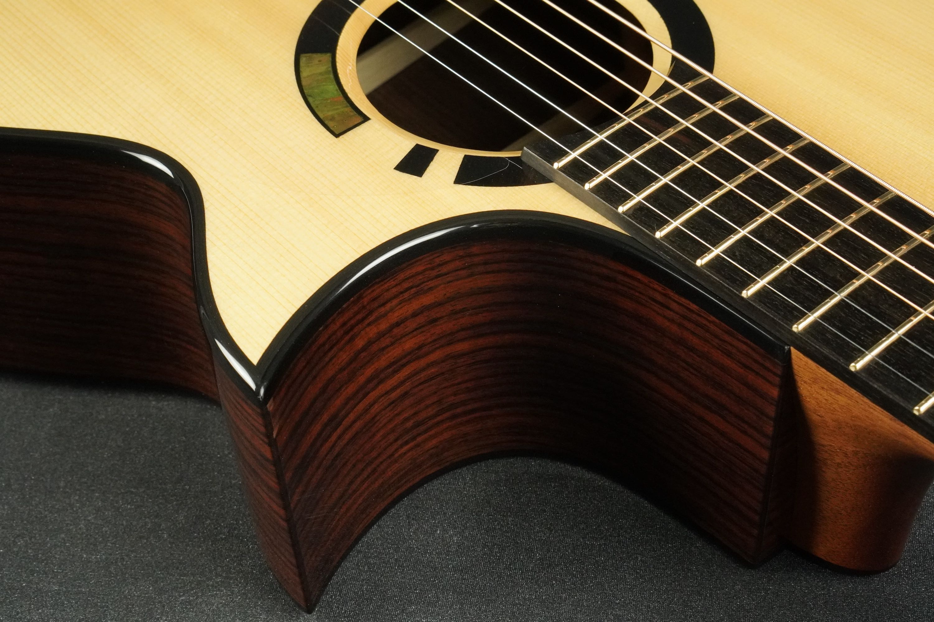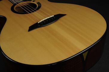 厳選された木材を使い、フローレンタインカッタウェイ仕様のエレガントなOMモデル。