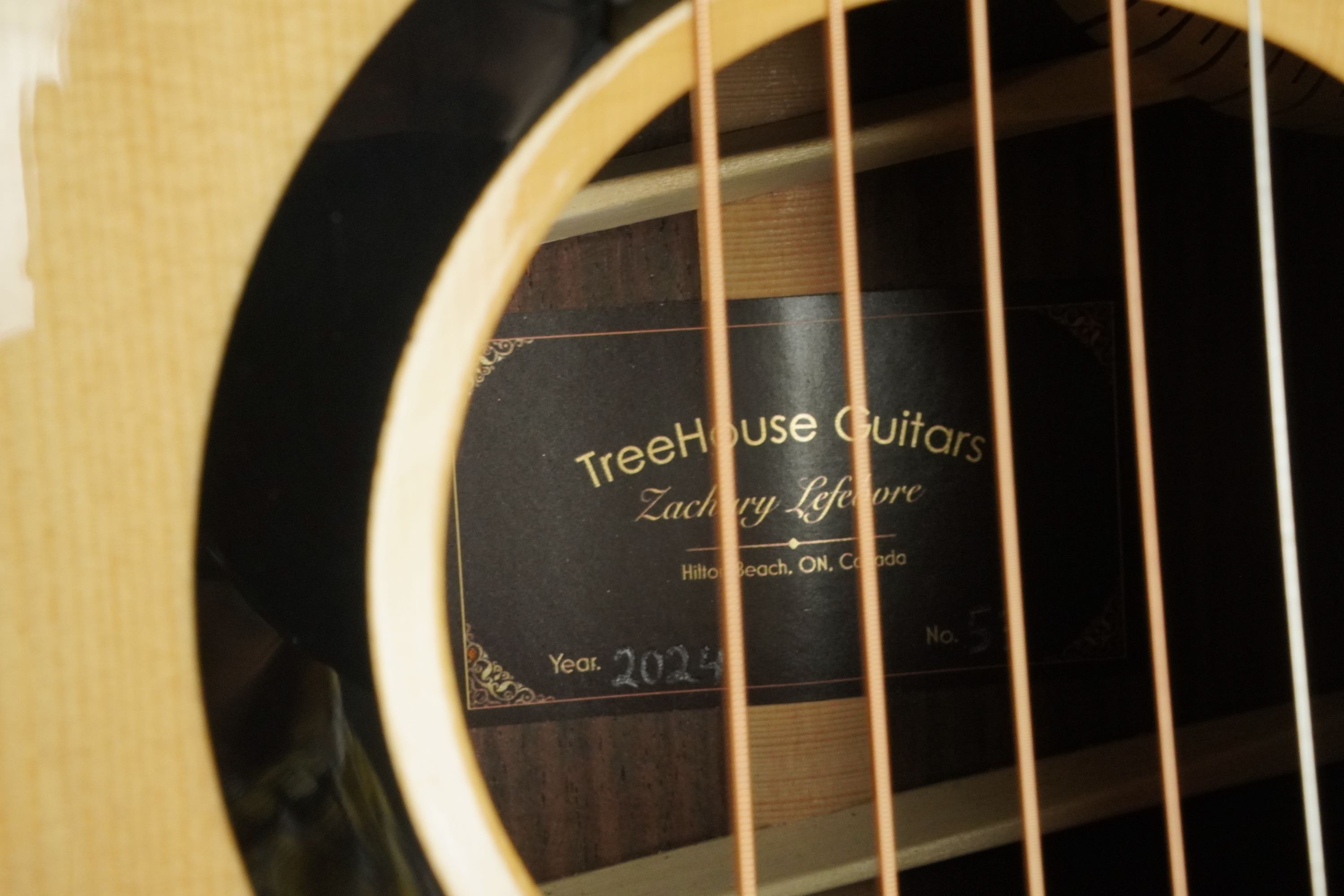 ザック・ラフェイブ氏は2012年に、カナダのマスタールシアー”サーゲー・ディヤング氏のギター製作コースを取り、ギター製作の道に入りました。その後、カナダのオンタリオに工房を構え、ツリーハウス・ギターズを立ち上げました。