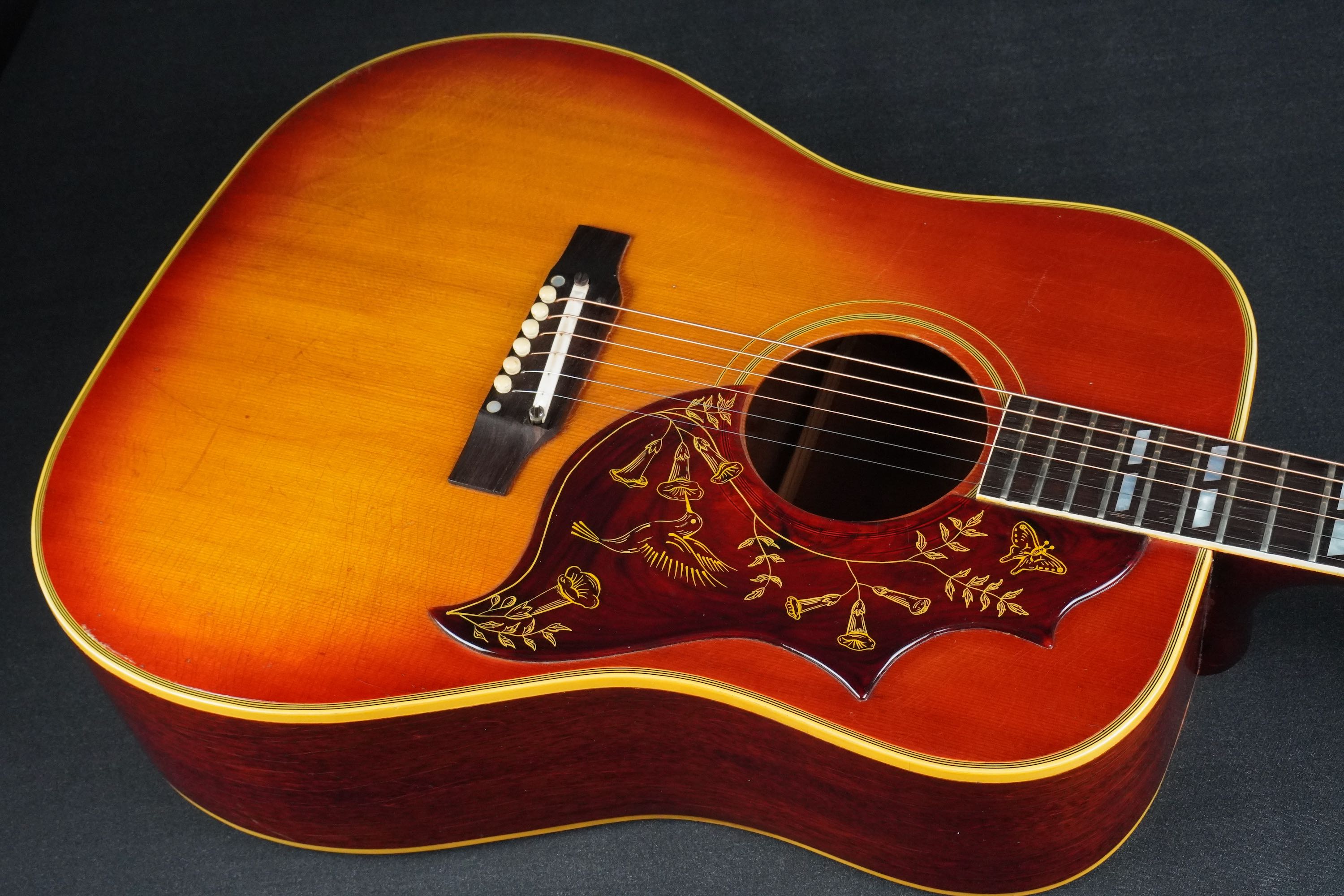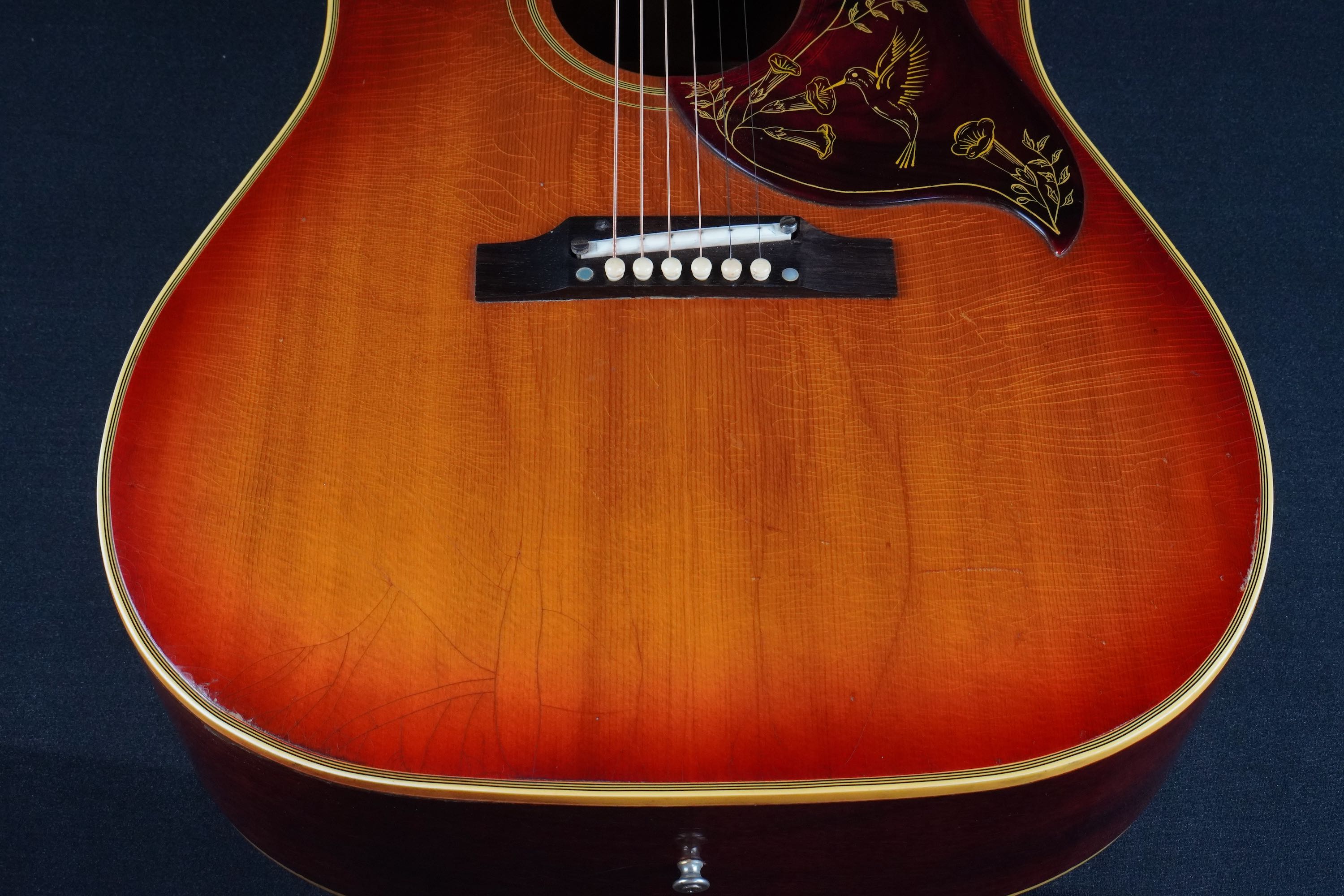 程良く使い込まれ、軽くフェードしたチェリーサンバーストも良い味を醸し出す、1964年製のハミングバード!