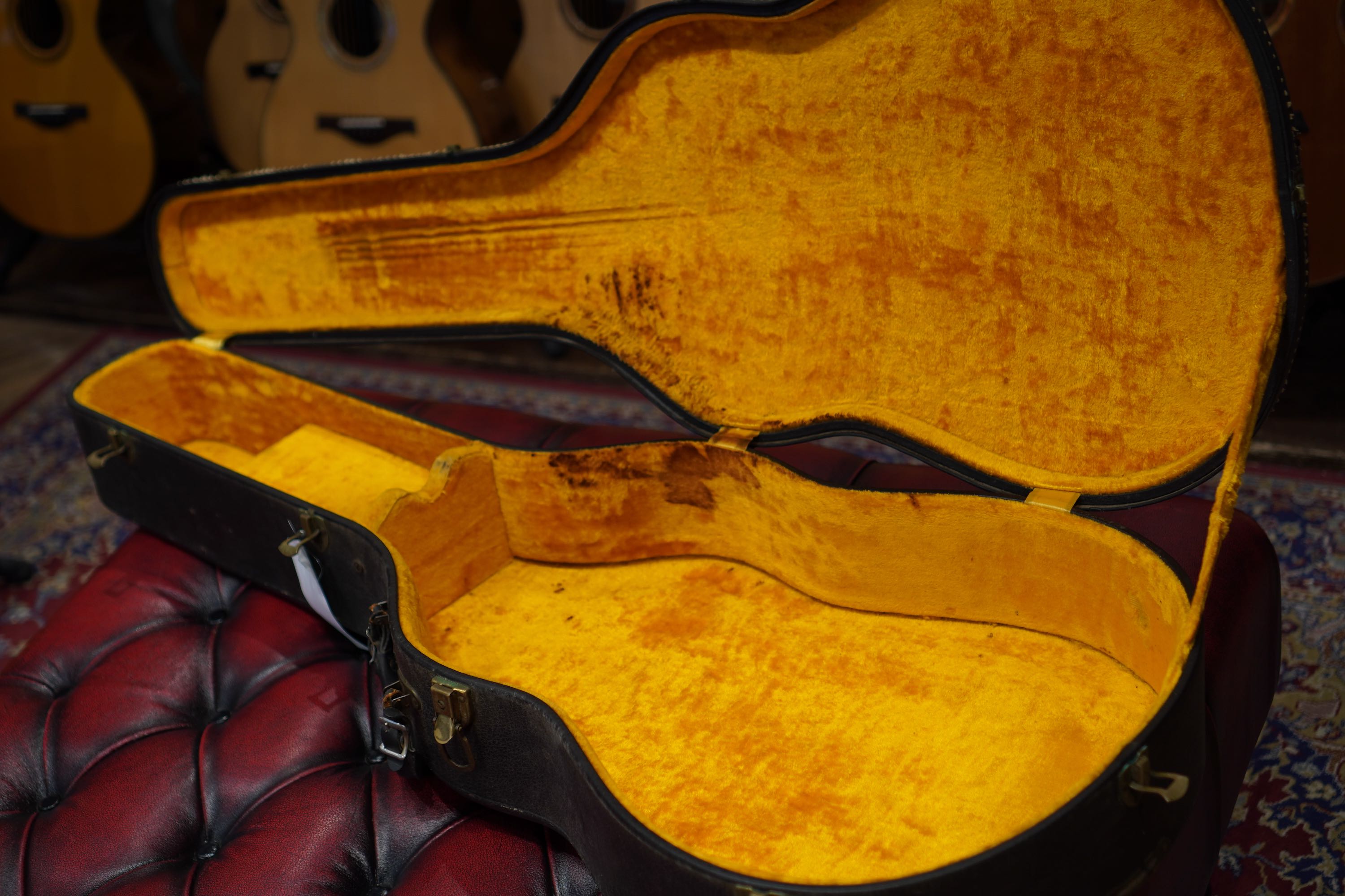 この明るい表情のハミングバードは、年式的には63年のピンポイントでプラスティックブリッジだった頃が多いのですが、本機はその翌年に普通のローズウッドのブリッジに変わった頃で、それでいてフェードがそれほど進んでいない明るい表情は意外と珍しく、状態もヴィンテージらしく細かな弾き傷や打コン、塗装が痩せてウェザーチェックも入って渋い風合いもあり、細かな箇所で修理調整は有りますので演奏性は良く、なかなか興味深い個体です。
