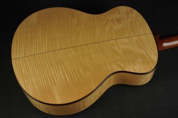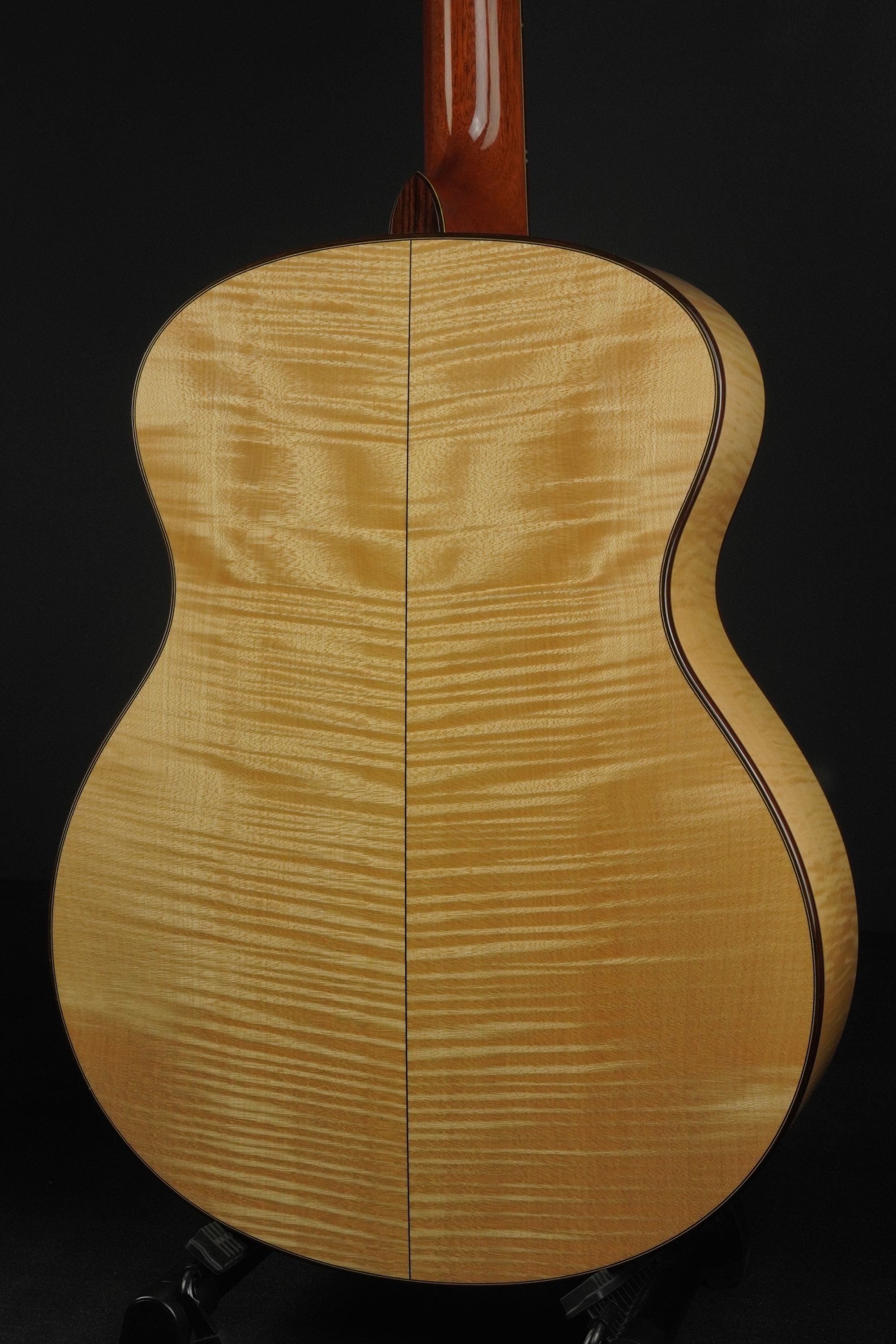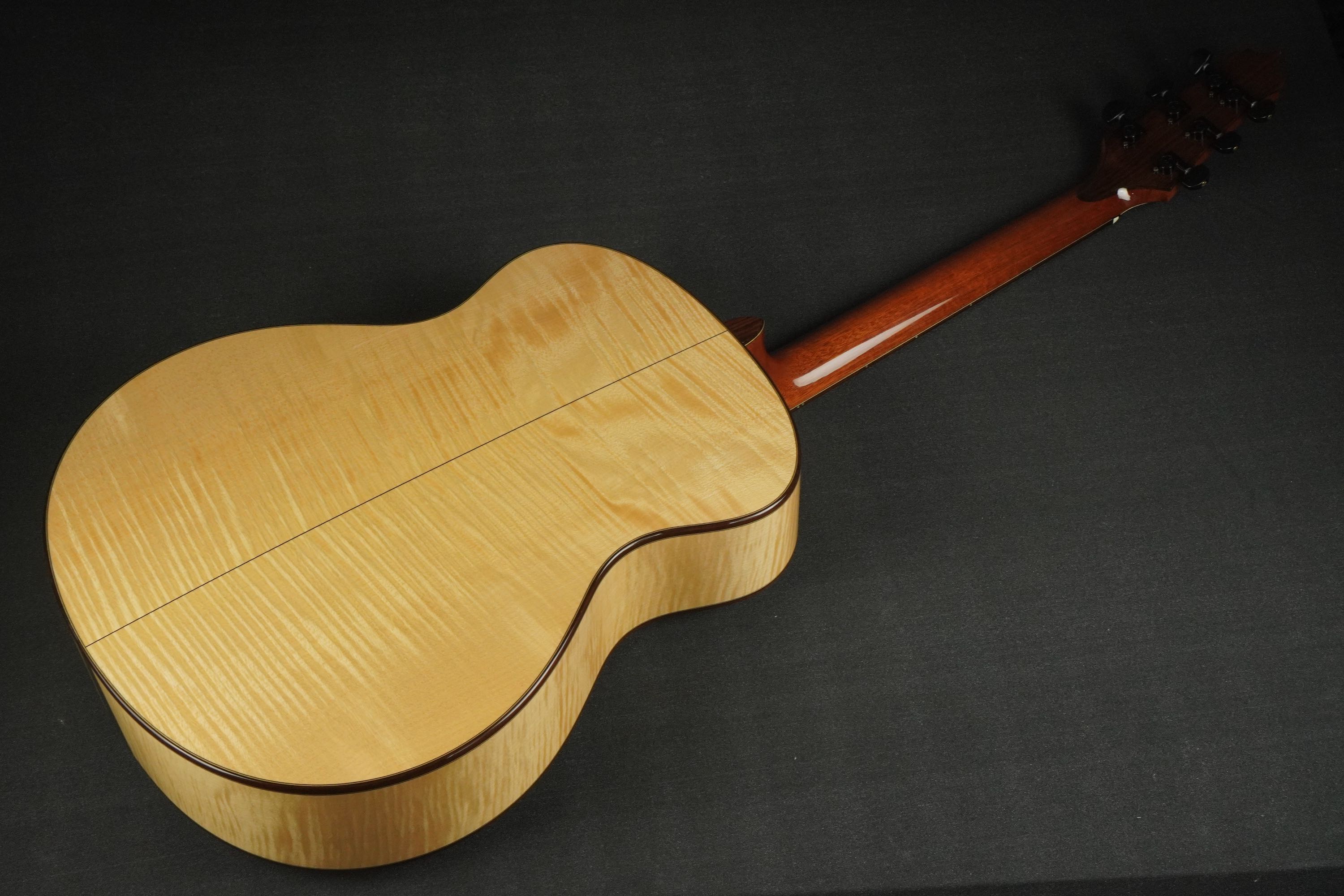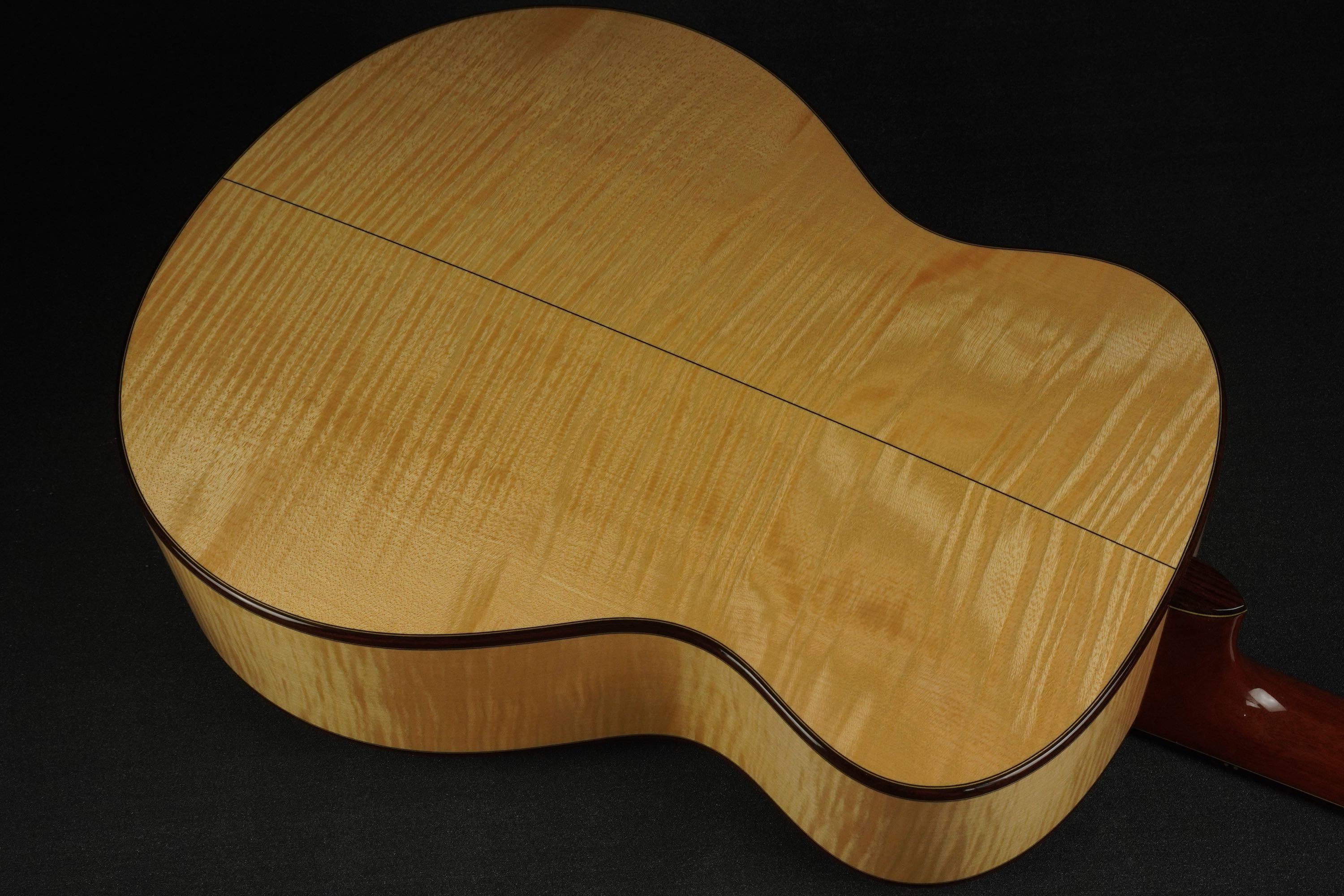 メイプルらしい伸びやかなサスティーン、出音はぐっと前に出て立体的で艶の有るトーン、ネックグリップのセティングなどからも、フィンガースタイルの方にオススメですが、実際に弾いてみるとストロークでのまとまりや輪郭の有るサウンドも心地よく、意外と守備範囲が広く、様々なシチュエーションで扱いやすいギターでもあり、フィンガーでもストロークでもこなせる、器用さも持ち合わせております。