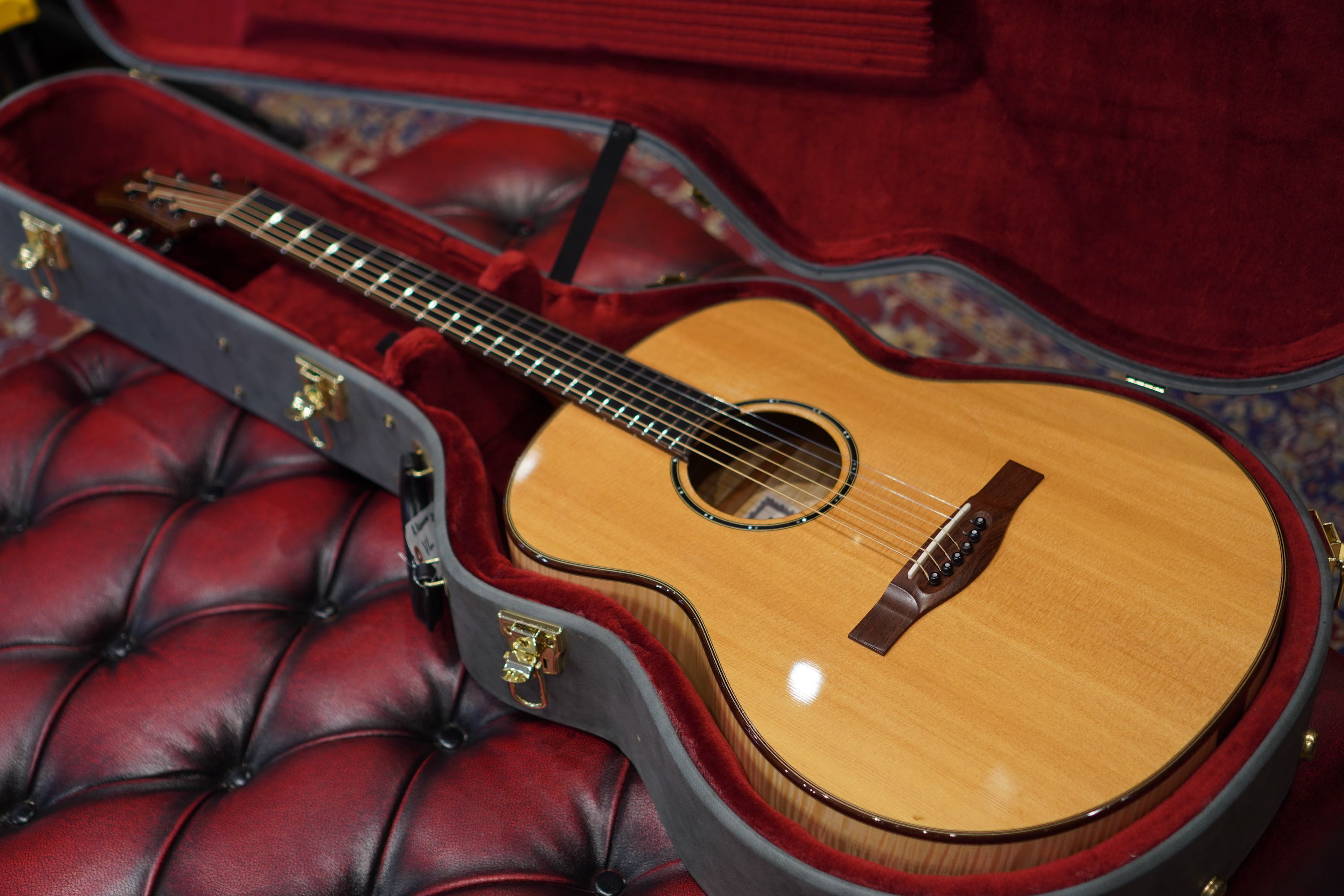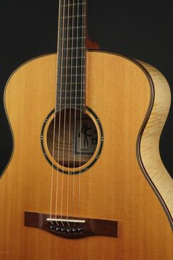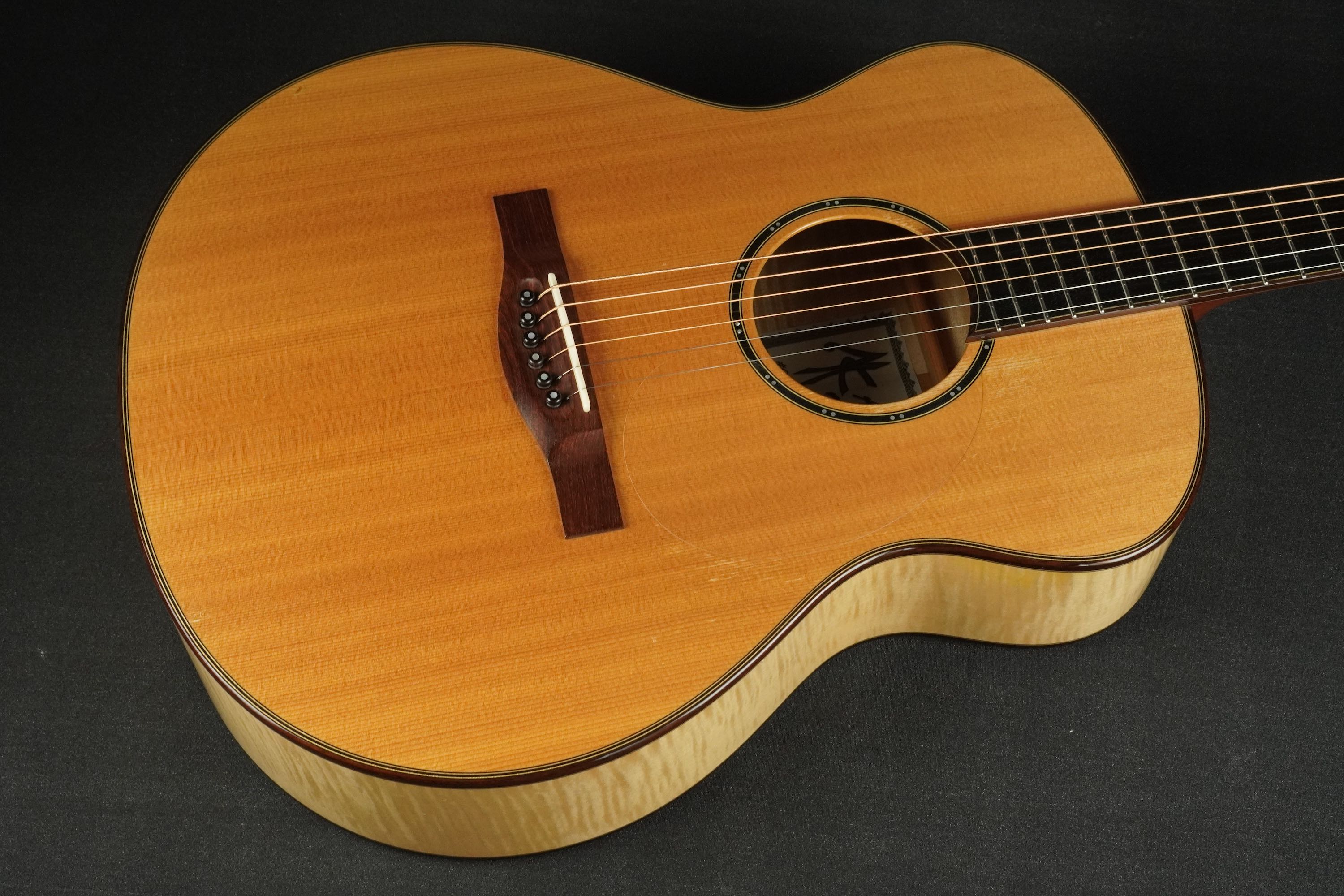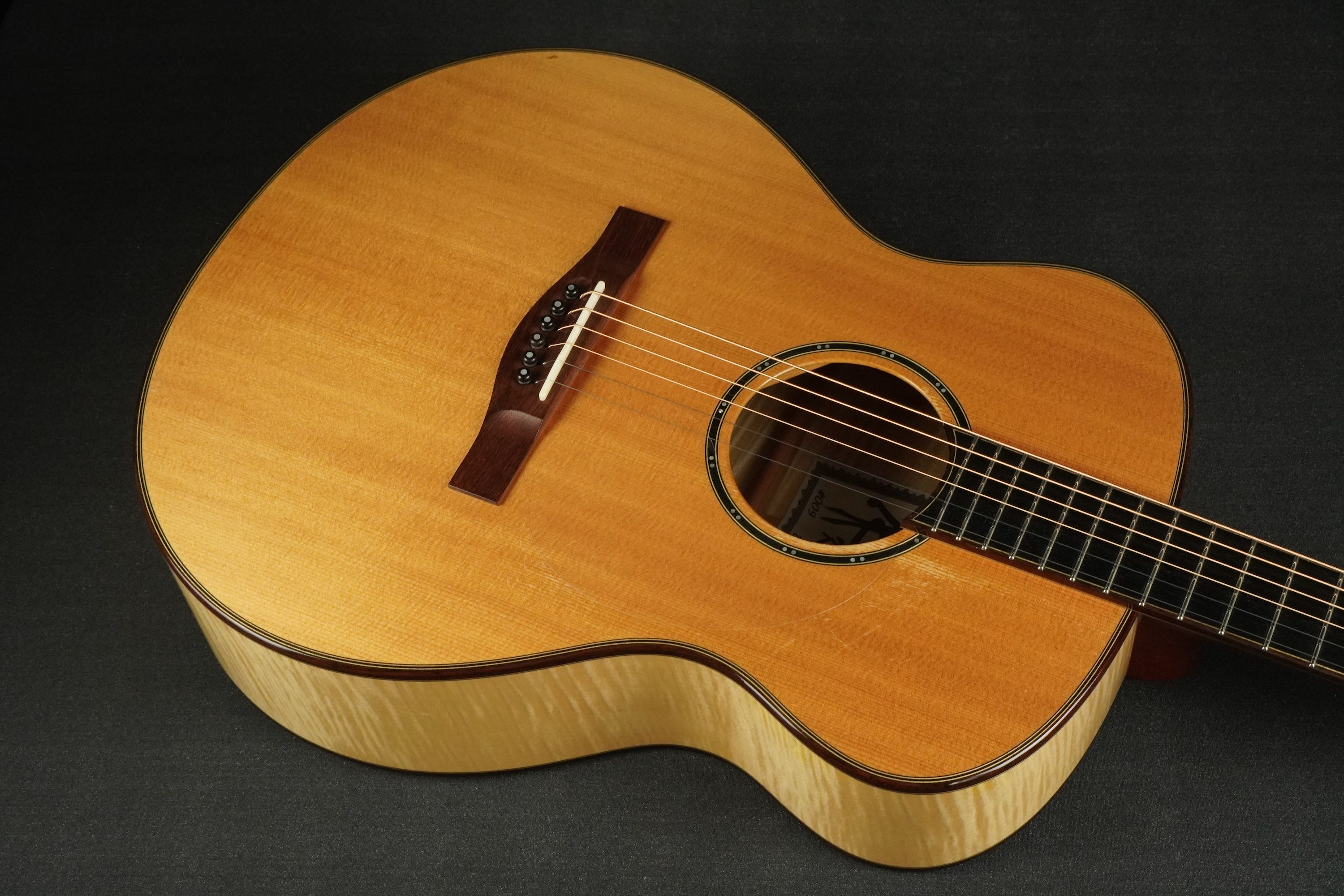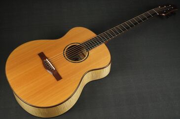 メイプルらしい伸びやかなサスティーン、出音はぐっと前に出て立体的で艶の有るトーン、ネックグリップのセティングなどからも、フィンガースタイルの方にオススメですが、実際に弾いてみるとストロークでのまとまりや輪郭の有るサウンドも心地よく、意外と守備範囲が広く、様々なシチュエーションで扱いやすいギターでもあり、フィンガーでもストロークでもこなせる、器用さも持ち合わせております。