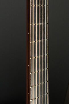 ネックにはホンジュラスマホガニーが使われており、やさしい丸みのあるVシェイプで、Vの頂点を6弦側に寄せ、握り易くなるような工夫が加えられています。