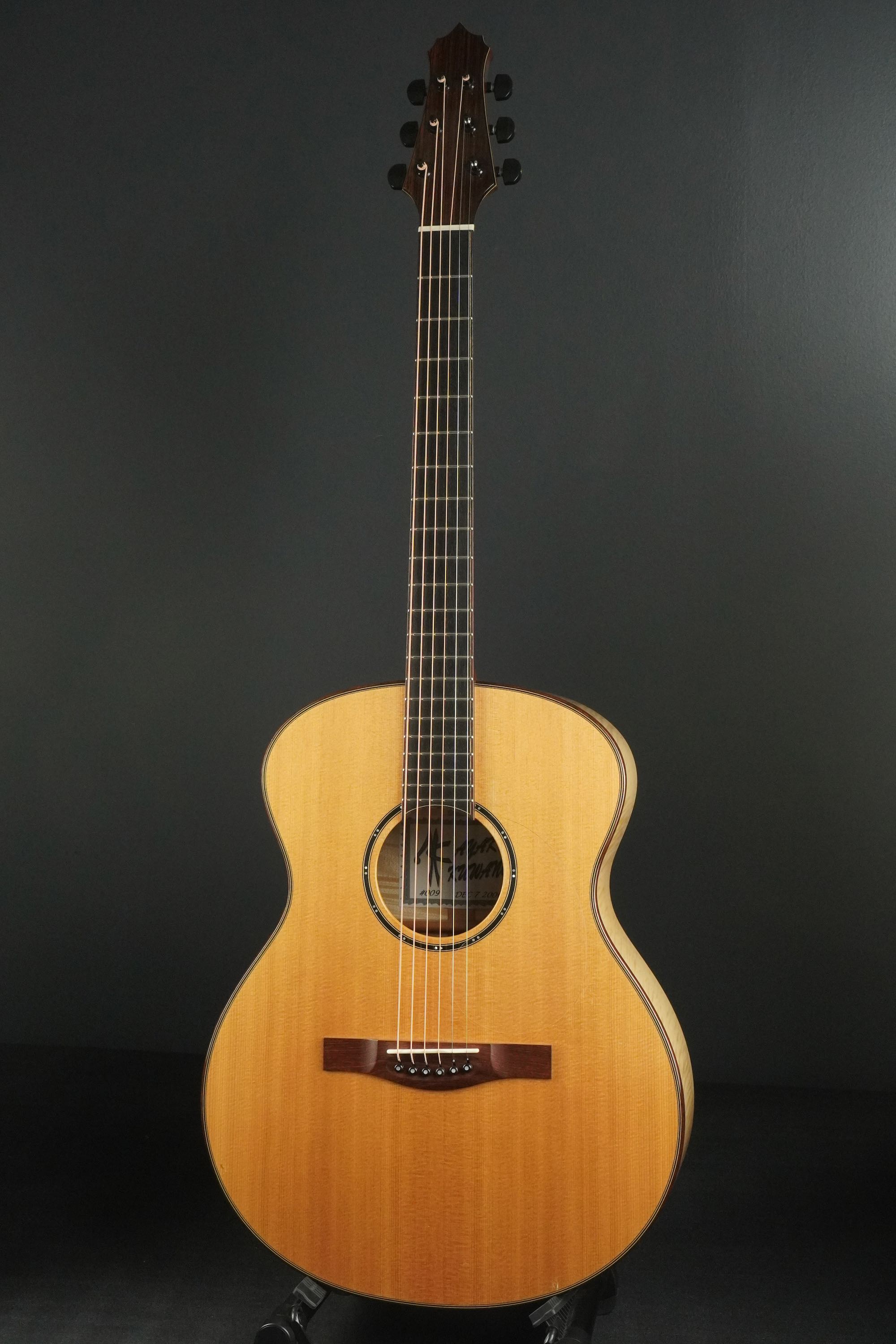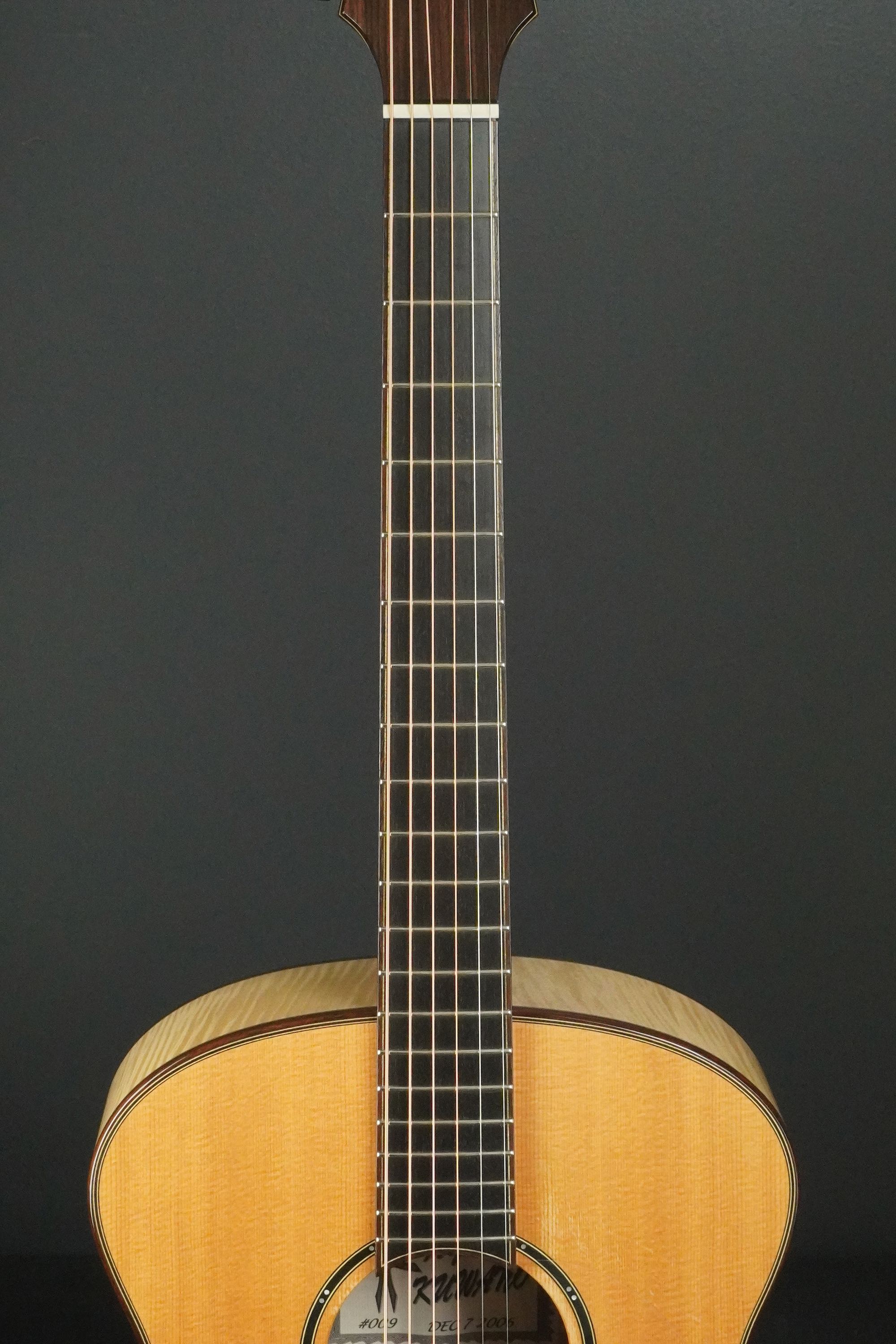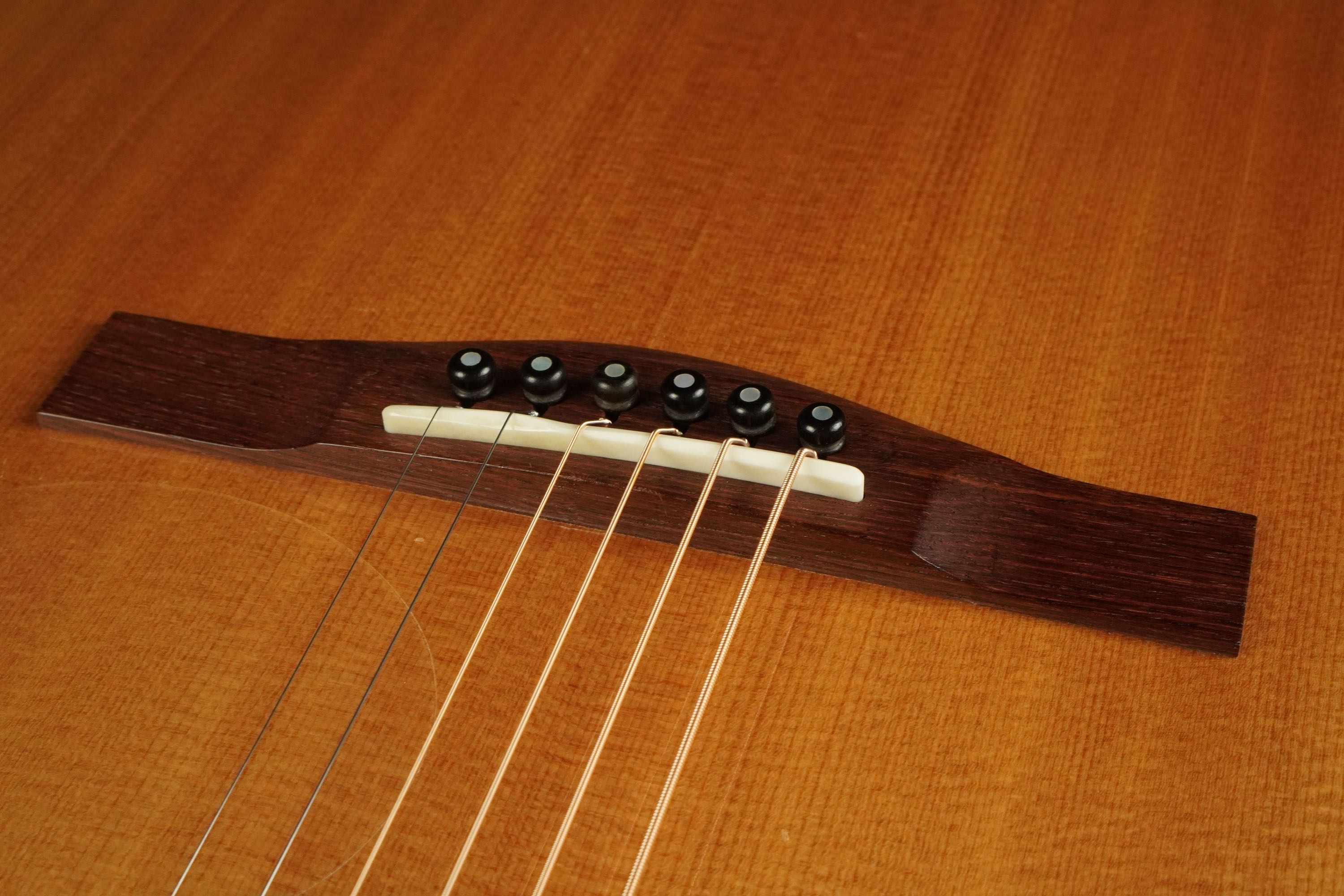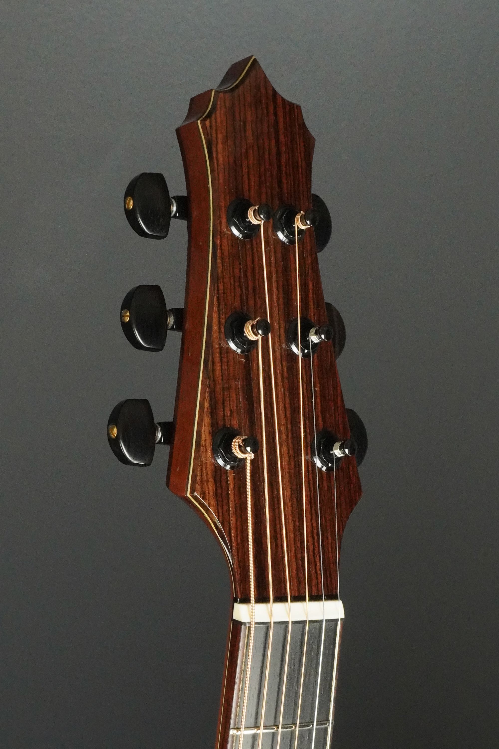 この素晴らしいサウンド、そして造り込みの良さは、さすがはルシアーメイドらしいギターで、幅広くリペアで培った経験と、製作においても、貪欲にエレクトリックやナイロンフラットトップ、アーチトップなどの広いジャンルで積み重ねた経験を上手く集約し、プレイヤー思考で高い完成度のギターに仕上がっております。
