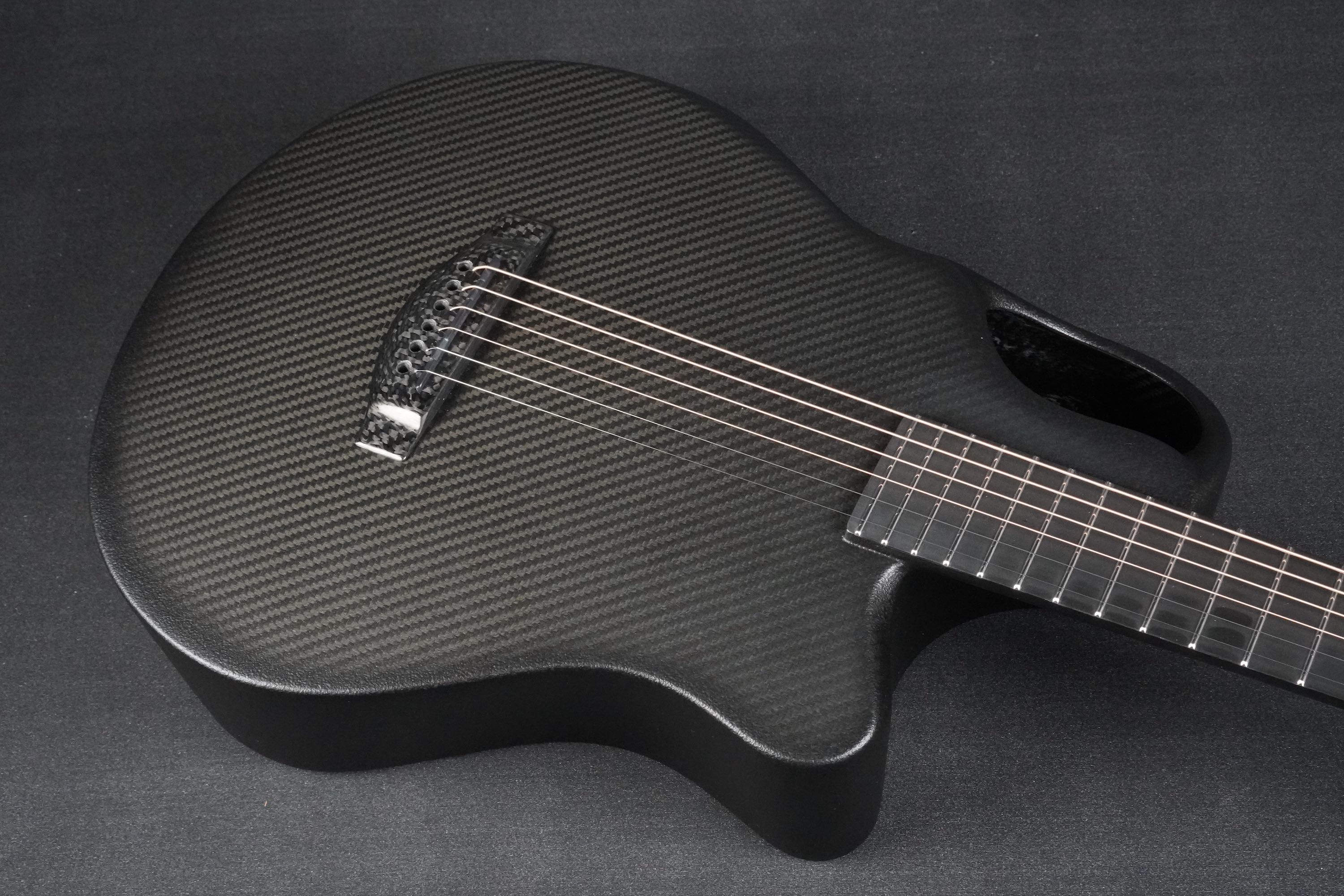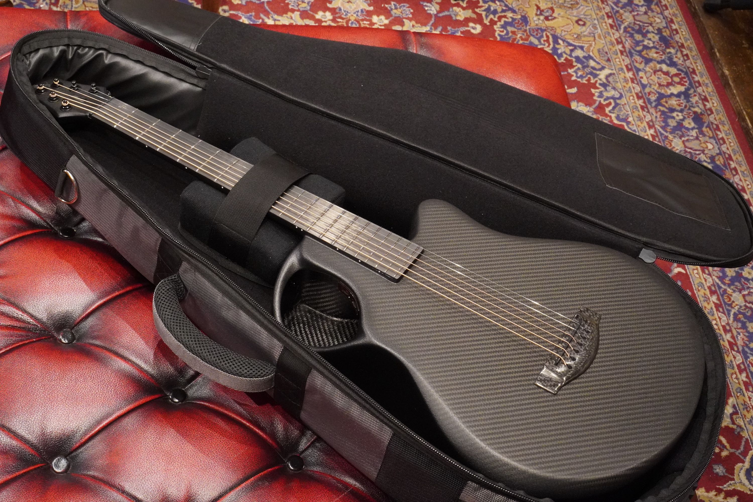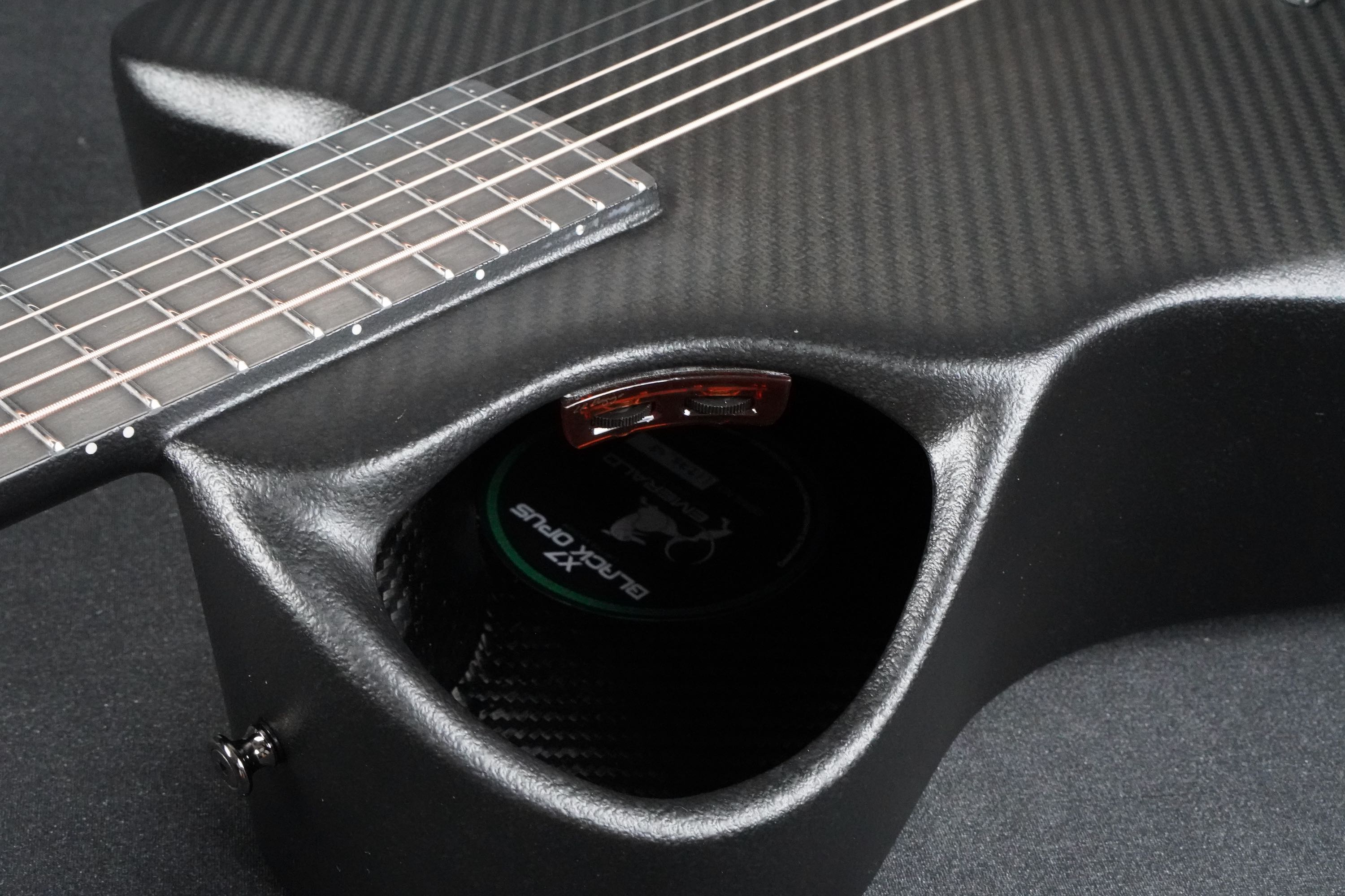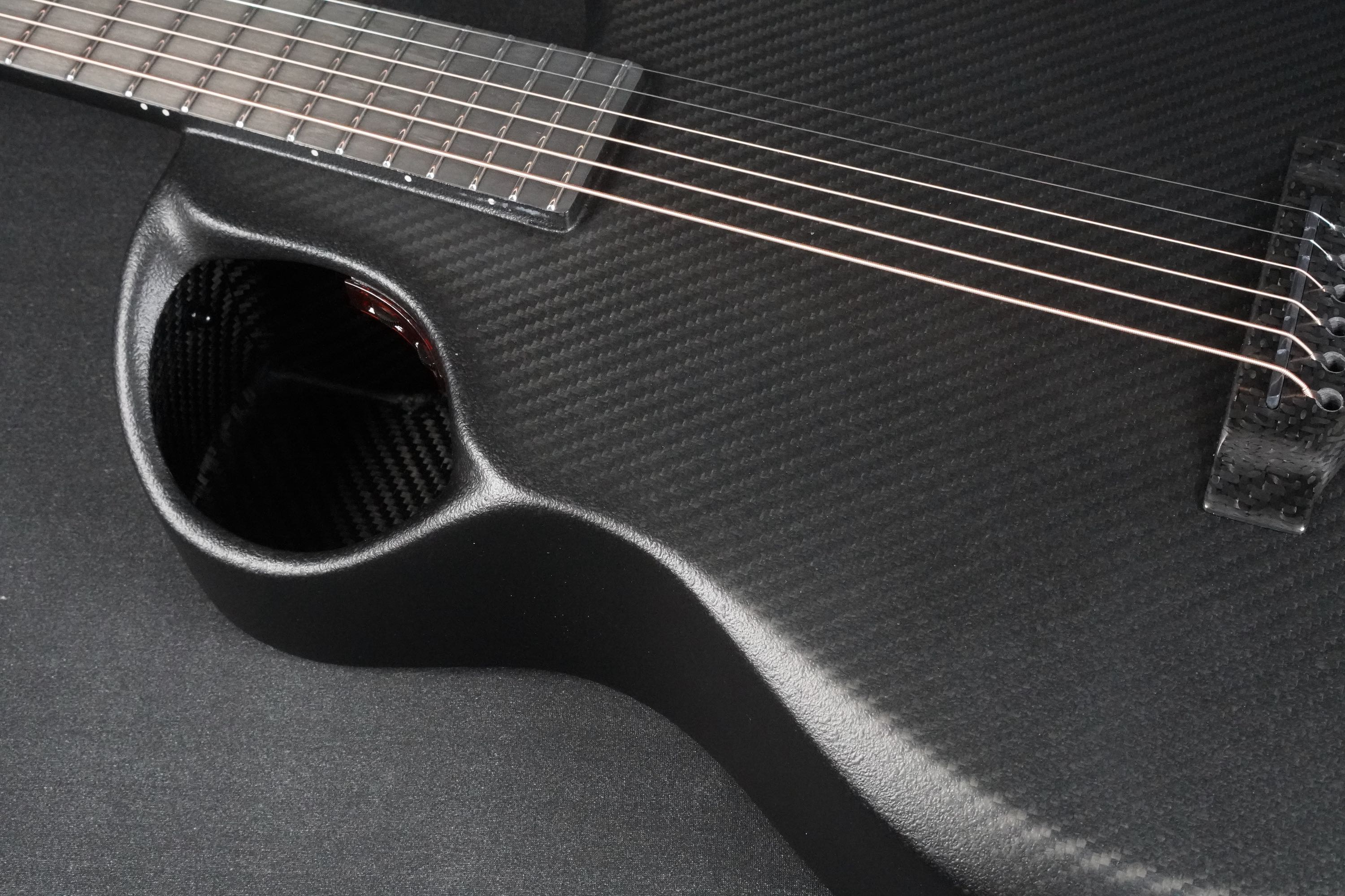 ボディトップの厚みを部分的に変えていることによって、カーボンギターとは思えないほどのアコースティックなトーンを作り出しています。