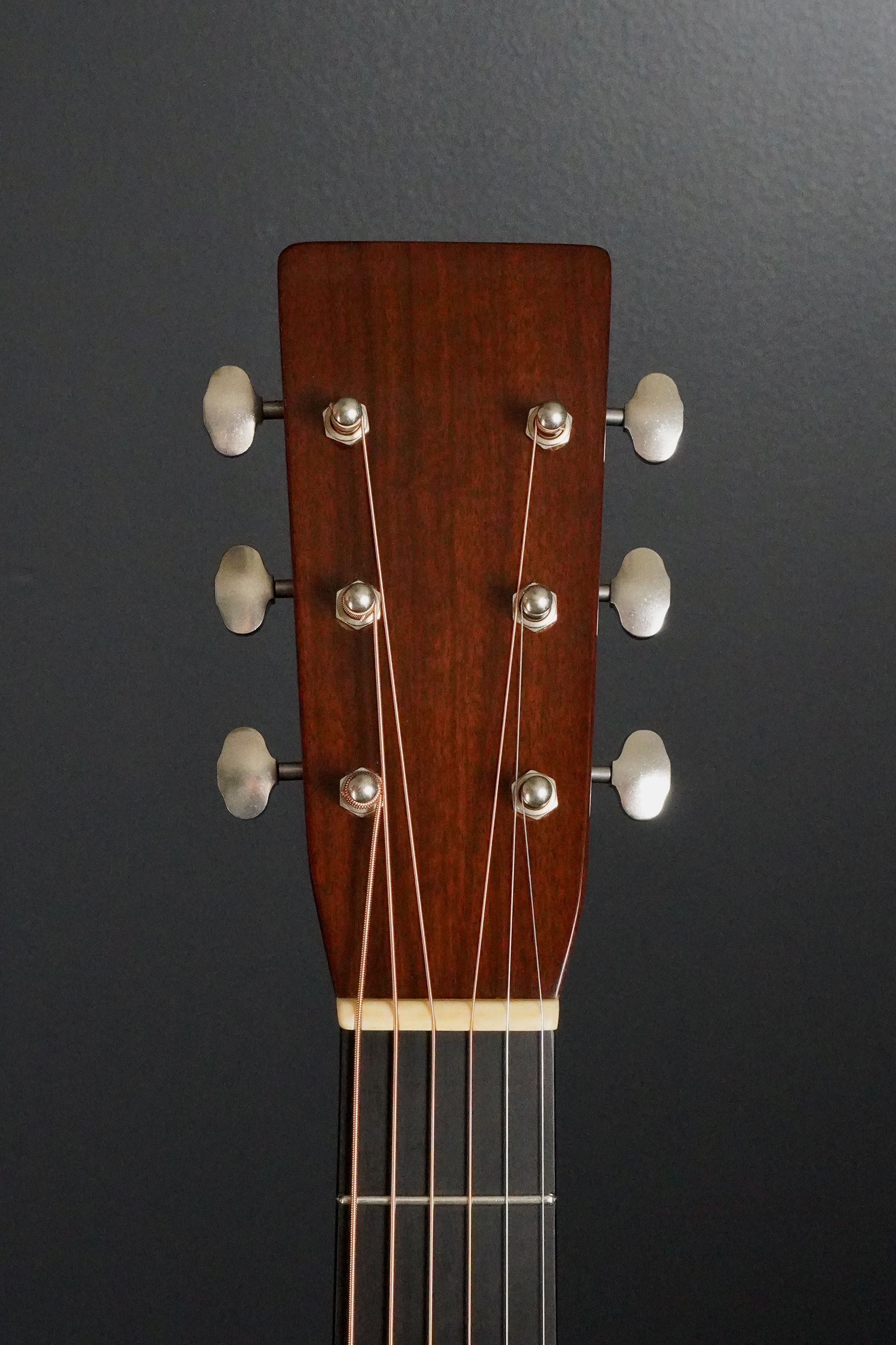 30年代を思わせる、角ばったスマートなヘッド形状で、古材のグラナディロを使ったヘッドプレートの雰囲気もよく、赤褐色の光沢感があり、雰囲気抜群です。