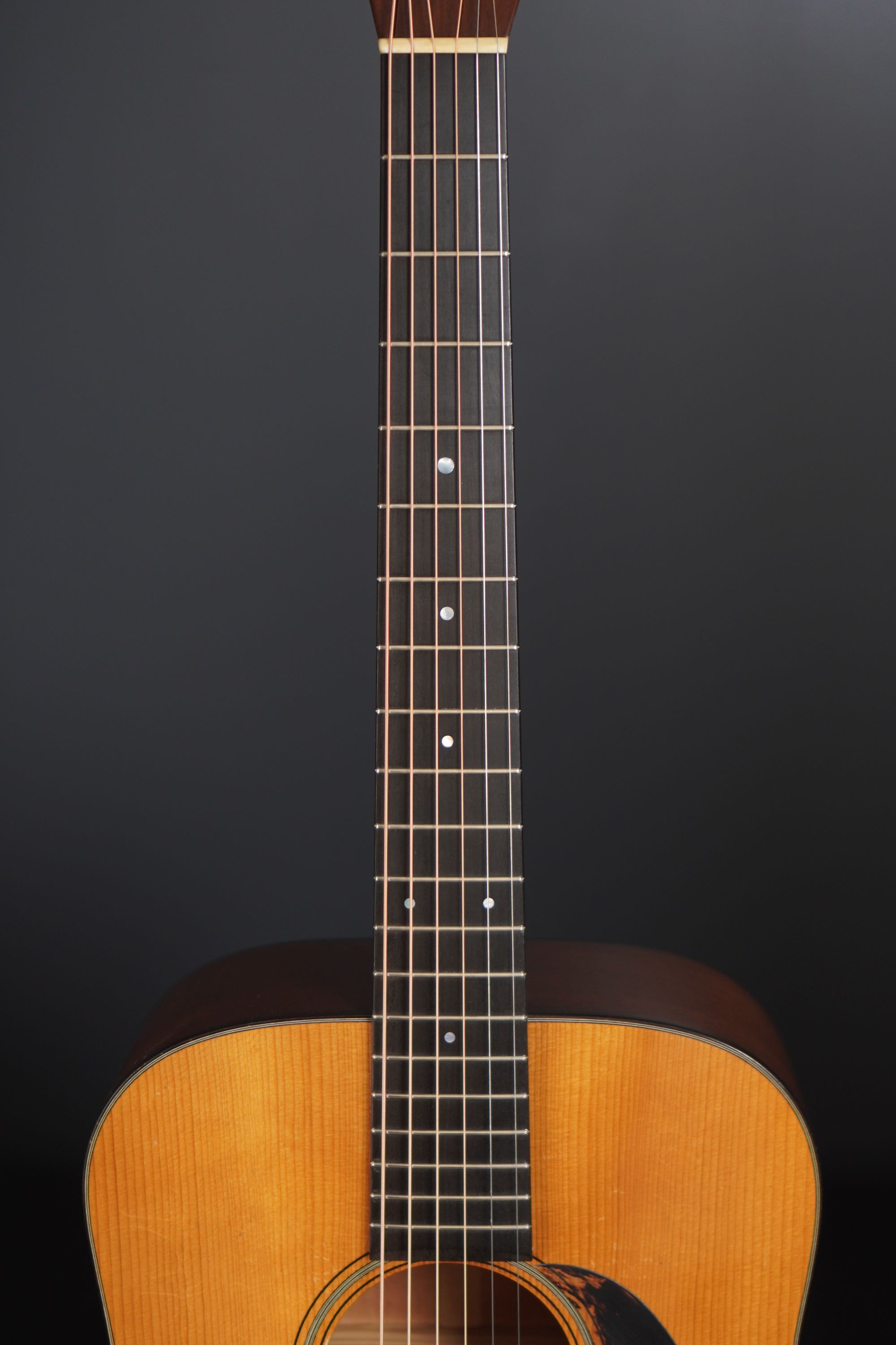 細部のディテールもリアルで、1937年のネックシェイプや、細いネックヒール、ウッドのロゼッタなど、こだわりが感じられます。