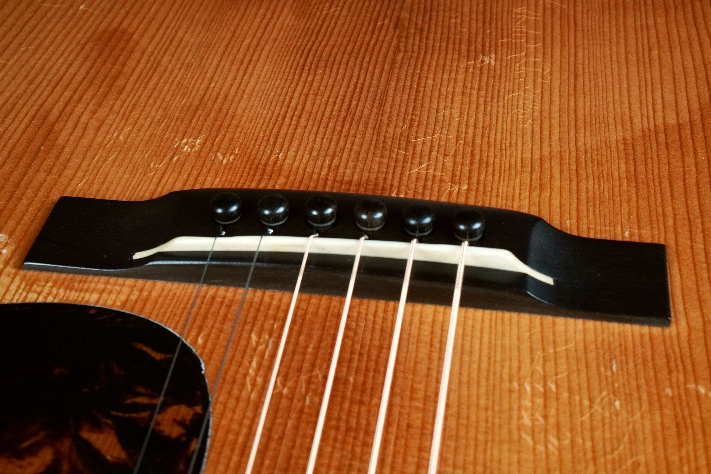 戦前のスペックを再現し、指板&ブリッジはエボニー仕様。