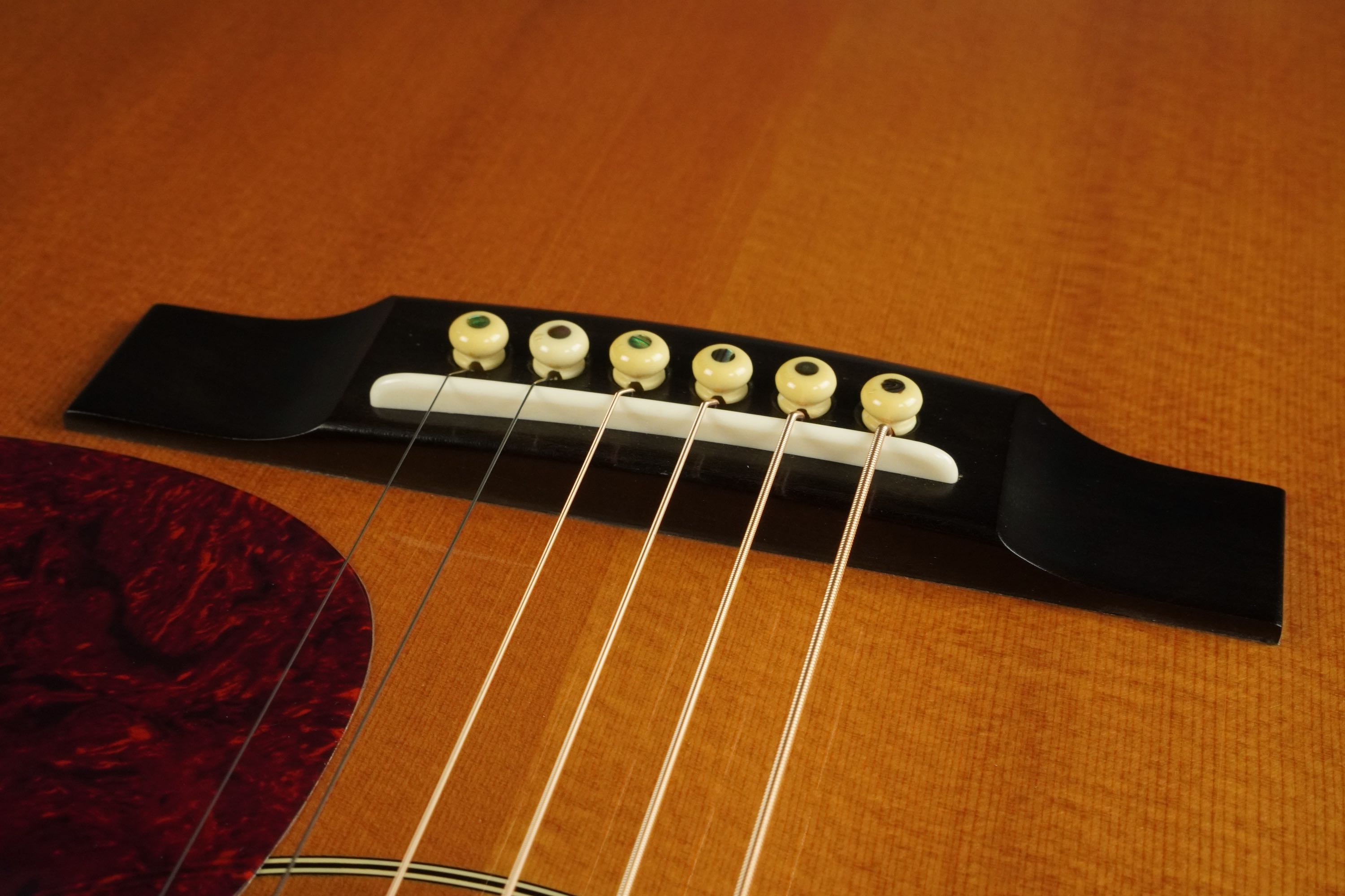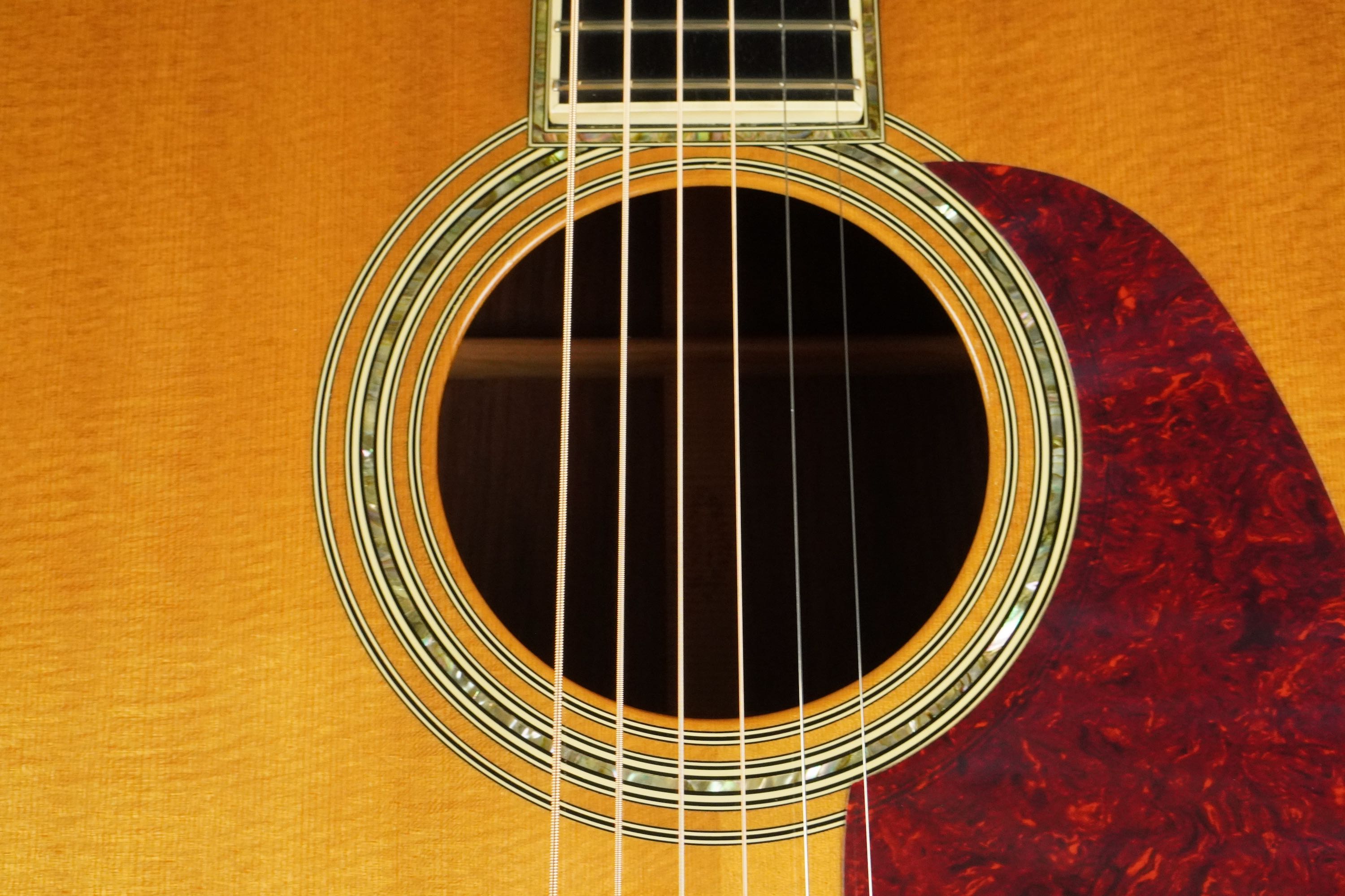 SQネックとノンスキャロップのブレーシングからなのか、1つ1つの音の存在感がしっかりしてコシの強さもあり、どっしりと響く低音に高音弦の煌びやかな響きは本当に素晴らしいギターです!