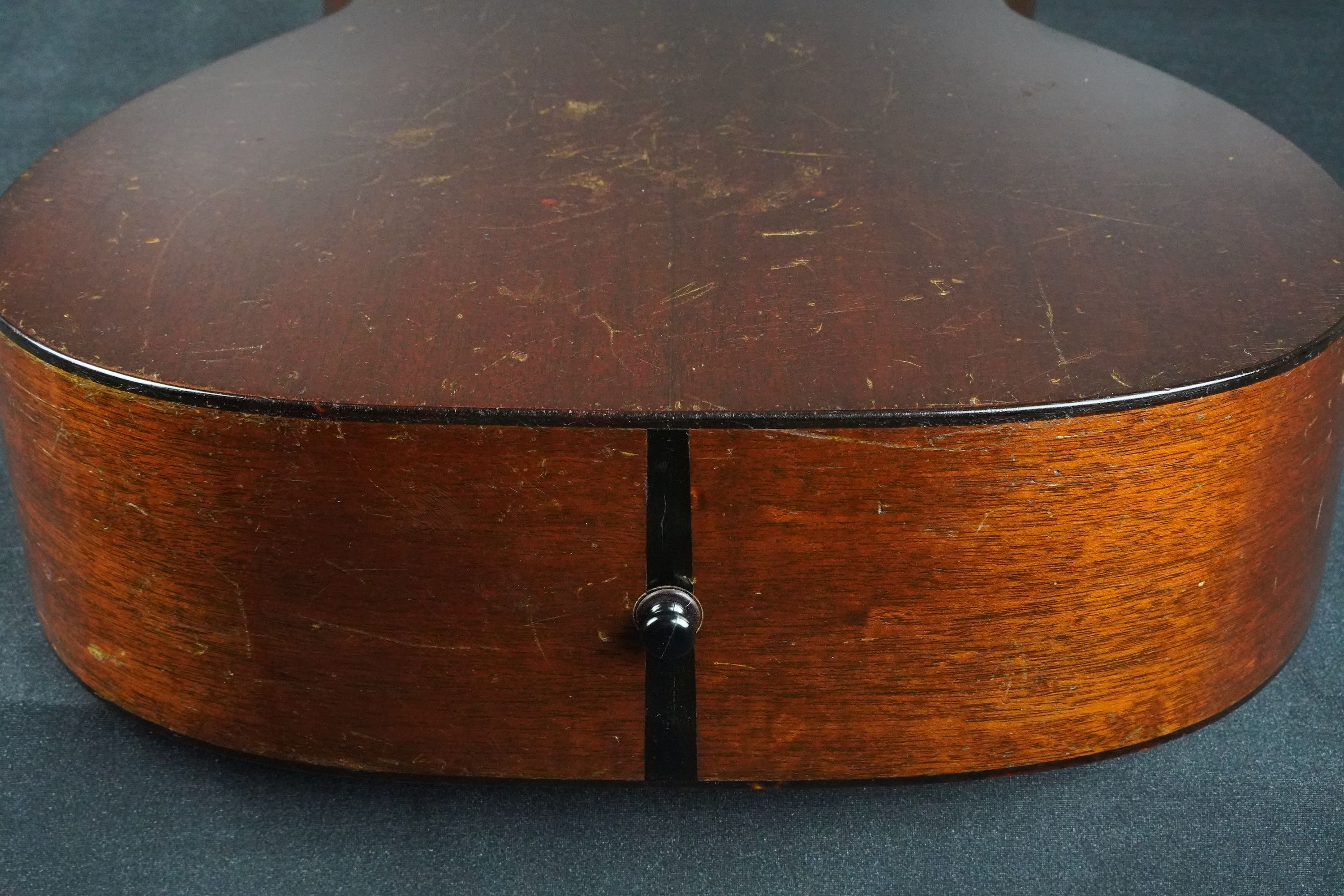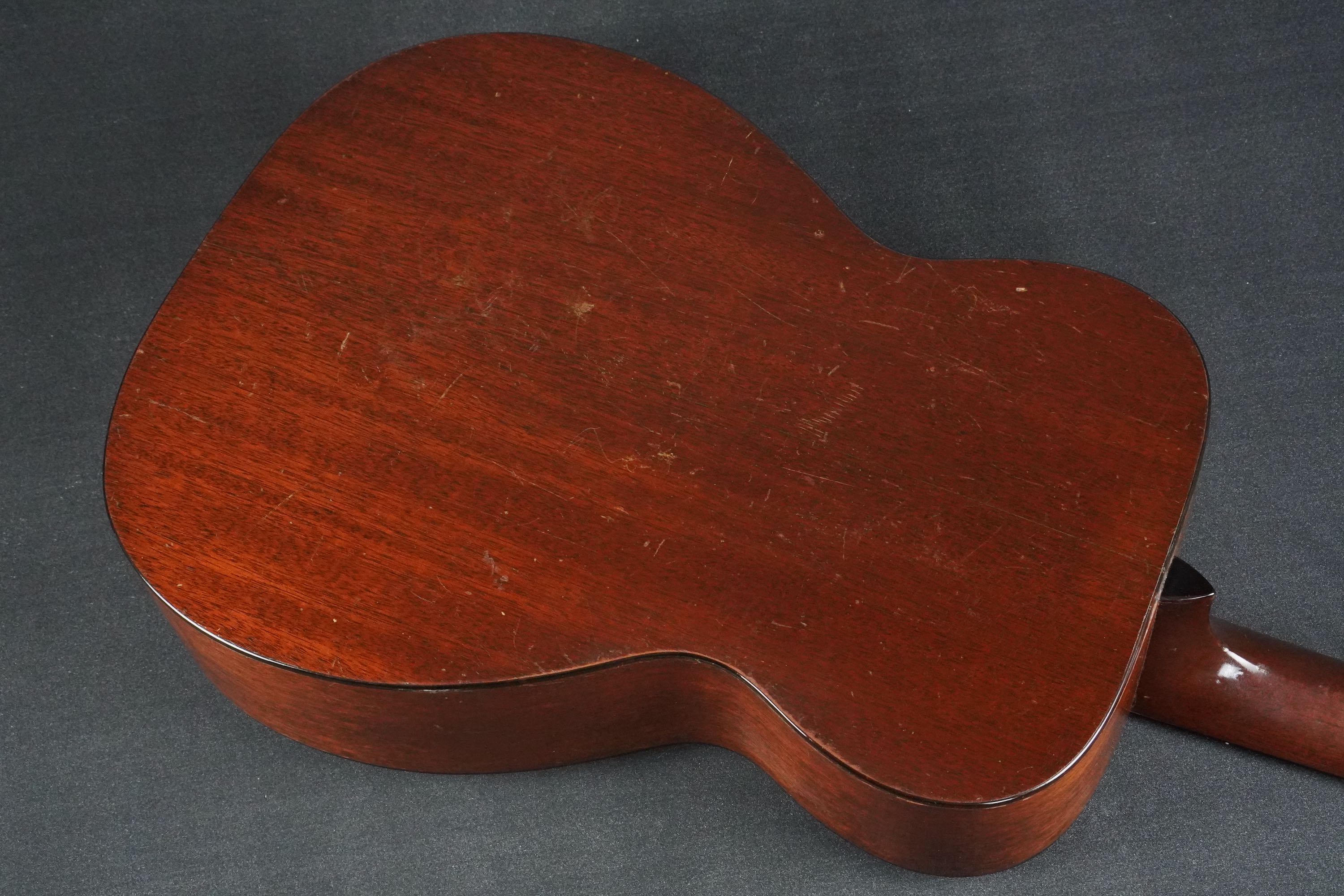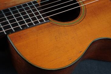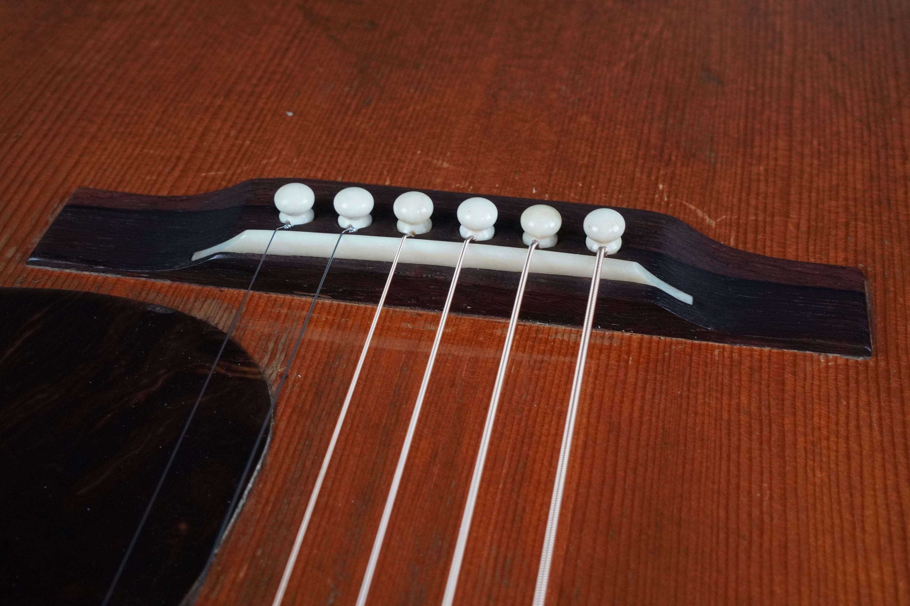 単音で弾いた時の出音の存在感の強さ、コードをストロークするとグイグイと音が前に出る感覚は、この小さなボディとは思えないような響きで、音の艶っぽさや深み、音の立ちや抜け等々がどれも素晴らしく、プリウォー品でしか味わえない野太く枯れたマホガニーサウンドは別格です。