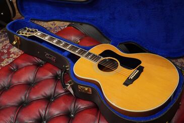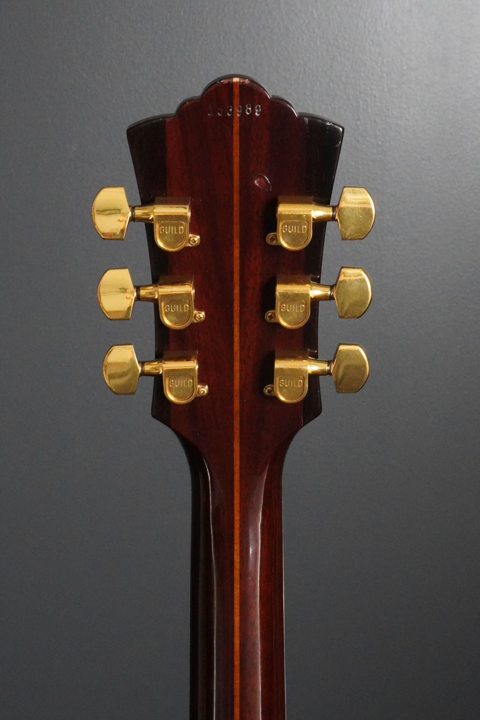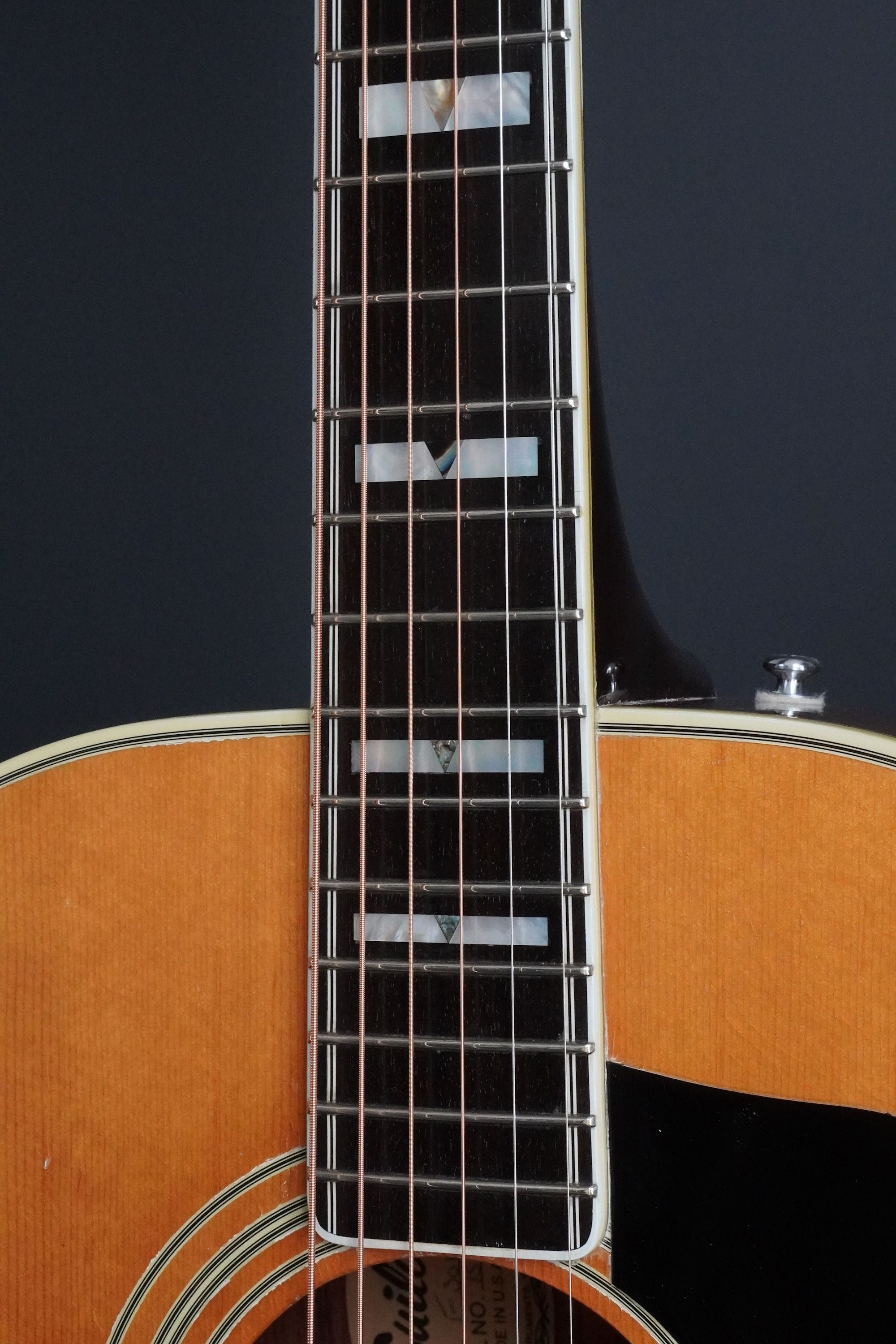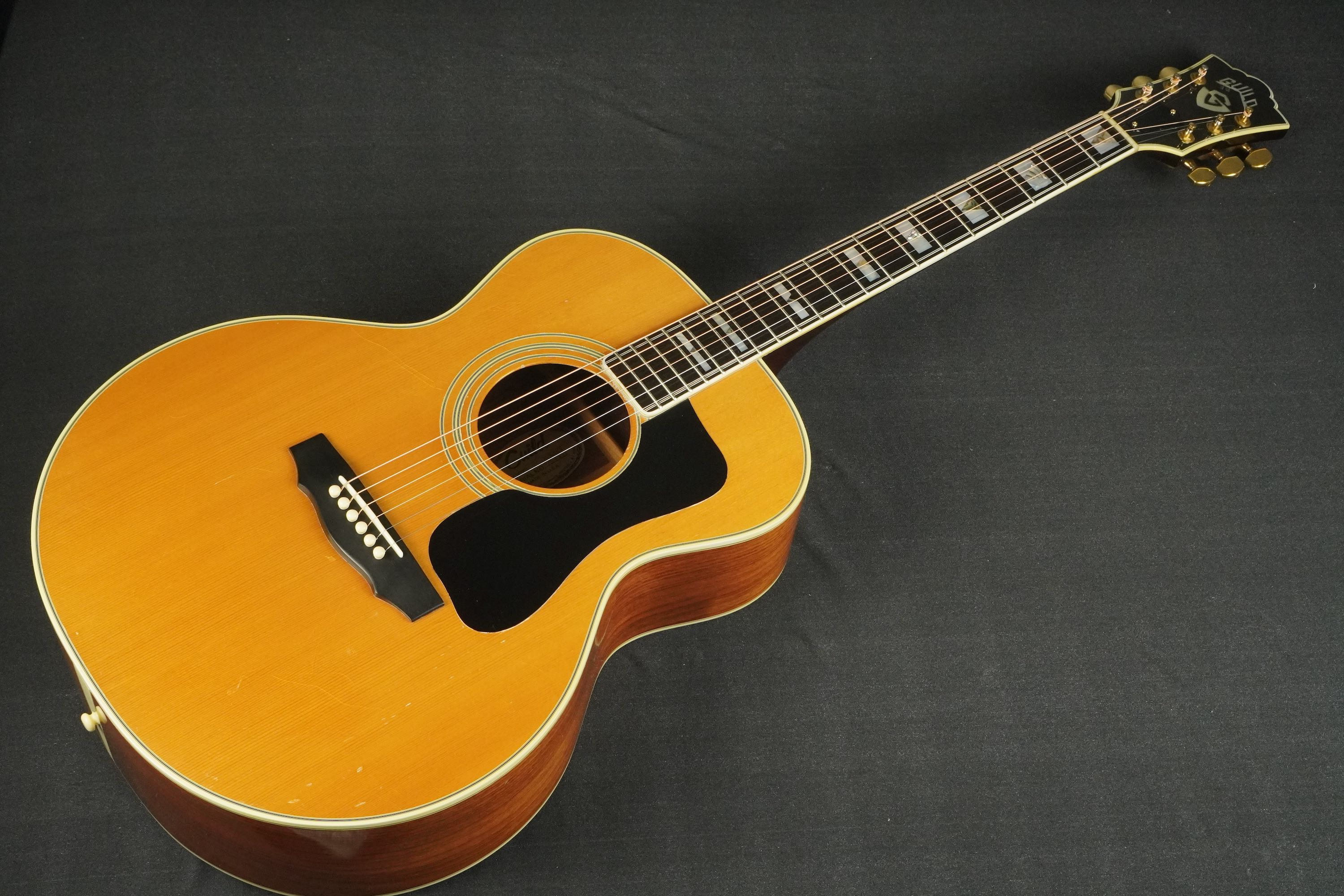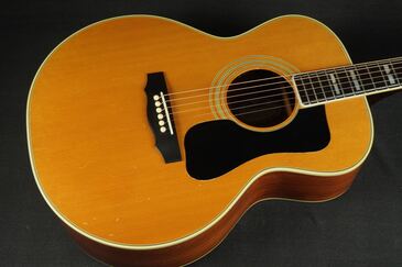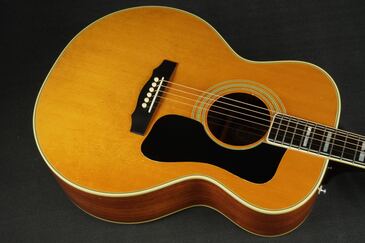 ギルドでは「Aragon」などとも呼ばれるF-30は、MartinでいうOMや000と同程度のボディサイズで25.5インチスケール、スプルース トップにマホガニーのサイド&バックを持ったモデルですので、感覚的にはOM-18のような立ち位置の機種でありますが、1970年代に入ってお尻が丸みを持ったボディシェイプで、胴厚も厚めとなったボディシェイプに変更されており、70年代の初頭にはサイド&バックにローズウッドを用いたF-30Rというモデルも登場します。