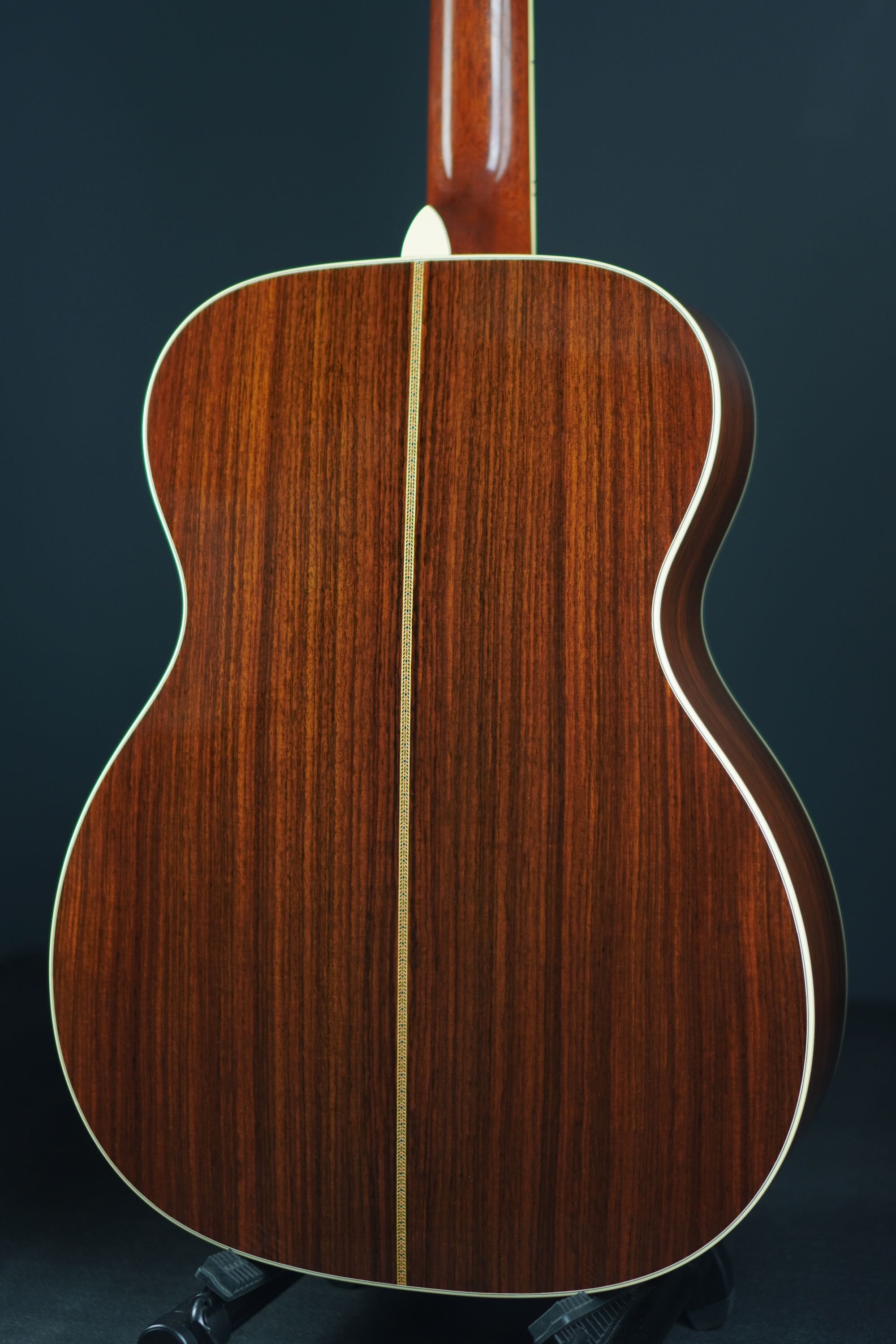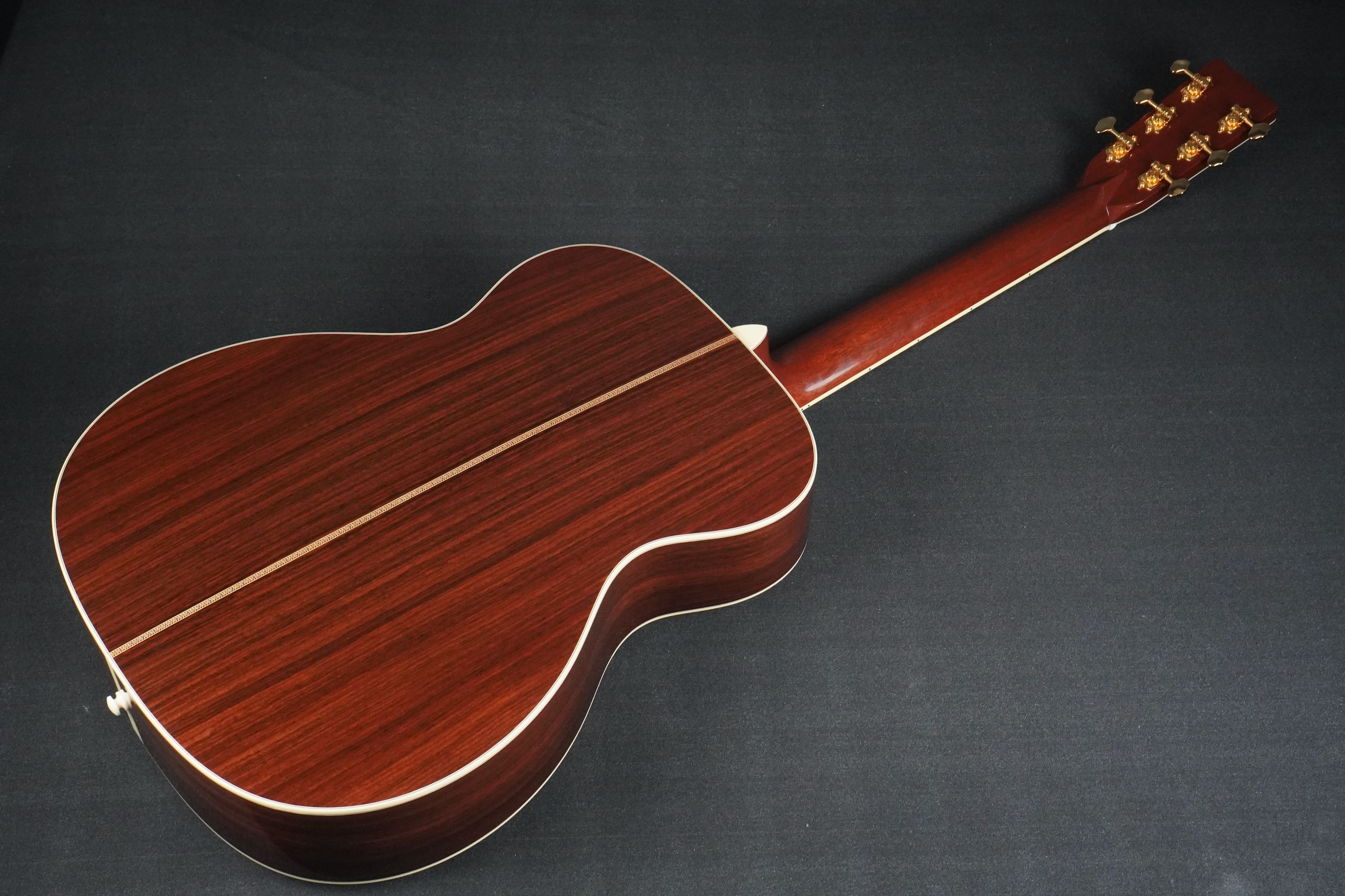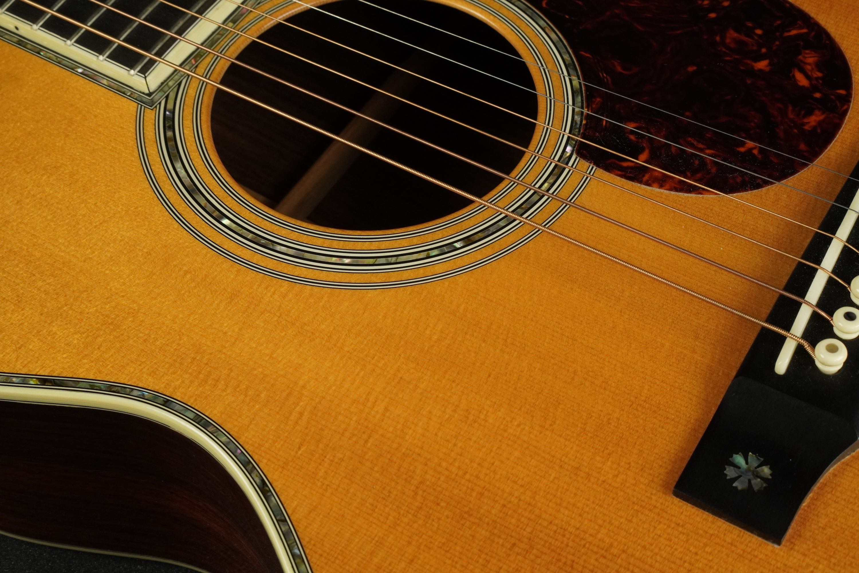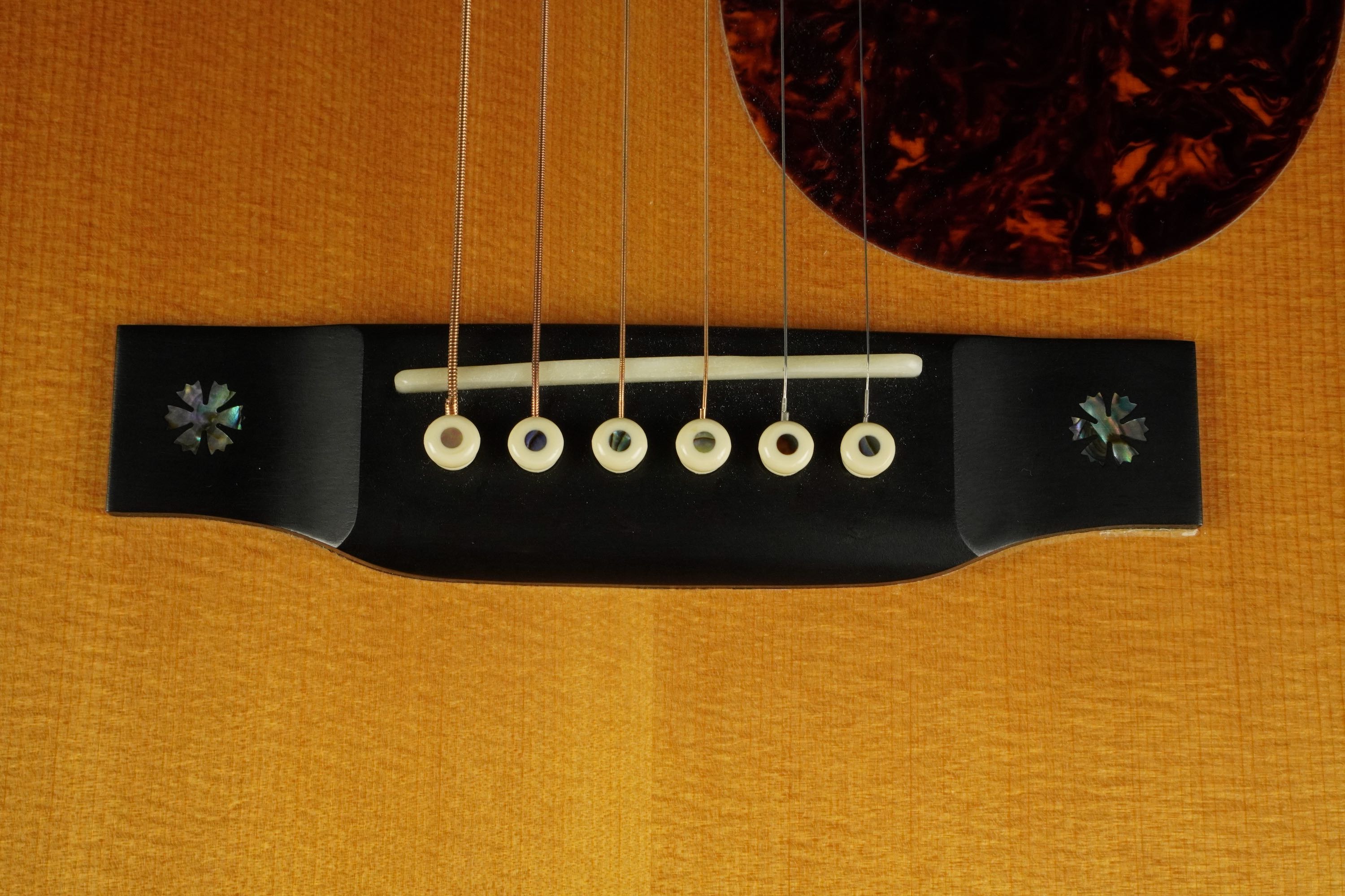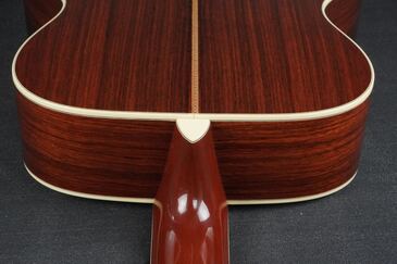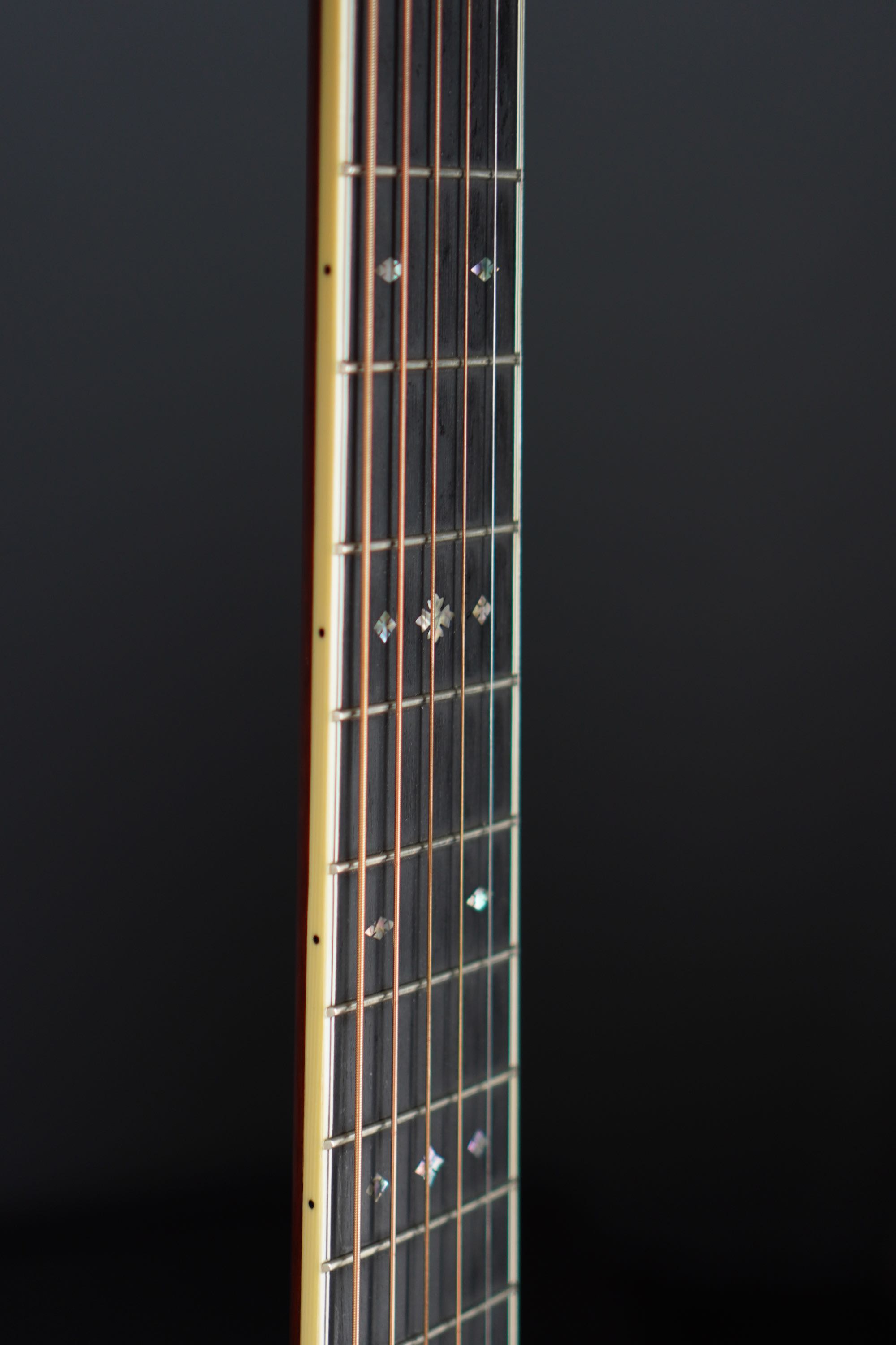 ボディトップの外周には45と同じようにアバロン貝のトリムが入り、白いアイボロイドのバインディングが装飾されています。