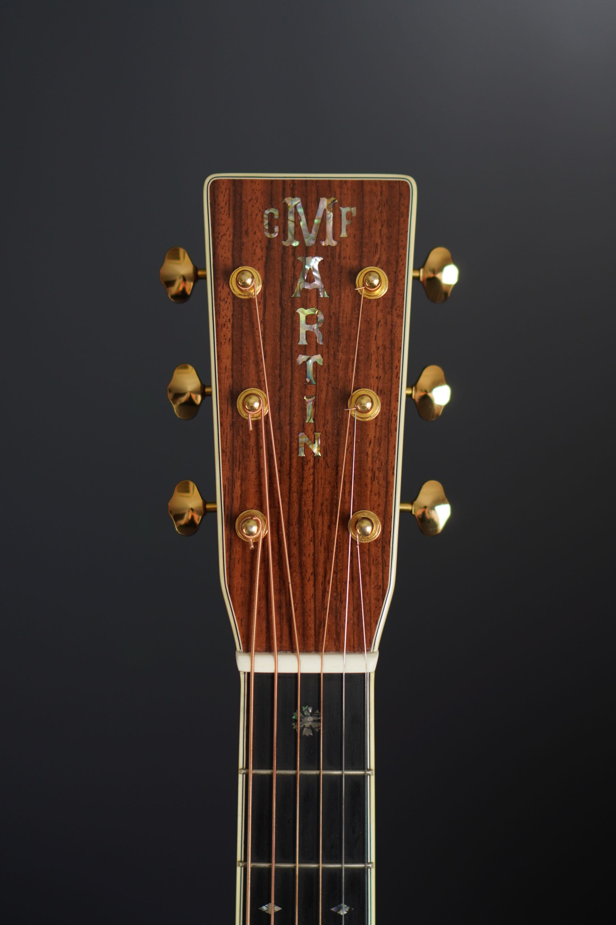 アバロン貝でインレイされているC.F.Martinのロゴは高級機種に相応しいルックスです。